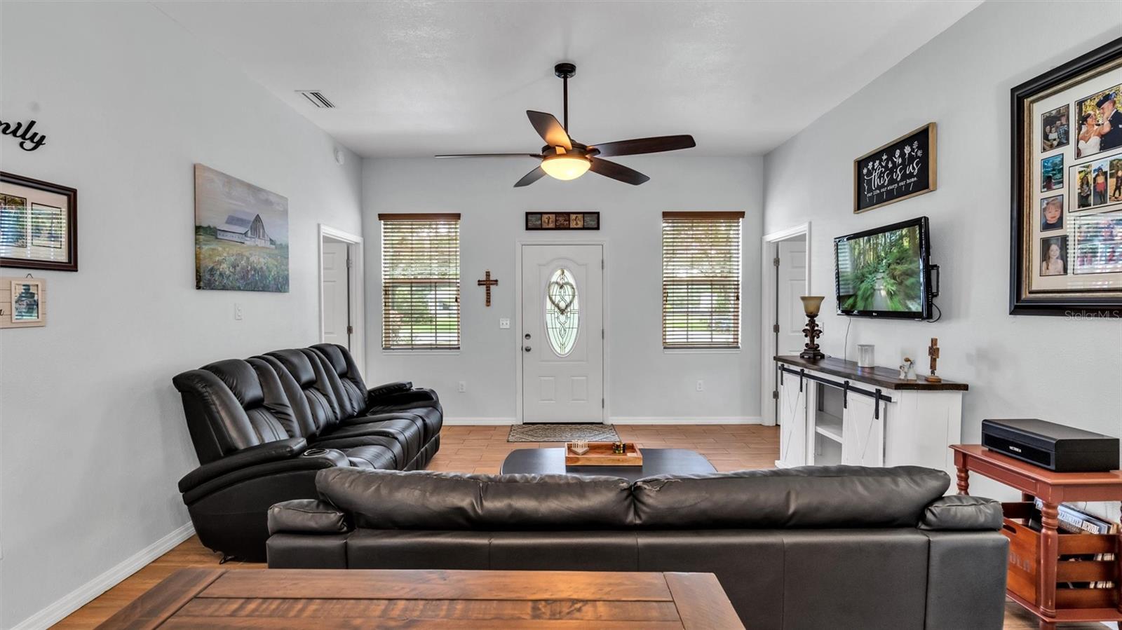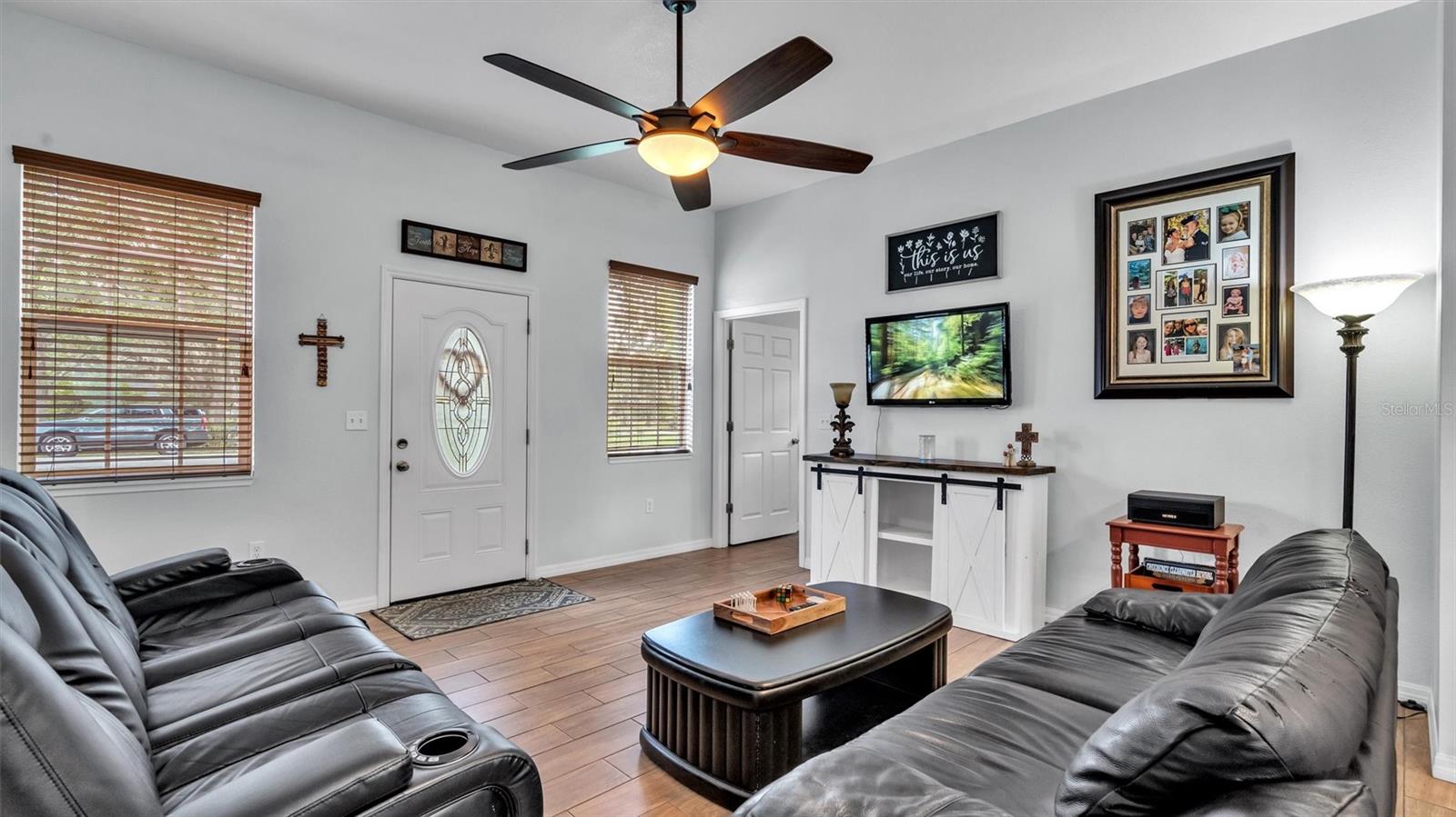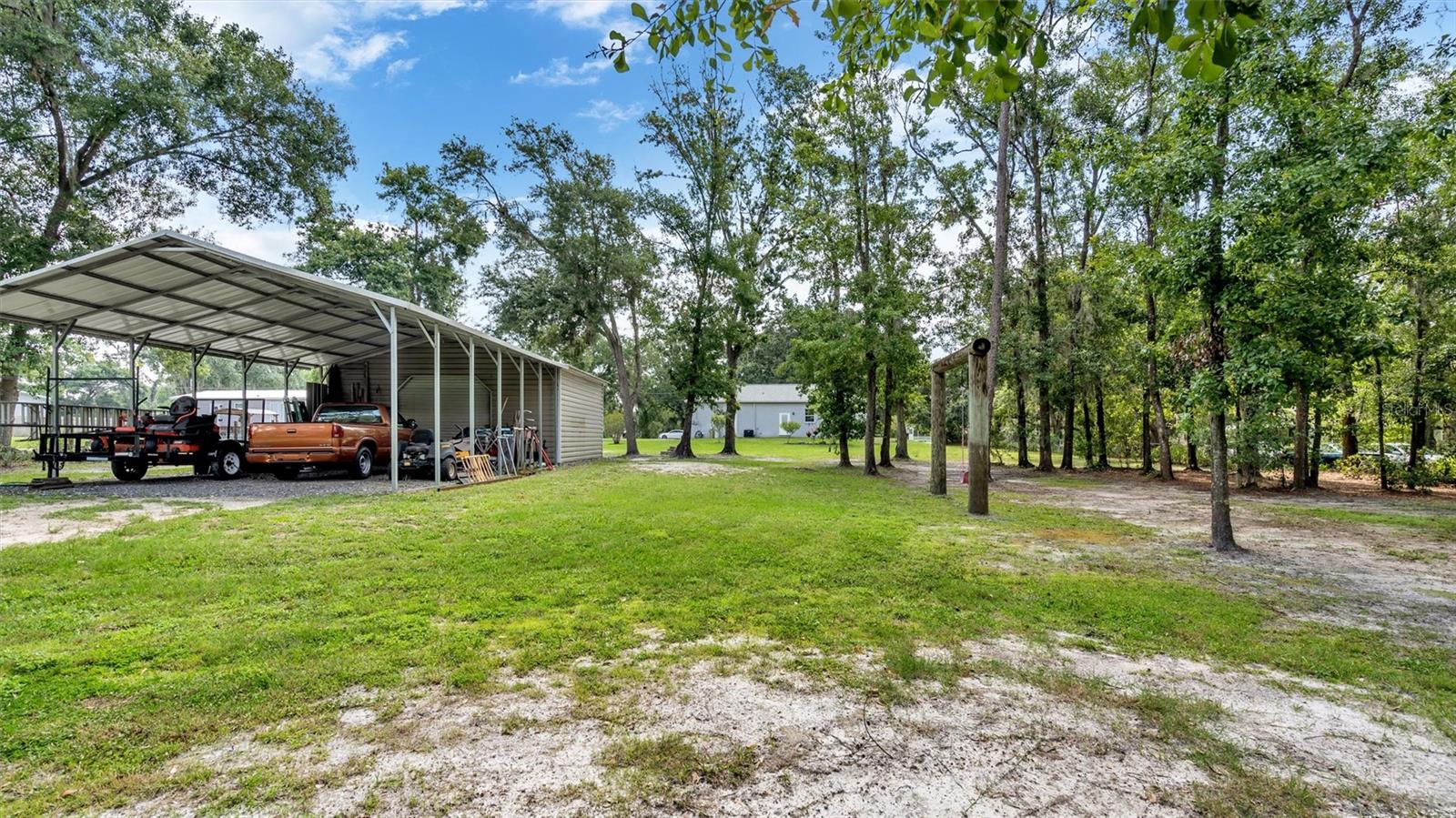 Welcome to your own piece of paradise in South Lakeland! This beautifully designed and custom built 2 bedroom, 2 bathroom home is nestled on one peaceful wooded acre, offering the perfect blend of privacy and convenience. With a spacious attached garage, a detached garage, and a workshop, this property provides ample storage and workspace for all your needs. As you step inside, you'll be greeted by high ceilings and wood look tile flooring that exude a warm and inviting atmosphere. The thoughtfully designed split bedroom and open floor plan ensure optimal comfort and functionality. Both bedrooms have spacious walk-in closets. Nature lovers will rejoice in the abundance of wildlife surrounding this property. Spend mornings marveling at the vibrant cardinals, blue jays, and orioles as you enjoy breakfast and gaze out the kitchen window. The kitchen itself boasts plenty of cabinet space and features stainless steel appliances, making it a delightful space to whip up your favorite meals. Additionally, there's room for a high top table, overlooking the spacious living room, creating the perfect spot for family gatherings or entertaining friends. The garage is not only deeper than standard garages but also includes a convenient laundry area. It also offers a door leading to the exterior backyard, ensuring easy access for outdoor activities and projects. The expansive front yard showcases majestic oak trees, adding to the natural beauty of the property. For those who love outdoor adventures, this property has you covered. There's plenty of room to park your RV, boat, and other outdoor toys, allowing you to fully indulge in the Florida lifestyle. When it comes to outdoor relaxation, you'll appreciate the large open lanai, where you can unwind after a long day and enjoy the tranquility of your surroundings. With no HOA restrictions, you'll have the freedom to personalize and enjoy your property to the fullest. This home offers the perfect blend of peaceful living, modern amenities, and natural beauty, making it an exceptional find in South Lakeland. Don't miss the opportunity to make this dream home your reality. Contact us today to schedule a private showing and experience the beauty and serenity of this remarkable property firsthand!