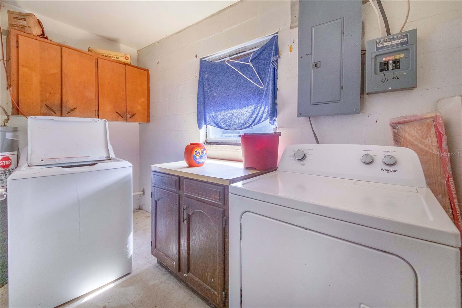 Presenting a 3-bedroom, 2-bathroom block home in North Lakeland, ideally situated near the interstate, offering convenient access to Disney in just 40 minutes and Tampa in 45 minutes. This property features a new roof and sits on a generous lot with a fenced backyard, perfect for outdoor activities and privacy. The home includes a carport and a utility room with laundry facilities. It also boasts a spacious flex room, providing versatile space that can be used as an office, playroom, gym, or even a 4th bedroom. While the house needs some TLC and requires an AC system, it presents a fantastic opportunity for anyone looking to add value. The property is on a septic system, adding to its appeal for those seeking utility savings. This home is a great investment opportunity with its prime location and potential for customization.