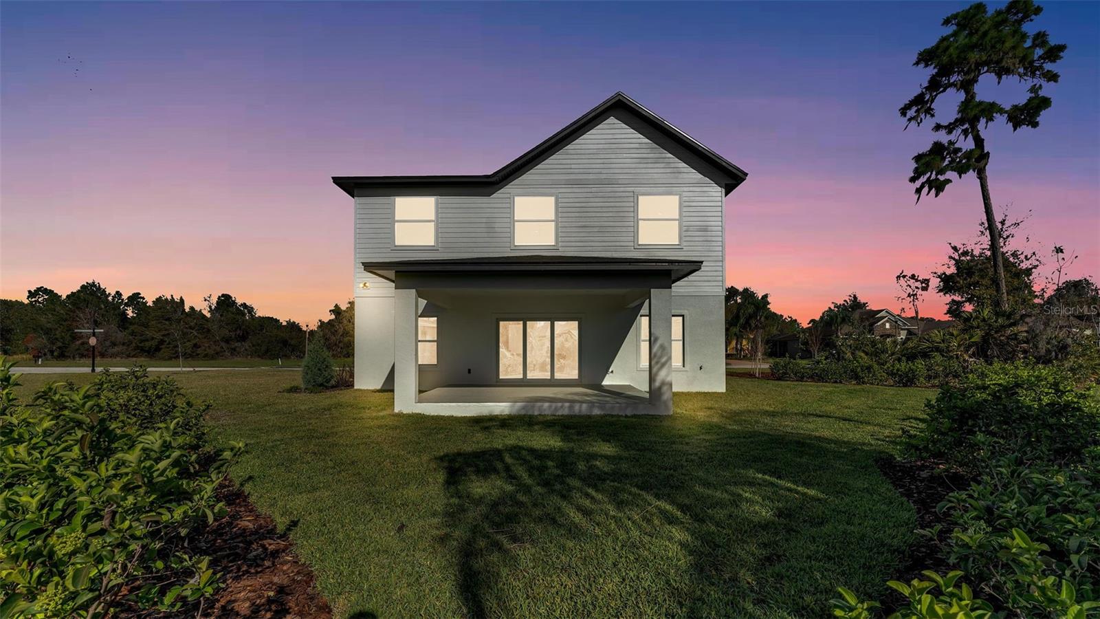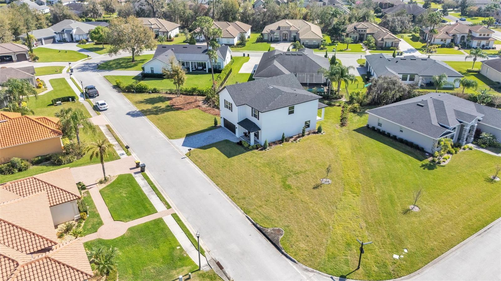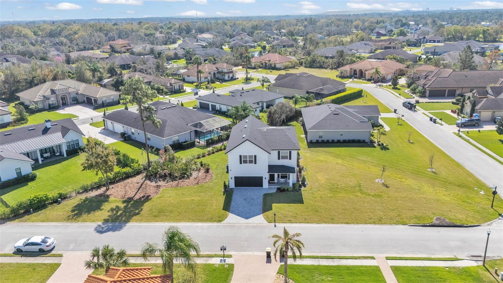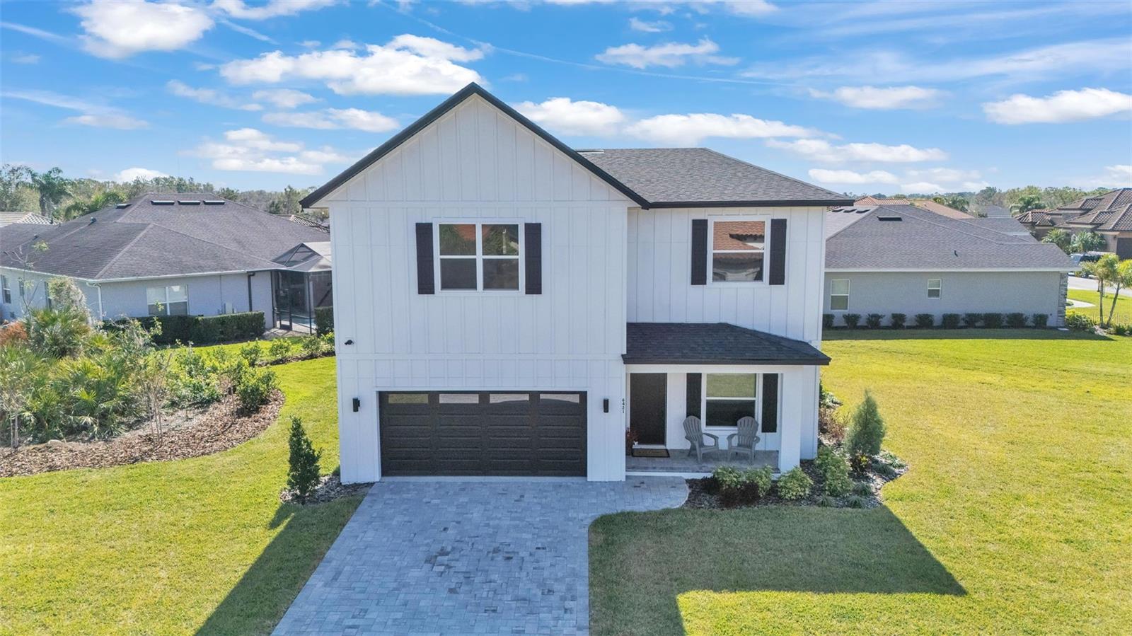Welcome to 6421 Highlands Oak Trail, a stunning brand-new custom-built home, recently completed, offering 5-bedrooms and 3-bathrooms with an additional flex room, located in the gated community of Hallam Preserve East. This exquisite two-story residence boasts impressive curb appeal, featuring a pavered driveway and a charming front porch perfect for seating and enjoying the neighborhood's serene atmosphere. Ideally positioned in South Lakeland, this home offers easy access to local schools, dining, shopping, and the nearby Publix shopping center. Just off 540A and only minutes from the Polk Parkway, convenience is at your doorstep. The community itself offers fantastic amenities, including an on-site playground and pool, providing a perfect setting for relaxation and recreation. Step inside to discover an open and inviting foyer, leading to a flexible room that can serve as a formal dining area, complete with a large window overlooking the front yard. You'll notice the luxury vinyl plank flooring throughout with the decorative crown molding. This home offers an open and split bedroom floor plan, ensuring privacy and flow throughout. Continue further into the home, where you'll find the heart of the house: a beautifully designed kitchen featuring stainless steel appliances, granite countertops, and a generously sized corner pantry. The kitchen overlooks the spacious living area, which is flooded with natural light from an abundance of windows. Triple sliding glass doors open to an expansive lanai, perfect for enjoying the outdoors in a tranquil, private setting. The backyard is beautifully landscaped, offering a serene environment for relaxation. With five bedrooms and three bathrooms, this home provides plenty of space for the entire family. The first floor includes a guest bedroom and a bathroom with a beautifully tiled shower, providing a welcoming space for visitors. Additionally, there's plenty of room for a work-from-home office, offering a perfect balance of comfort and functionality. Upstairs, the primary suite awaits, offering a spa-like ensuite bathroom with a freestanding tub, dual vanity, a step-in tiled walk-in shower, and an expansive walk-in closet. The upstairs area is a true highlight, featuring a wooden-railed balcony, a secondary living space, ample closet storage, and three additional generously sized bedrooms, each with built-in closets. A third full bathroom is conveniently located in the hallway. The garage is ready to store your vehicles and tools with the addition of epoxy flooring. This home has been meticulously designed for comfort and elegance, and with the opportunity to be the first owner, it's truly a rare find. Schedule your showing today and experience the luxury and convenience of this exceptional property!