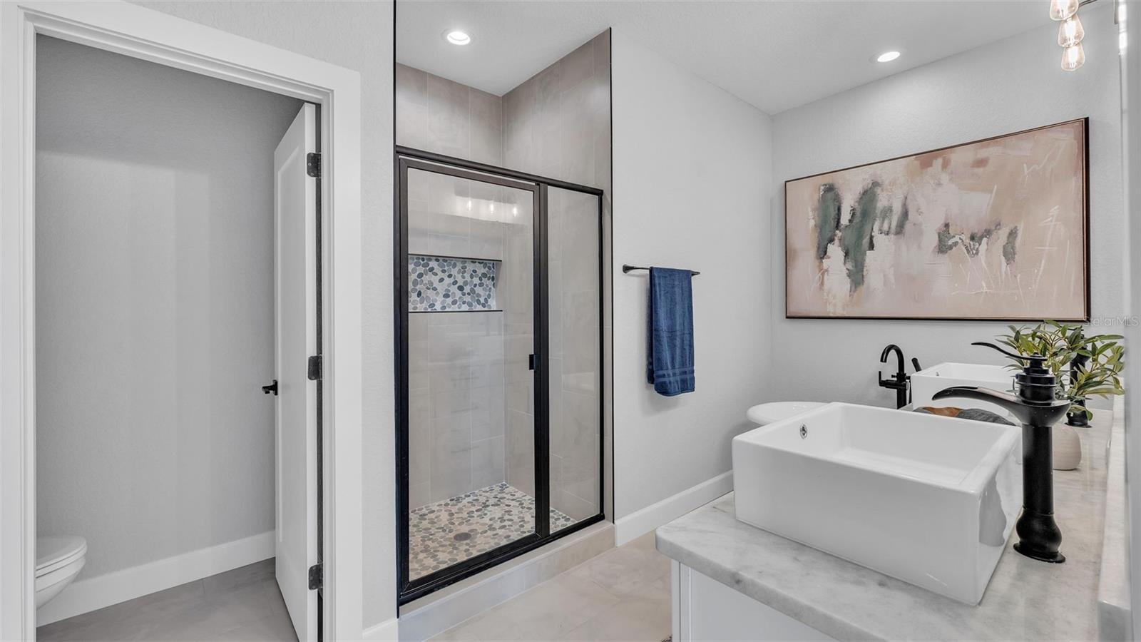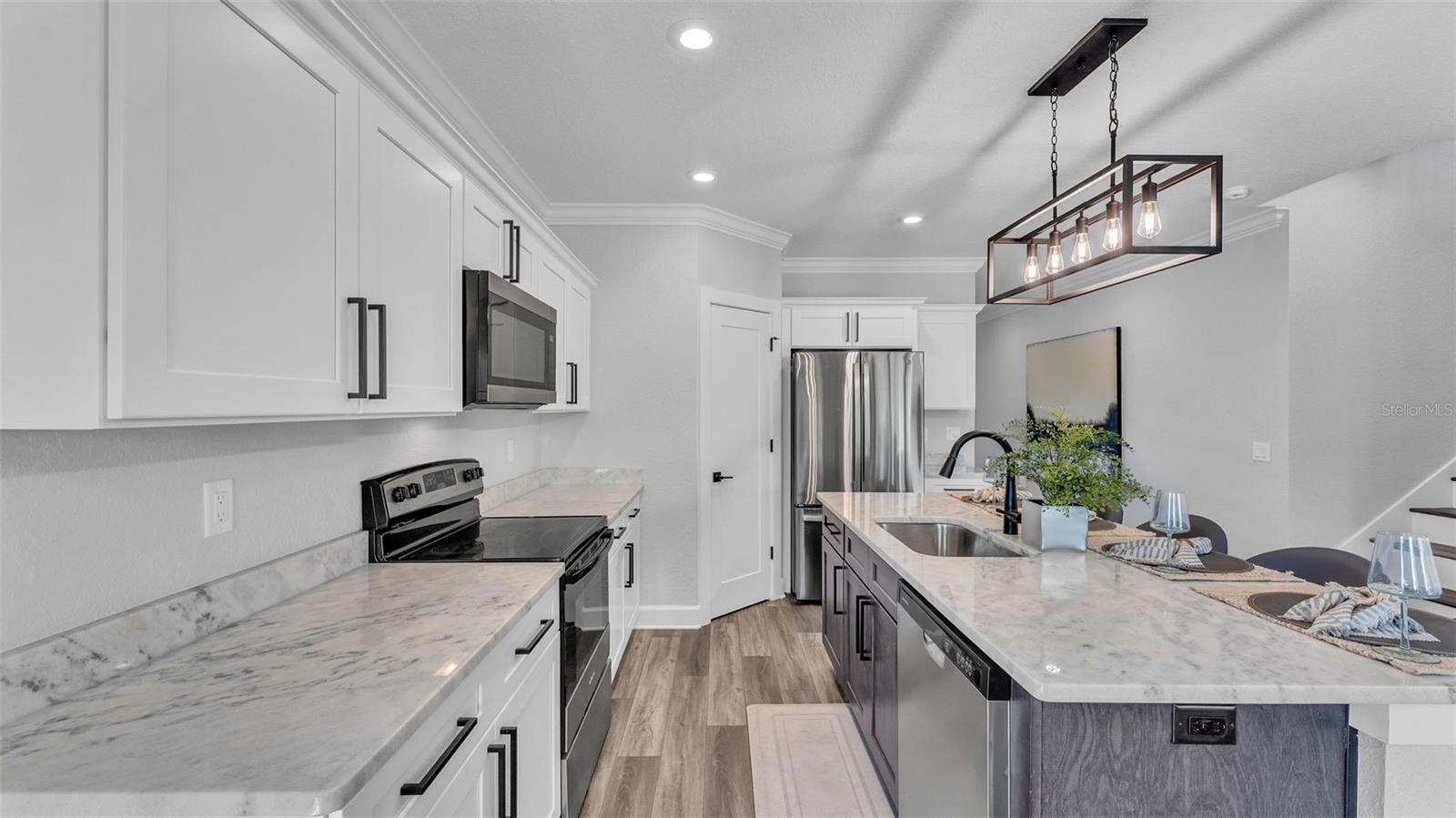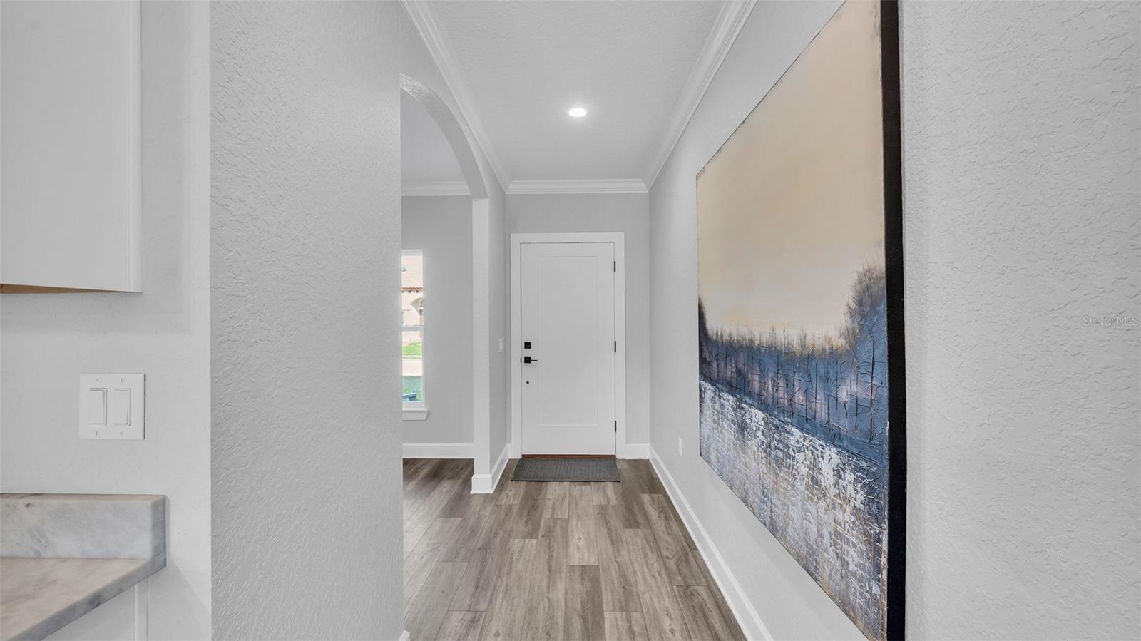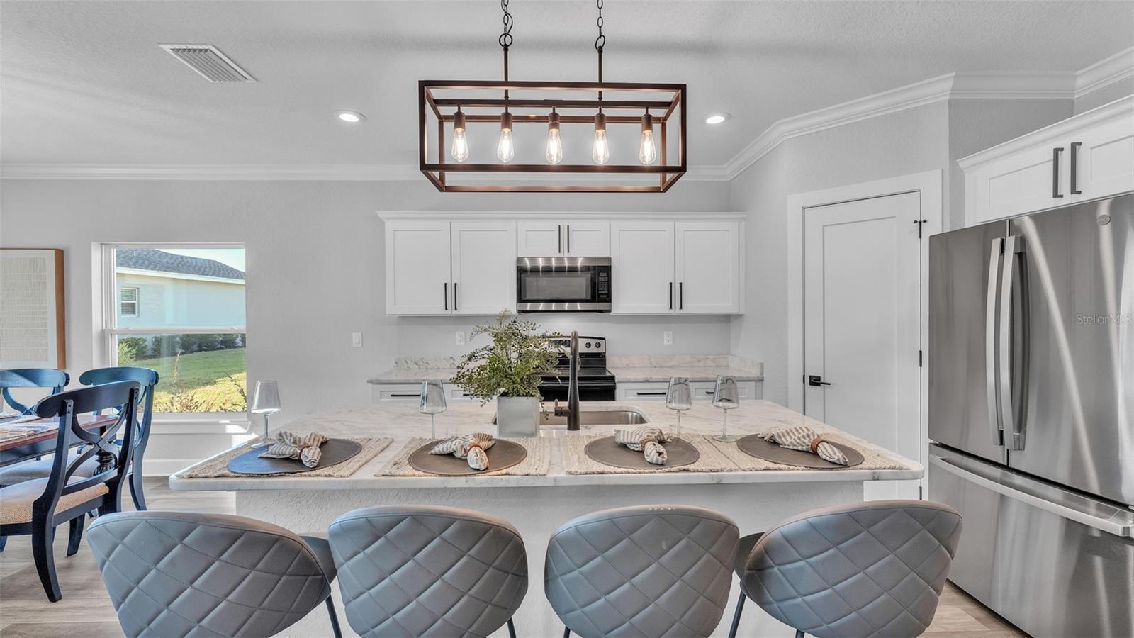 Welcome to 6421 Highlands Oak Trail, a stunning brand-new custom-built home, recently completed, offering 5-bedrooms and 3-bathrooms with an additional flex room, located in the gated community of Hallam Preserve East. This exquisite two-story residence boasts impressive curb appeal, featuring a pavered driveway and a charming front porch perfect for seating and enjoying the neighborhood's serene atmosphere. Ideally positioned in South Lakeland, this home offers easy access to local schools, dining, shopping, and the nearby Publix shopping center. Just off 540A and only minutes from the Polk Parkway, convenience is at your doorstep. The community itself offers fantastic amenities, including an on-site playground and pool, providing a perfect setting for relaxation and recreation. Step inside to discover an open and inviting foyer, leading to a flexible room that can serve as a formal dining area, complete with a large window overlooking the front yard. You'll notice the luxury vinyl plank flooring throughout with the decorative crown molding. This home offers an open and split bedroom floor plan, ensuring privacy and flow throughout. Continue further into the home, where you'll find the heart of the house: a beautifully designed kitchen featuring stainless steel appliances, granite countertops, and a generously sized corner pantry. The kitchen overlooks the spacious living area, which is flooded with natural light from an abundance of windows. Triple sliding glass doors open to an expansive lanai, perfect for enjoying the outdoors in a tranquil, private setting. The backyard is beautifully landscaped, offering a serene environment for relaxation. With five bedrooms and three bathrooms, this home provides plenty of space for the entire family. The first floor includes a guest bedroom and a bathroom with a beautifully tiled shower, providing a welcoming space for visitors. Additionally, there's plenty of room for a work-from-home office, offering a perfect balance of comfort and functionality. Upstairs, the primary suite awaits, offering a spa-like ensuite bathroom with a freestanding tub, dual vanity, a step-in tiled walk-in shower, and an expansive walk-in closet. The upstairs area is a true highlight, featuring a wooden-railed balcony, a secondary living space, ample closet storage, and three additional generously sized bedrooms, each with built-in closets. A third full bathroom is conveniently located in the hallway. The garage is ready to store your vehicles and tools with the addition of epoxy flooring. This home has been meticulously designed for comfort and elegance, and with the opportunity to be the first owner, it's truly a rare find. Schedule your showing today and experience the luxury and convenience of this exceptional property!