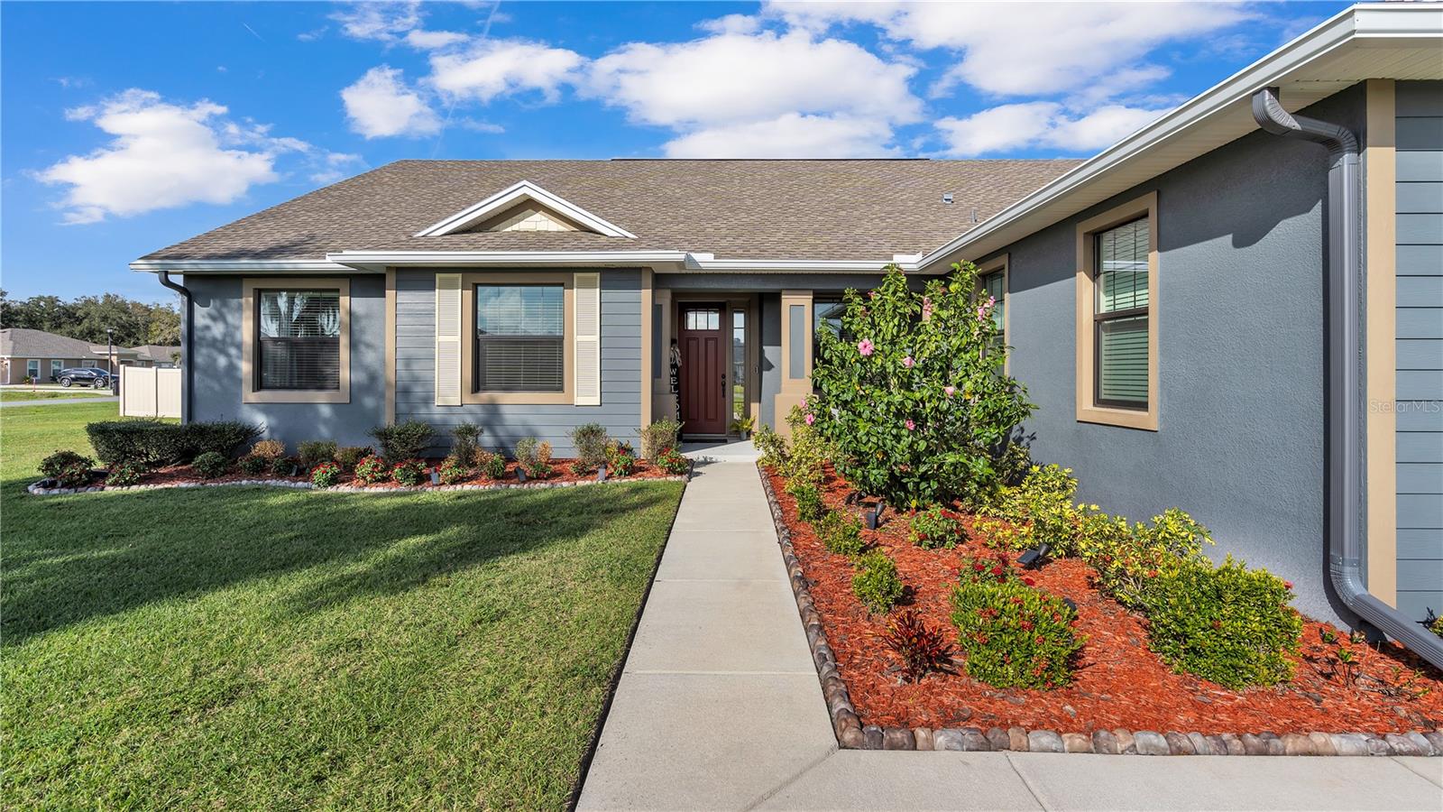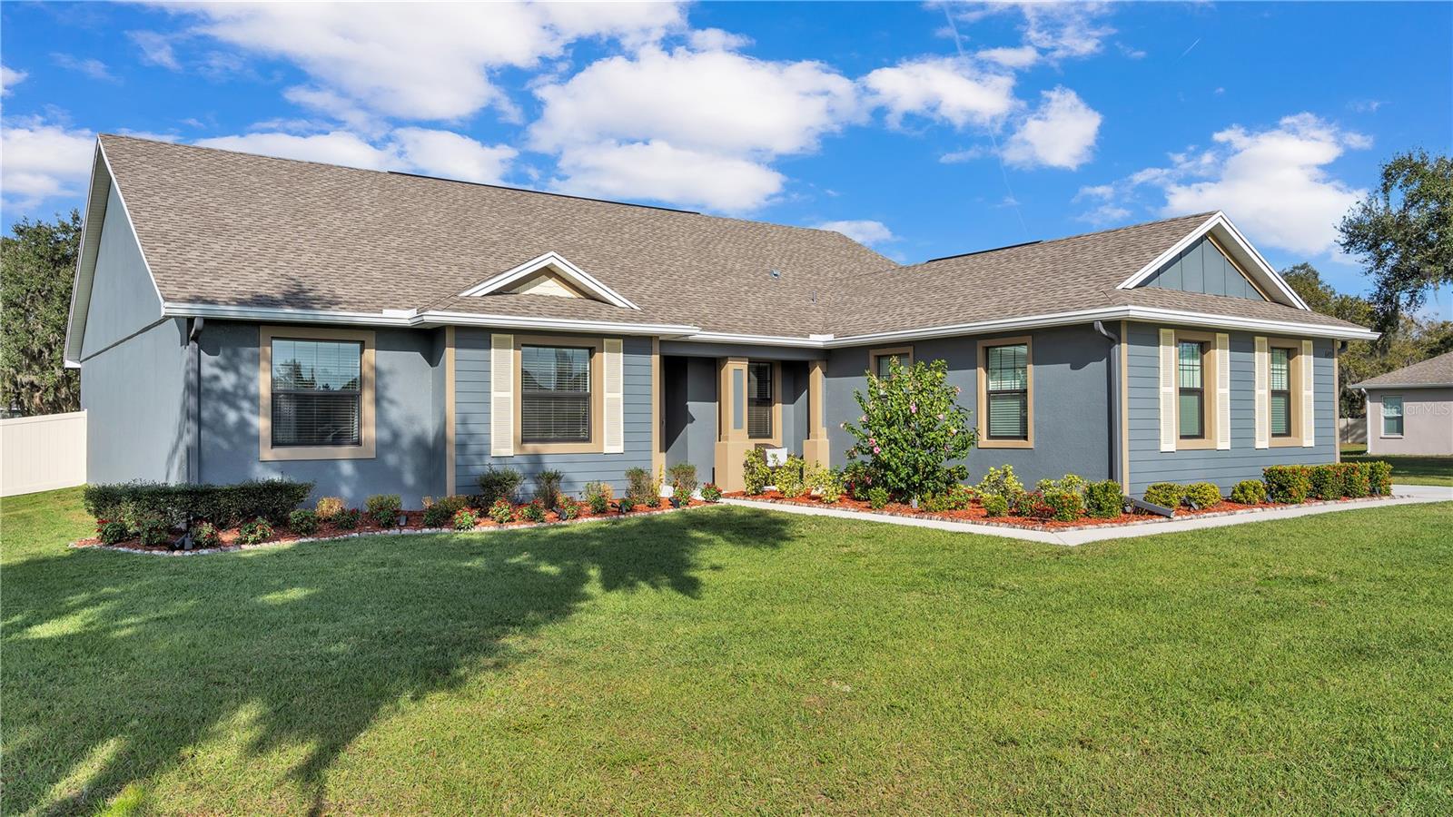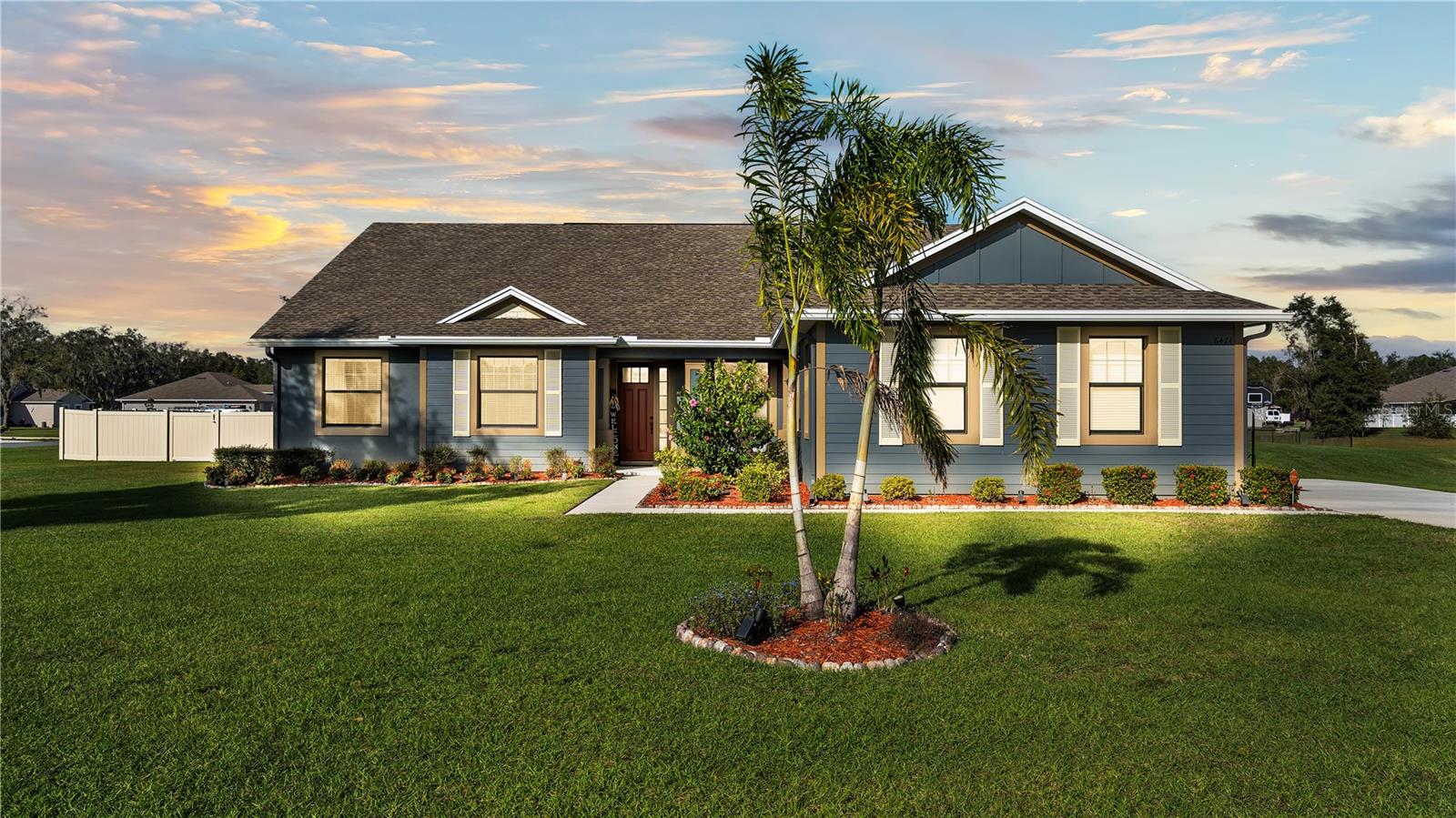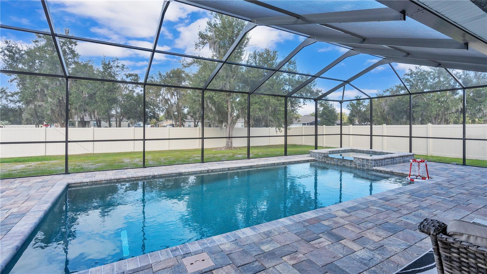 Welcome to this exquisite and recently enhanced modern residence situated on a sprawling .78-acre lot at the cul-de-sac within the gated community of English Creek by Southern Homes. This residence offers a total of 5 bedrooms and 3 bathrooms, providing ample space for family and guests. With upgraded luxury vinyl plank flooring gracing the main living areas, this home seamlessly blends style and functionality. The kitchen boasts dark gray wood crowned cabinetry, granite countertops, and stainless steel appliances, creating a sleek culinary space. Additionally, bar stools may be added to the kitchen island, providing a casual and social space for family and guests. The inviting living room is a focal point of the home, featuring sliding glass doors that open up to the lanai, allowing for a seamless indoor-outdoor transition. Ample windows flood the space with natural light, creating a bright and airy atmosphere, while designed for entertaining and hosting, with a decorative wall and entertainment center with a TV that can be set at any light, creating the perfect ambiance. The primary bedroom suite is a true retreat, featuring a double tray ceiling, two separate walk-in closets, and an ensuite bathroom that includes a step-in tiled glass door shower, a garden tub with jets, and two separate vanities. The guest suite includes its own walk-in closet, enhancing privacy and comfort. The outdoor oasis is equally impressive, featuring a brand new saltwater heated pool and spa with a pavered lanai, all installed within the last few months. Enjoy the inviting poolside atmosphere, complete with beautiful accent lighting, and control the settings conveniently through WiFi on your phone. The oversized corner lot, privacy fence, and large screened-in lanai further contribute to the allure of this home. Practical features, such as boat and RV parking in the driveway or behind fencing, cater to an active lifestyle. The property's location is a commuter's dream, just minutes away from I4, and conveniently close to Publix. This residence offers not only a modern and stylish living space but also the perfect blend of comfort, convenience, and luxury within a secure and gated community, now enhanced by the recent addition of a stunning pool and spa. All appliances and the outdoor television are included, as well as the bar in the 5th bedroom/office are negotiable. Schedule your tour today and feel the welcome of home!