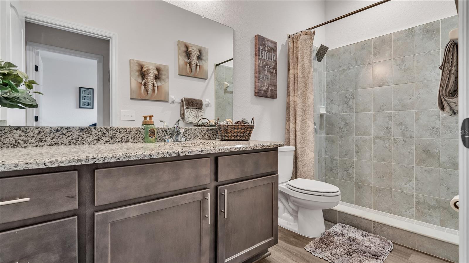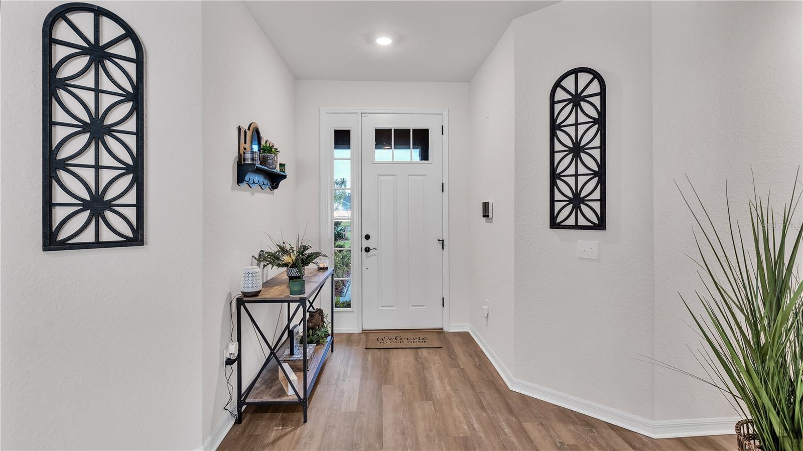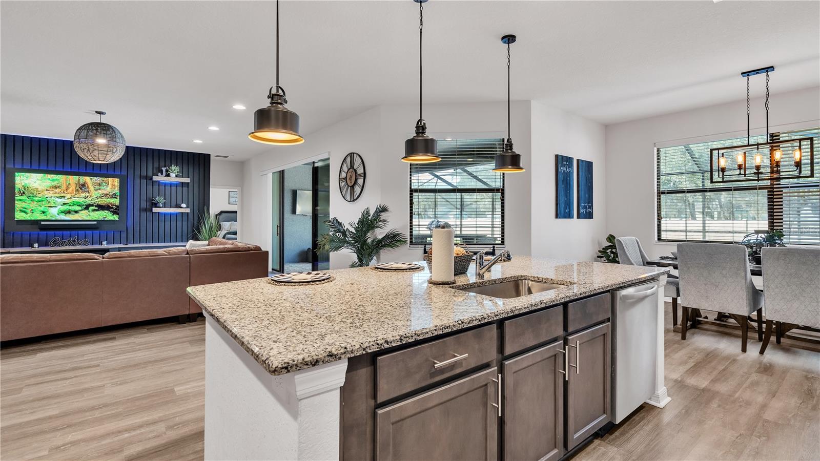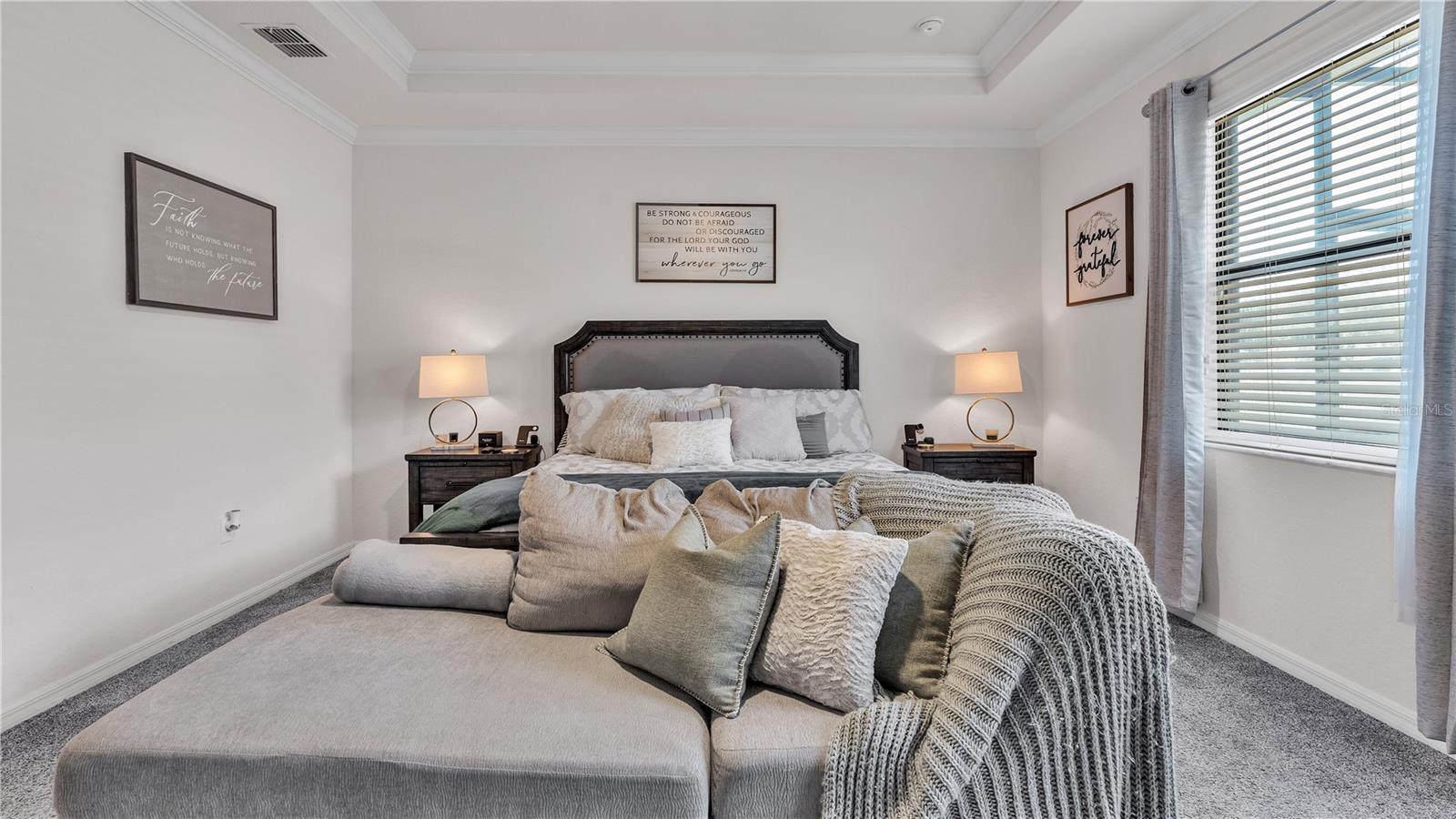 Welcome to this exquisite and recently enhanced modern residence situated on a sprawling .78-acre lot at the cul-de-sac within the gated community of English Creek by Southern Homes. This residence offers a total of 5 bedrooms and 3 bathrooms, providing ample space for family and guests. With upgraded luxury vinyl plank flooring gracing the main living areas, this home seamlessly blends style and functionality. The kitchen boasts dark gray wood crowned cabinetry, granite countertops, and stainless steel appliances, creating a sleek culinary space. Additionally, bar stools may be added to the kitchen island, providing a casual and social space for family and guests. The inviting living room is a focal point of the home, featuring sliding glass doors that open up to the lanai, allowing for a seamless indoor-outdoor transition. Ample windows flood the space with natural light, creating a bright and airy atmosphere, while designed for entertaining and hosting, with a decorative wall and entertainment center with a TV that can be set at any light, creating the perfect ambiance. The primary bedroom suite is a true retreat, featuring a double tray ceiling, two separate walk-in closets, and an ensuite bathroom that includes a step-in tiled glass door shower, a garden tub with jets, and two separate vanities. The guest suite includes its own walk-in closet, enhancing privacy and comfort. The outdoor oasis is equally impressive, featuring a brand new saltwater heated pool and spa with a pavered lanai, all installed within the last few months. Enjoy the inviting poolside atmosphere, complete with beautiful accent lighting, and control the settings conveniently through WiFi on your phone. The oversized corner lot, privacy fence, and large screened-in lanai further contribute to the allure of this home. Practical features, such as boat and RV parking in the driveway or behind fencing, cater to an active lifestyle. The property's location is a commuter's dream, just minutes away from I4, and conveniently close to Publix. This residence offers not only a modern and stylish living space but also the perfect blend of comfort, convenience, and luxury within a secure and gated community, now enhanced by the recent addition of a stunning pool and spa. All appliances and the outdoor television are included, as well as the bar in the 5th bedroom/office are negotiable. Schedule your tour today and feel the welcome of home!