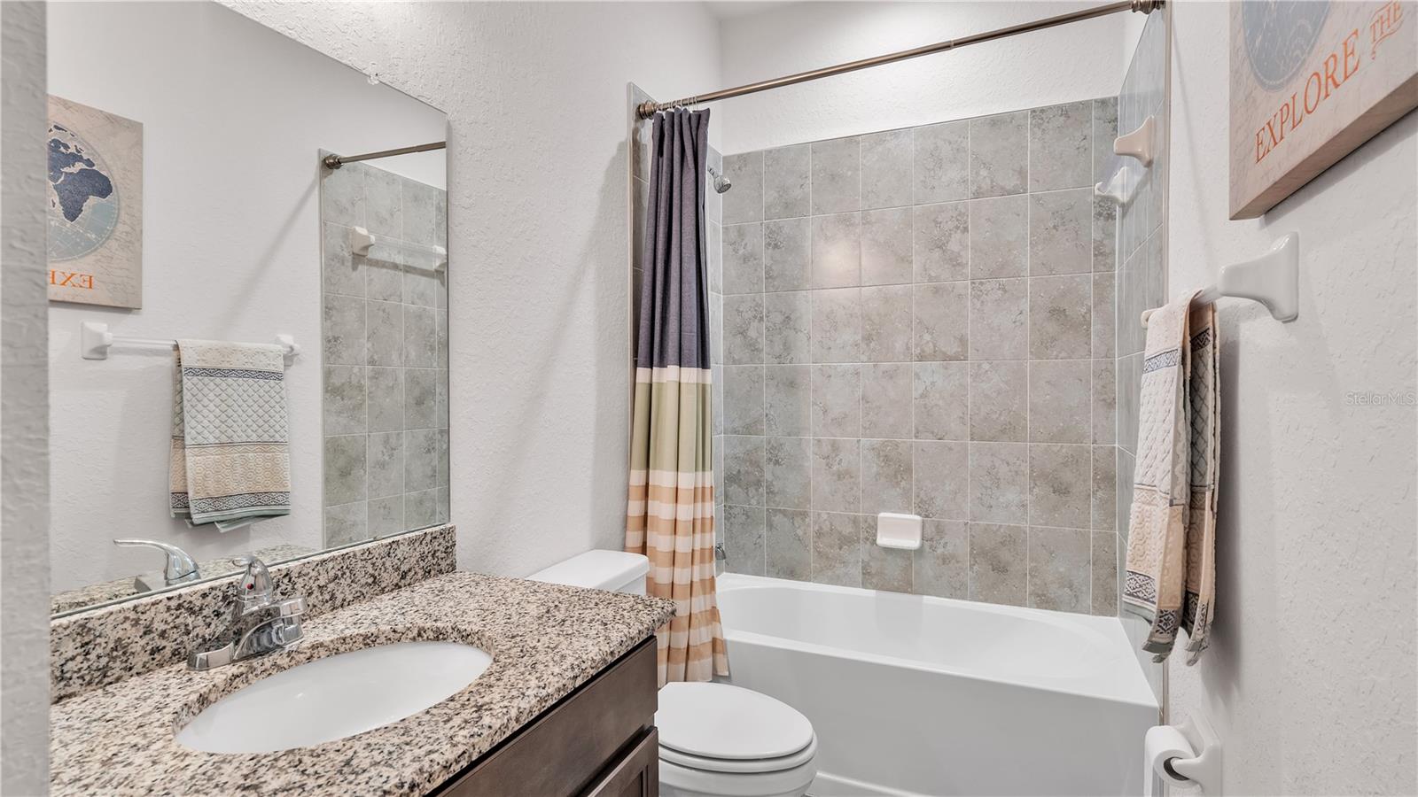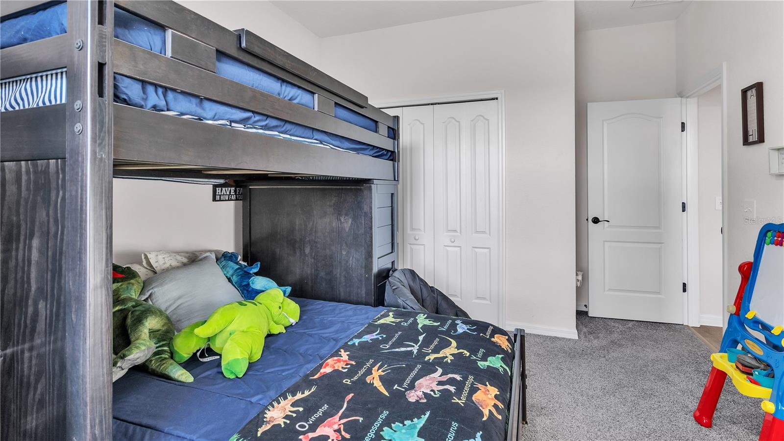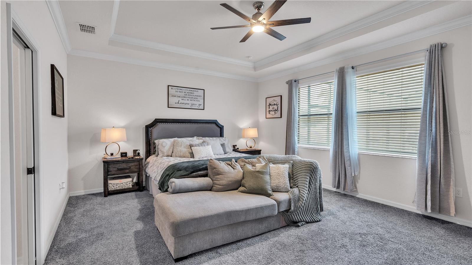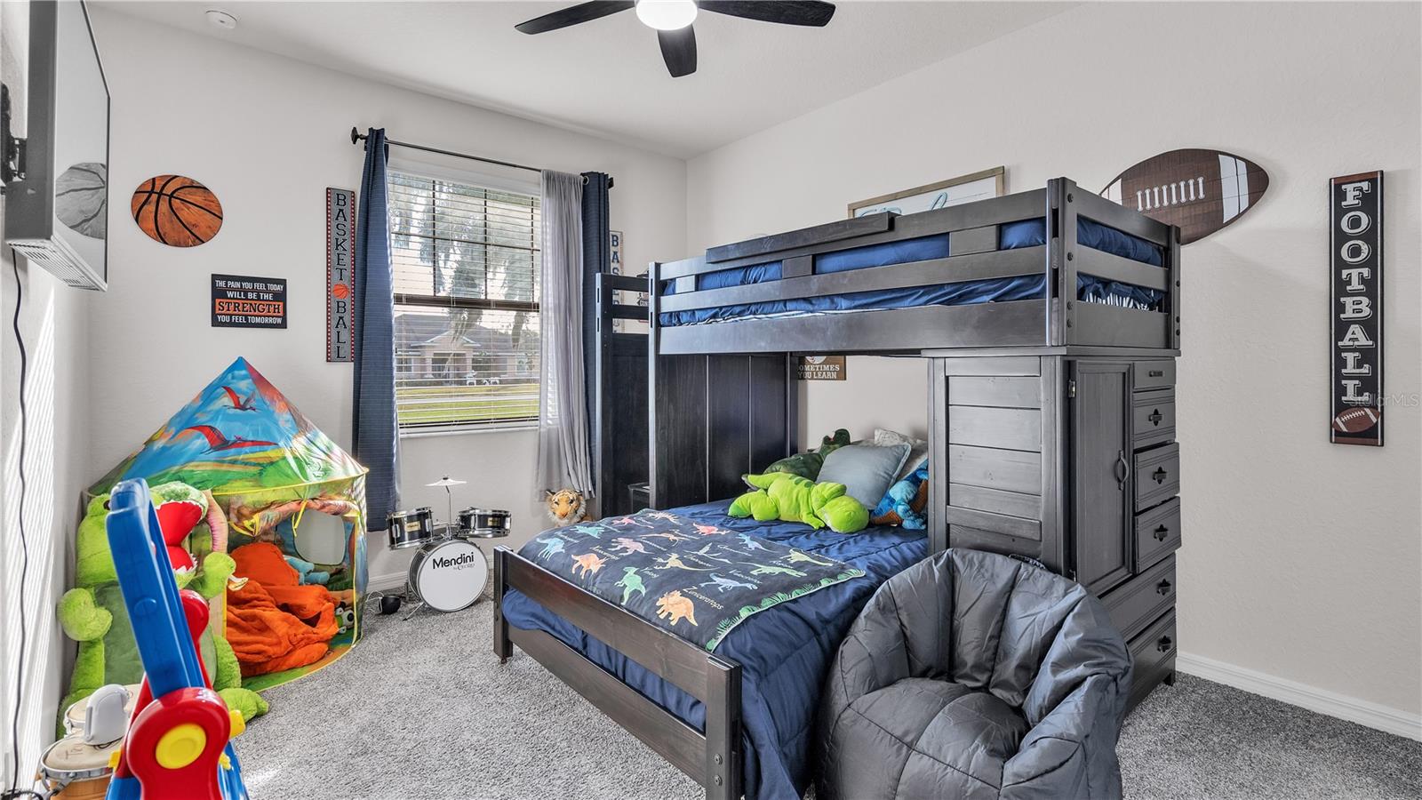 Welcome to this exquisite and recently enhanced modern residence situated on a sprawling .78-acre lot at the cul-de-sac within the gated community of English Creek by Southern Homes. This residence offers a total of 5 bedrooms and 3 bathrooms, providing ample space for family and guests. With upgraded luxury vinyl plank flooring gracing the main living areas, this home seamlessly blends style and functionality. The kitchen boasts dark gray wood crowned cabinetry, granite countertops, and stainless steel appliances, creating a sleek culinary space. Additionally, bar stools may be added to the kitchen island, providing a casual and social space for family and guests. The inviting living room is a focal point of the home, featuring sliding glass doors that open up to the lanai, allowing for a seamless indoor-outdoor transition. Ample windows flood the space with natural light, creating a bright and airy atmosphere, while designed for entertaining and hosting, with a decorative wall and entertainment center with a TV that can be set at any light, creating the perfect ambiance. The primary bedroom suite is a true retreat, featuring a double tray ceiling, two separate walk-in closets, and an ensuite bathroom that includes a step-in tiled glass door shower, a garden tub with jets, and two separate vanities. The guest suite includes its own walk-in closet, enhancing privacy and comfort. The outdoor oasis is equally impressive, featuring a brand new saltwater heated pool and spa with a pavered lanai, all installed within the last few months. Enjoy the inviting poolside atmosphere, complete with beautiful accent lighting, and control the settings conveniently through WiFi on your phone. The oversized corner lot, privacy fence, and large screened-in lanai further contribute to the allure of this home. Practical features, such as boat and RV parking in the driveway or behind fencing, cater to an active lifestyle. The property's location is a commuter's dream, just minutes away from I4, and conveniently close to Publix. This residence offers not only a modern and stylish living space but also the perfect blend of comfort, convenience, and luxury within a secure and gated community, now enhanced by the recent addition of a stunning pool and spa. All appliances and the outdoor television are included, as well as the bar in the 5th bedroom/office are negotiable. Schedule your tour today and feel the welcome of home!