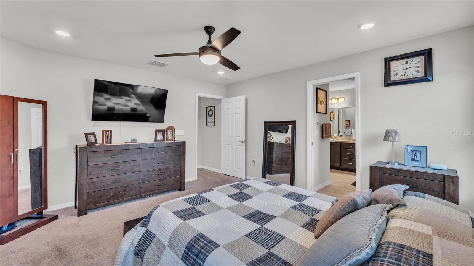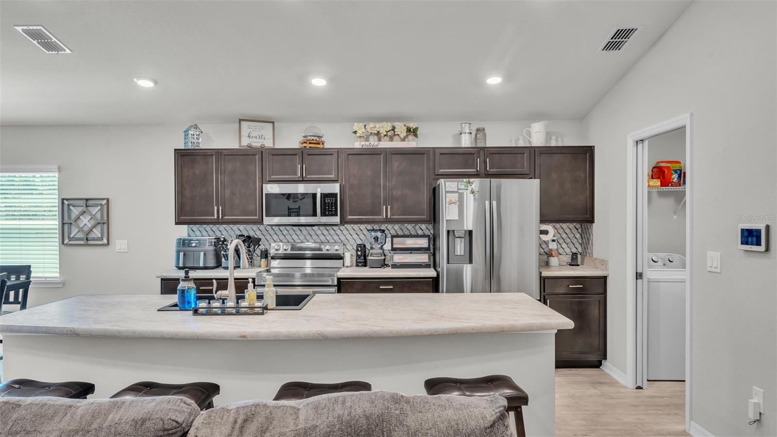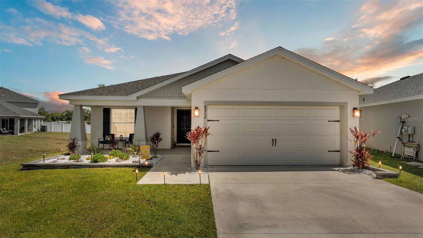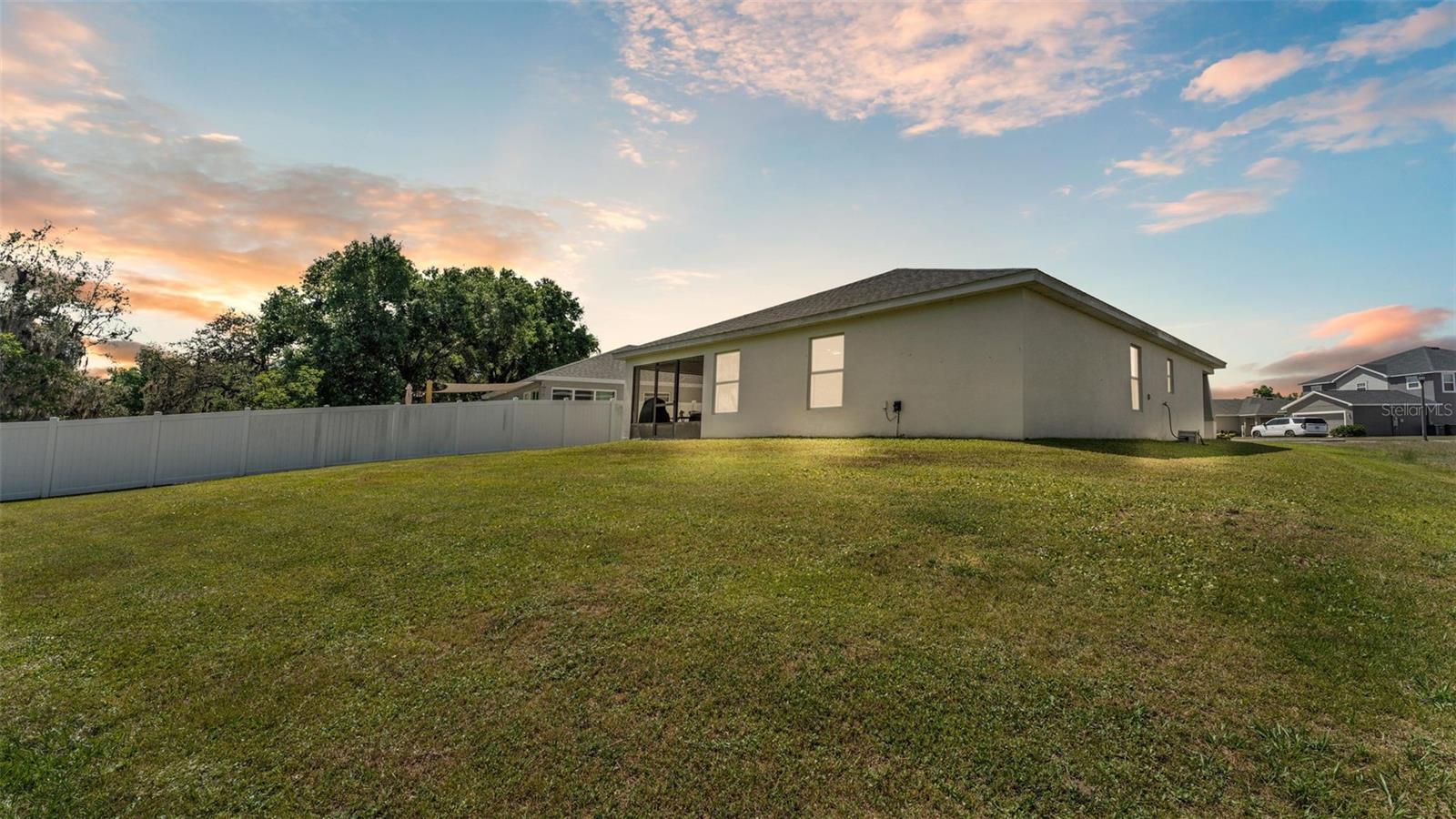Welcome to this beautifully maintained 2021-built home by Highland Homes, located in the South Lakeland community of Aniston. Nestled on a cul-de-sac lot with no rear neighbors, this home offers both privacy and peaceful views, all while being conveniently close to Bartow Highway, the Polk Parkway, shopping, dining, and more. The Aniston community features sidewalks, perfect for evening strolls or morning jogs. Step through the front door into a spacious open-concept living area highlighted by a vaulted ceiling and luxury vinyl plank flooring with a wood-look finish throughout the common areas. To the left of the entryway, you'll find a hallway leading to two well-sized bedrooms and a guest bathroom. As you continue through the home, the kitchen opens to the living room and features a large island with bar seating, a custom deep farmhouse sink, a tiled backsplash, and a generously sized walk-in pantry. Just off the kitchen is a laundry room complete with cabinet and shelving, providing access to the two-car garage. The primary bedroom is located at the rear of the home for added privacy and boasts a spacious en-suite bathroom with a dual sink vanity, a large walk-in closet, a tiled step-in shower, and an additional deep storage closet. The dining area is situated off the kitchen and flows seamlessly into the living room, which is adorned with recessed lighting and an industrial-style ceiling fan. Step outside through the sliding glass doors to the covered lanai, which overlooks a large, fenced-in backyard--ideal for entertaining or relaxing in your private outdoor space. This home features the popular Parsyn floor plan by Highland Homes and includes newer 2021 appliances, a Google camera-equipped doorbell, and ADT monitoring for added security. Don't miss your chance to tour this move-in ready home in one of Lakeland's sought-after neighborhoods. Schedule your showing today!