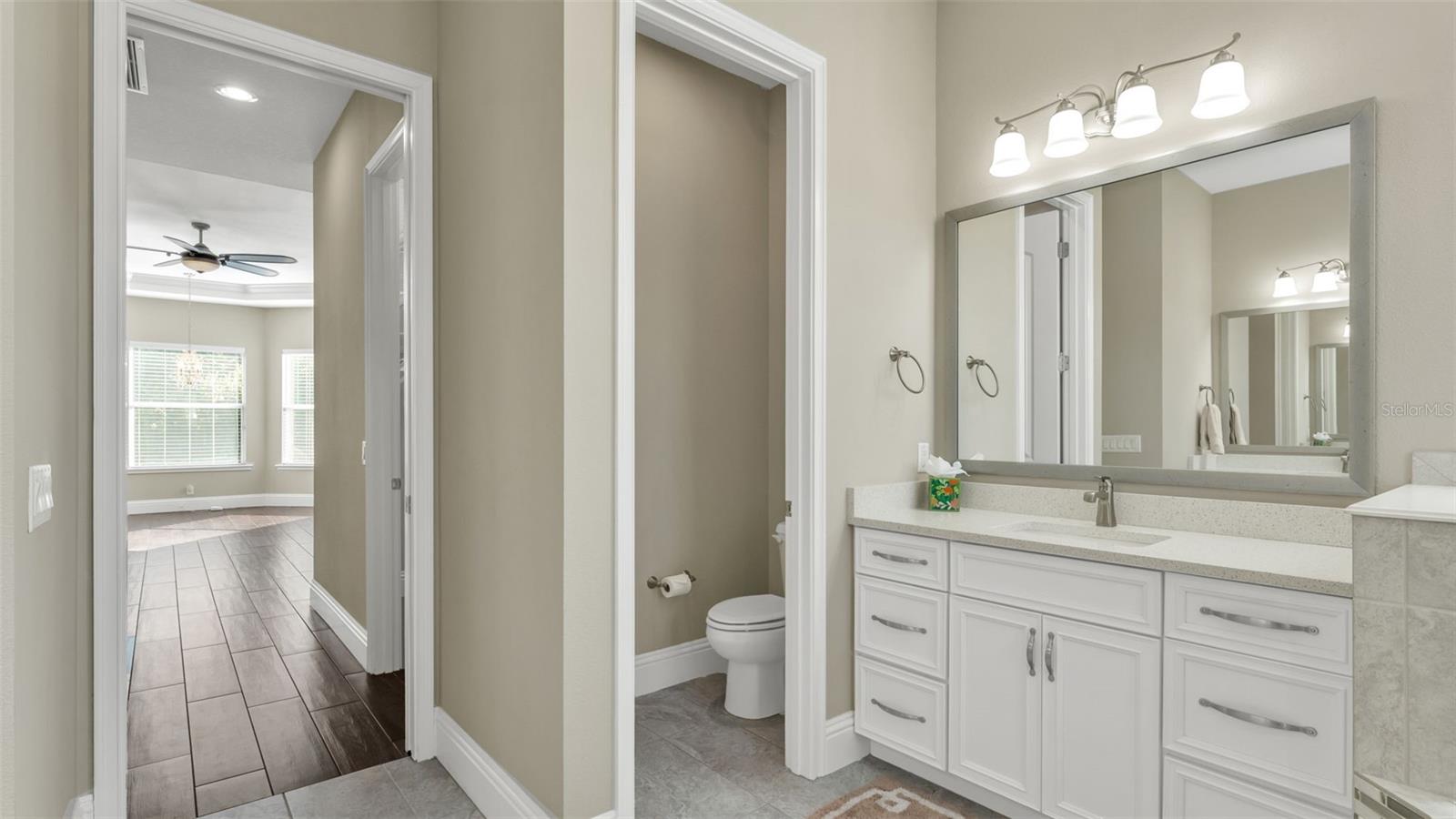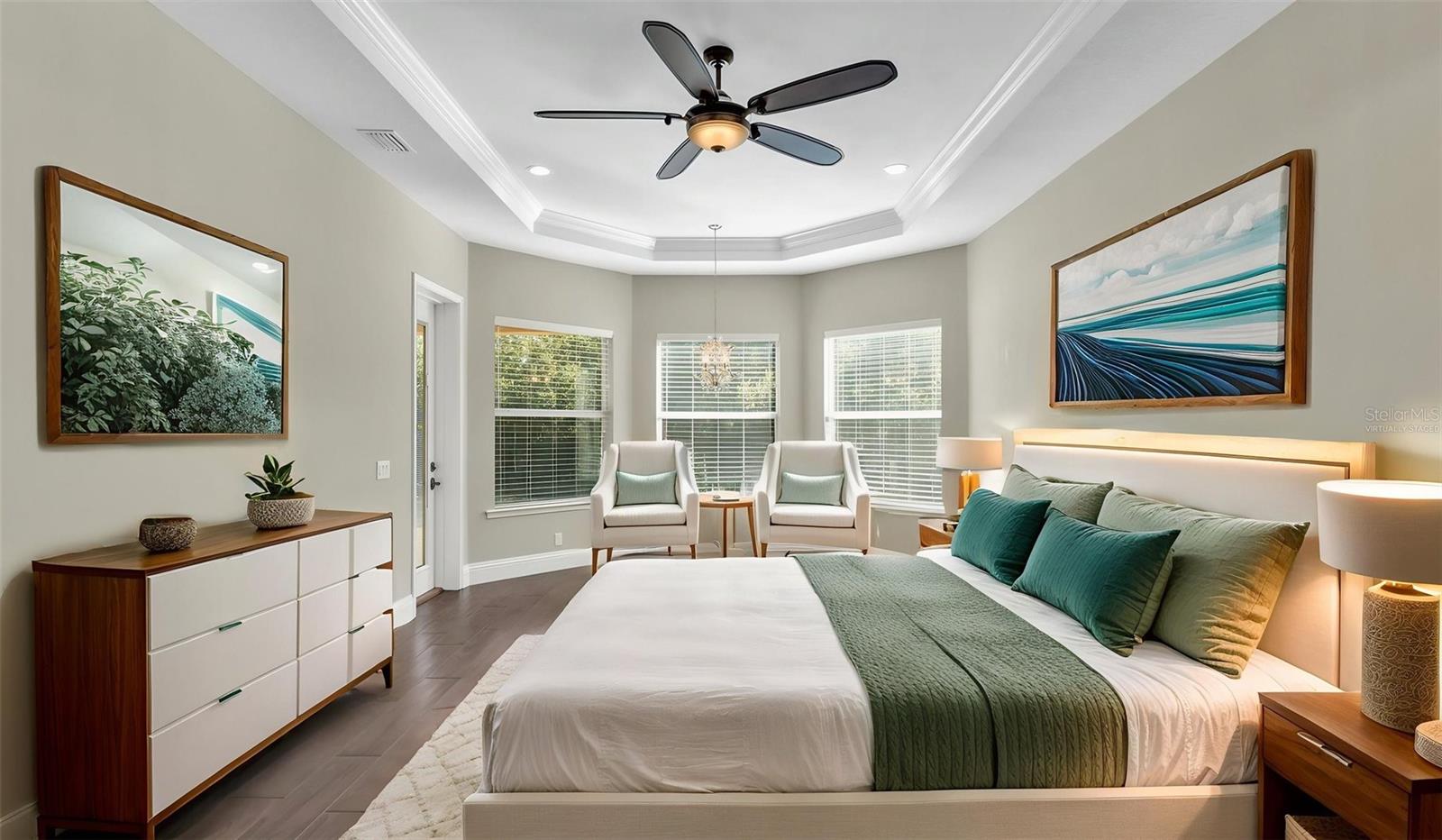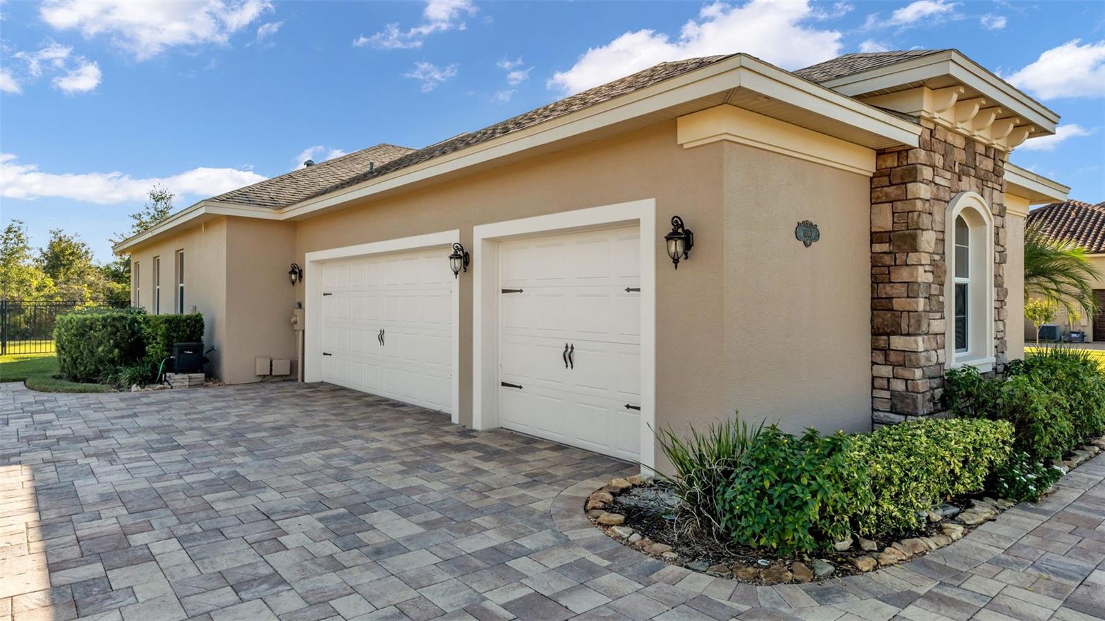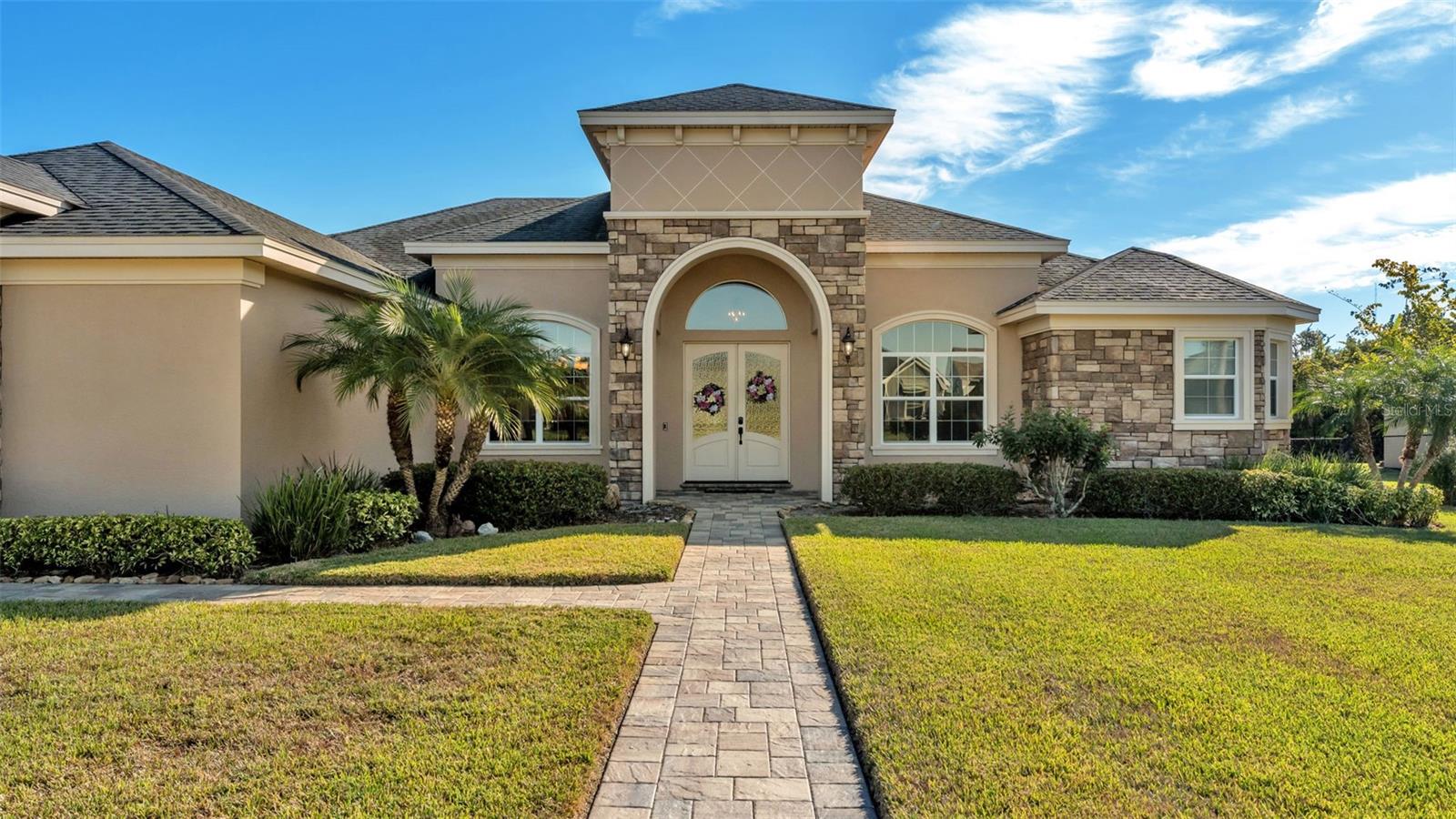 One or more photo(s) has been virtually staged. Welcome to Heritage Place at Hallam Preserve, an exclusive gated community in the heart of South Lakeland, offering the perfect combination of elegance, comfort, and resort-style living. Residents enjoy access to exceptional amenities including a sparkling community pool, a beautifully designed clubhouse ideal for gatherings and events, and a well-maintained playground. Hallam Preserve is known for its peaceful atmosphere, tree-lined streets, and convenient location close to top-rated schools, shopping, dining, and easy access to major highways--making it one of the most desirable neighborhoods in the area. This exquisite home was custom built by Hulbert Homes and completed in 2018, showcasing superior craftsmanship and attention to detail throughout. Designed with both luxury and livability in mind, this residence offers 3 spacious bedrooms, 3 full bathrooms, and a dedicated office--ideal for remote work or a quiet study space. The home is perfectly situated on a private lot with no rear neighbors and backs up to a beautiful conservation area, creating a serene and natural backdrop that provides privacy and a sense of tranquility rarely found in newer communities. The striking exterior features elegant stone accents, a three-car garage, and a wide pavered driveway that enhances the home's curb appeal. As you step inside, you're greeted by a grand foyer that opens to a thoughtfully designed split floor plan with wood-look tile flooring that flows seamlessly throughout the entire home. Crown molding, high ceilings, and detailed double tray ceilings in the living room elevate the home's sense of luxury and spaciousness. The gourmet kitchen is truly the heart of this home, featuring stunning granite countertops, an abundance of cabinet and counter space, and a stylish stone backsplash that ties the space together. The tri-corner windows provide plenty of natural light and offer peaceful views of the backyard. A large center island with barstool seating makes the perfect spot for casual dining or entertaining, while the custom range hood and recessed lighting add to the modern, upscale feel. Each bedroom is generously sized and includes a walk-in closet, offering ample storage for everyone. The tri-split floor plan provides both functionality and privacy, ideal for families or guests. The spacious laundry room includes built-in cabinetry and a wash sink, adding both convenience and practicality to everyday living. The luxurious primary suite is a private retreat with its own access to the lanai, a beautifully detailed tray ceiling, dual walk-in closets, and a spa-like ensuite bathroom. Enjoy relaxing in the garden tub or refreshing in the tiled walk-in shower. Dual vanities with granite counters complete the space, offering both beauty and function. The living area opens to a screened and paver lanai through large sliding glass doors, seamlessly blending indoor and outdoor living. This outdoor space is perfect for entertaining, dining al fresco, or simply enjoying quiet evenings overlooking the preserved wooded area beyond your backyard. The pavers have been recently sealed, ensuring a fresh and well-maintained appearance. Whether you're hosting friends and family or seeking a peaceful escape, this home offers the perfect balance of elegance, privacy, and comfort. Experience refined living at its finest in Heritage Place at Hallam Preserve--where luxury meets lifestyle in one of South Lakeland's premier gated communities.