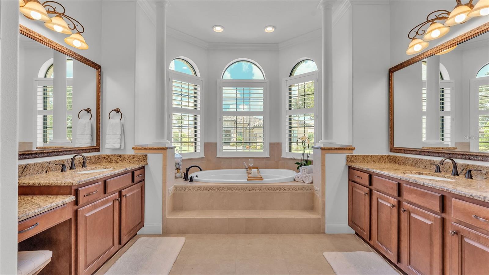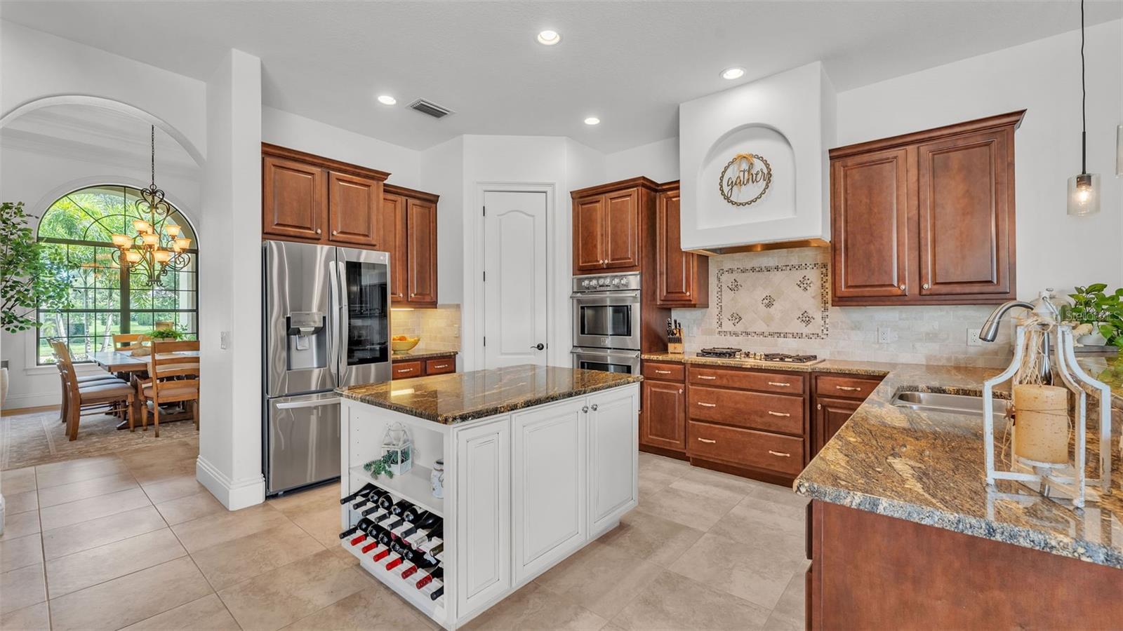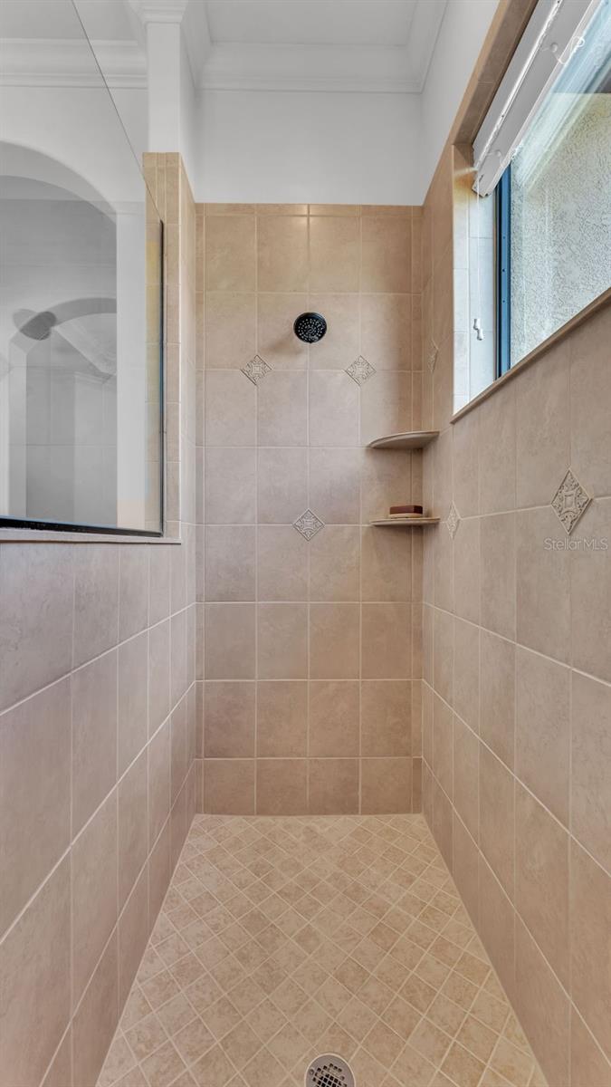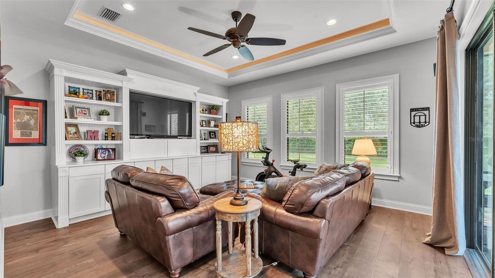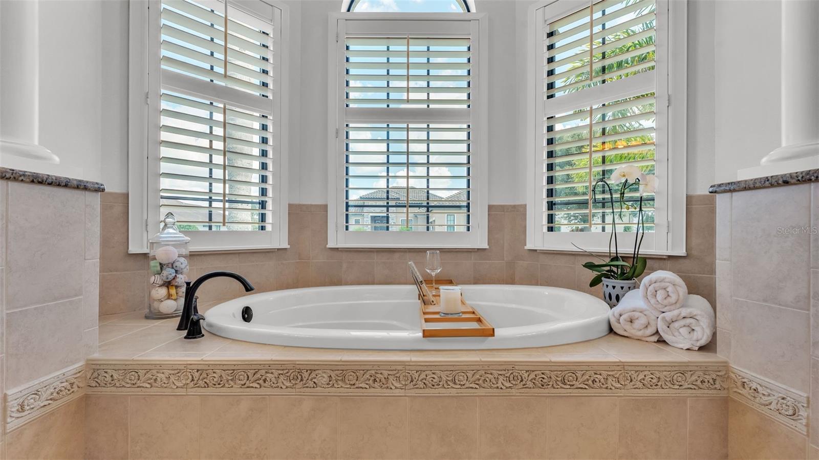 Welcome to 6572 Eagle View Loop, a stunning Mediterranean-style estate nestled in the heart of The Preserve at Eaglebrooke North, one of Lakeland's most sought after 24-hour guarded and gated Country Club communities. This impeccably maintained 5-bedroom, 3.5-bathroom custom home spans 3,546 square feet of refined single-level living and sits on an expansive 0.34-acre lot. Built by award-winning Hulbert Homes, this residence offers the perfect blend of elegance, comfort, and modern convenience. A grand barrel tile roof, paver driveway, and elegant eight-foot double front doors set the stage for the luxury found within. Step inside to discover a freshly repainted interior (August 2025) and rich hardwood flooring added in 2023, complemented by sleek tile throughout the wet and common areas. Every detail is carefully curated from the custom closets by Closets by Design to the classic Florida Plantation Shutters gracing the windows. The gourmet kitchen is the heart of the home, featuring custom wood cabinetry, granite countertops, stainless steel appliances, and a spacious island. A built-in double oven, gas cooktop with decorative hood, and microwave make culinary endeavors a delight, while the breakfast bar comfortably seats four. The adjacent wet bar with a built-in icemaker is perfect for entertaining guests. The living room is anchored by a stunning stone-accented gas fireplace, offering a warm and inviting space to gather. This home also includes a private study and a versatile bonus/theatre room, designed to fit your lifestyle needs. The primary suite is a true retreat, showcasing a spacious bedroom with custom closets and an opulent en-suite bathroom featuring granite counters, abundant cabinetry, a walk-in shower, and eye-catching decorative mirrors. Step into your outdoor paradise with an expansive screen-enclosed lanai with paver flooring, recently refreshed in 2024 with new screening, tie-downs, and three new outdoor fans in 2025. Enjoy Florida's year-round sunshine by the beach entry pool, a resort-style feature with a gradual, walk-in slope that mimics the shoreline of a tropical beach. This luxurious pool is enhanced with a sun shelf, soothing fountains, and two built-in seating areas for ultimate relaxation. A tranquil waterfall completes this private backyard oasis. Notable upgrades include a full-home Generac 26kW generator (2024), water softener and reverse osmosis system (2023), and a Bosch 800 dishwasher (2023). The pool pump, salt system, and valves were also updated in 2023, ensuring peak performance. Two brand-new AC systems were installed in August 2025 for optimal climate control year-round. Additional features include a beautifully landscaped Zoysia lawn with upgraded outdoor lighting (2024), and a new ice machine added in 2025 for everyday convenience. The oversized three-car garage offers plenty of space for vehicles and storage, while the meticulously serviced irrigation system keeps the grounds lush and vibrant. Residents of Eaglebrooke enjoy access to a 4 1/2-Star Championship Golf Course, Junior Olympic swimming pool, tennis, pickleball courts, and a clubhouse with formal dining, sports bar, event space, and a fully stocked pro shop, all with available membership options. Luxury, comfort, and resort-style living await you at 6572 Eagle View Loop where every detail has been thoughtfully crafted for the most discerning homeowner.
