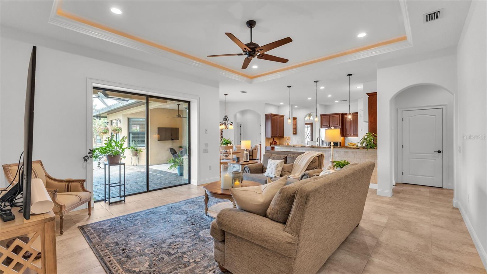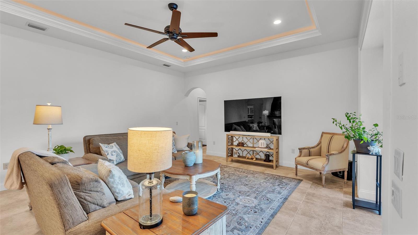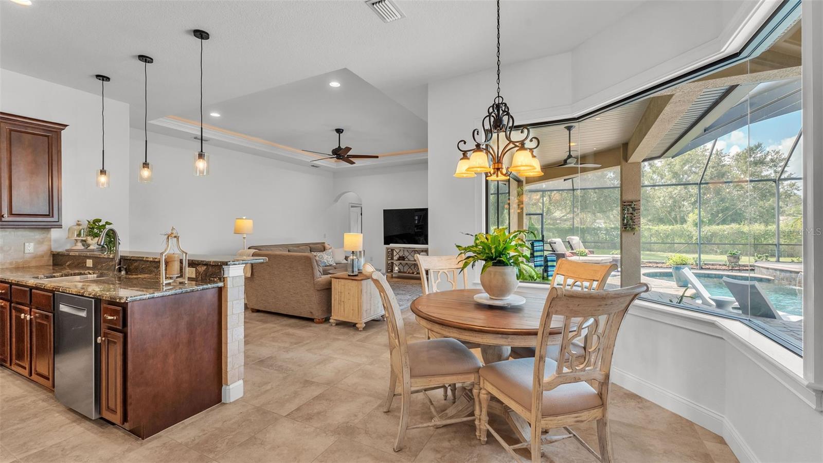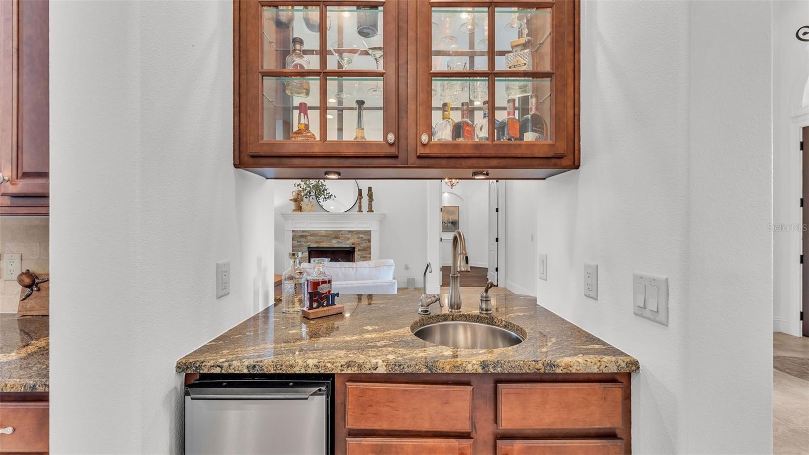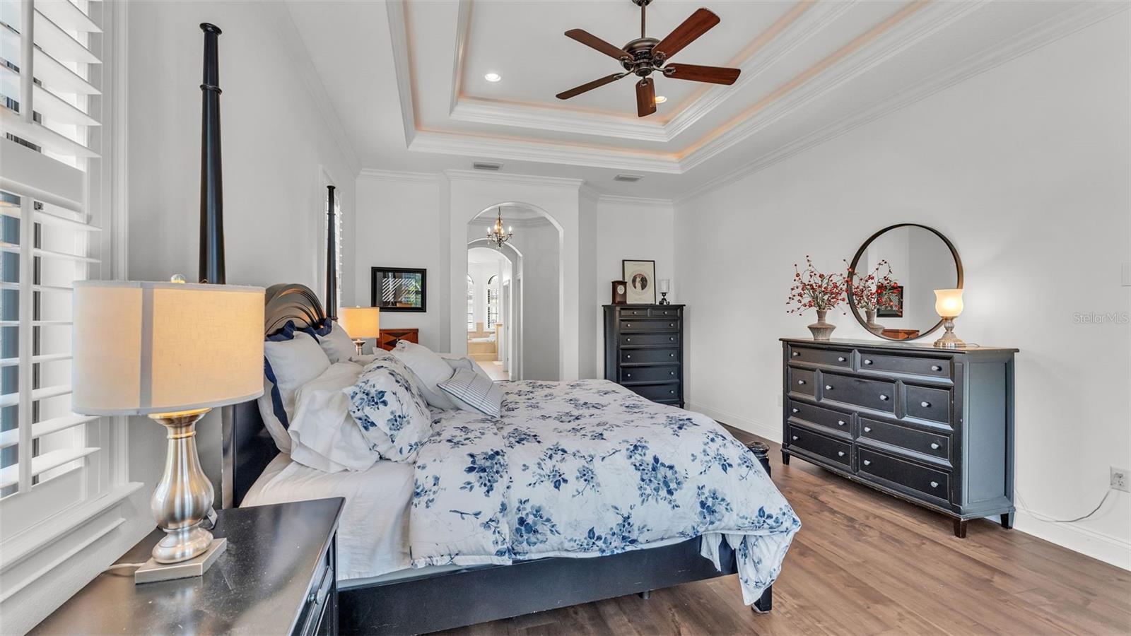 Welcome to 6572 Eagle View Loop, a stunning Mediterranean-style estate nestled in the heart of The Preserve at Eaglebrooke North, one of Lakeland's most sought after 24-hour guarded and gated Country Club communities. This impeccably maintained 5-bedroom, 3.5-bathroom custom home spans 3,546 square feet of refined single-level living and sits on an expansive 0.34-acre lot. Built by award-winning Hulbert Homes, this residence offers the perfect blend of elegance, comfort, and modern convenience. A grand barrel tile roof, paver driveway, and elegant eight-foot double front doors set the stage for the luxury found within. Step inside to discover a freshly repainted interior (August 2025) and rich hardwood flooring added in 2023, complemented by sleek tile throughout the wet and common areas. Every detail is carefully curated from the custom closets by Closets by Design to the classic Florida Plantation Shutters gracing the windows. The gourmet kitchen is the heart of the home, featuring custom wood cabinetry, granite countertops, stainless steel appliances, and a spacious island. A built-in double oven, gas cooktop with decorative hood, and microwave make culinary endeavors a delight, while the breakfast bar comfortably seats four. The adjacent wet bar with a built-in icemaker is perfect for entertaining guests. The living room is anchored by a stunning stone-accented gas fireplace, offering a warm and inviting space to gather. This home also includes a private study and a versatile bonus/theatre room, designed to fit your lifestyle needs. The primary suite is a true retreat, showcasing a spacious bedroom with custom closets and an opulent en-suite bathroom featuring granite counters, abundant cabinetry, a walk-in shower, and eye-catching decorative mirrors. Step into your outdoor paradise with an expansive screen-enclosed lanai with paver flooring, recently refreshed in 2024 with new screening, tie-downs, and three new outdoor fans in 2025. Enjoy Florida's year-round sunshine by the beach entry pool, a resort-style feature with a gradual, walk-in slope that mimics the shoreline of a tropical beach. This luxurious pool is enhanced with a sun shelf, soothing fountains, and two built-in seating areas for ultimate relaxation. A tranquil waterfall completes this private backyard oasis. Notable upgrades include a full-home Generac 26kW generator (2024), water softener and reverse osmosis system (2023), and a Bosch 800 dishwasher (2023). The pool pump, salt system, and valves were also updated in 2023, ensuring peak performance. Two brand-new AC systems were installed in August 2025 for optimal climate control year-round. Additional features include a beautifully landscaped Zoysia lawn with upgraded outdoor lighting (2024), and a new ice machine added in 2025 for everyday convenience. The oversized three-car garage offers plenty of space for vehicles and storage, while the meticulously serviced irrigation system keeps the grounds lush and vibrant. Residents of Eaglebrooke enjoy access to a 4 1/2-Star Championship Golf Course, Junior Olympic swimming pool, tennis, pickleball courts, and a clubhouse with formal dining, sports bar, event space, and a fully stocked pro shop, all with available membership options. Luxury, comfort, and resort-style living await you at 6572 Eagle View Loop where every detail has been thoughtfully crafted for the most discerning homeowner.