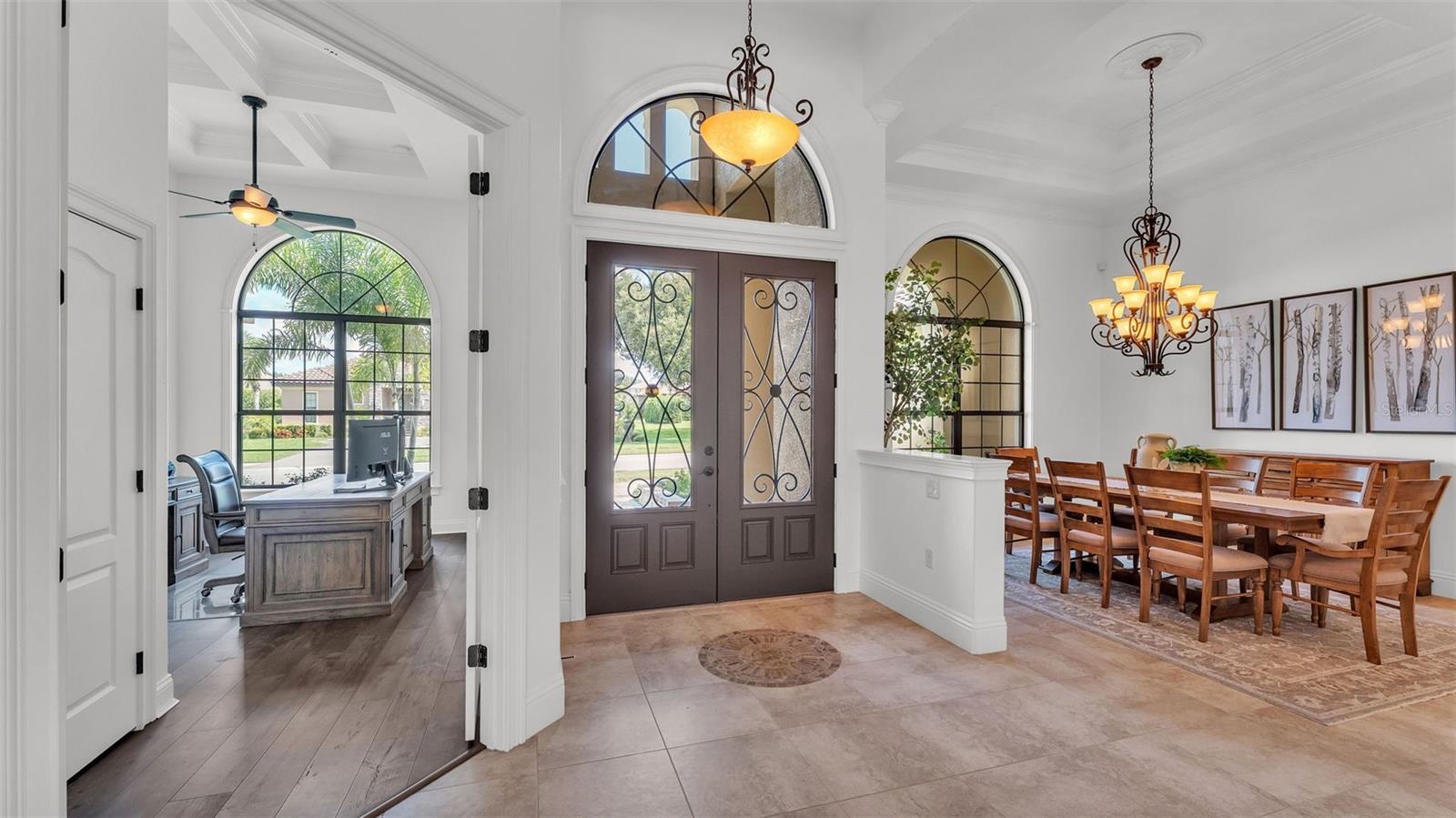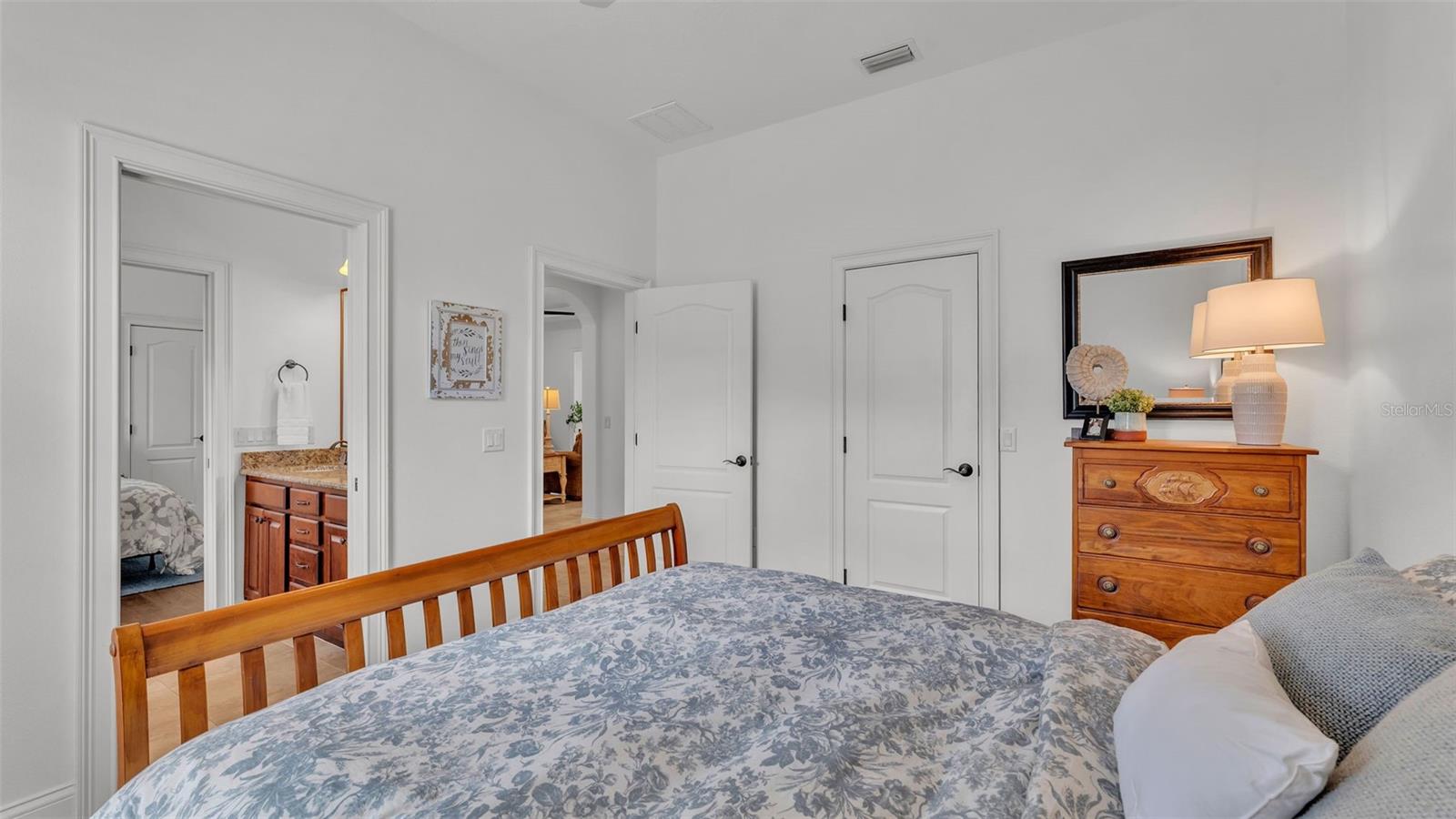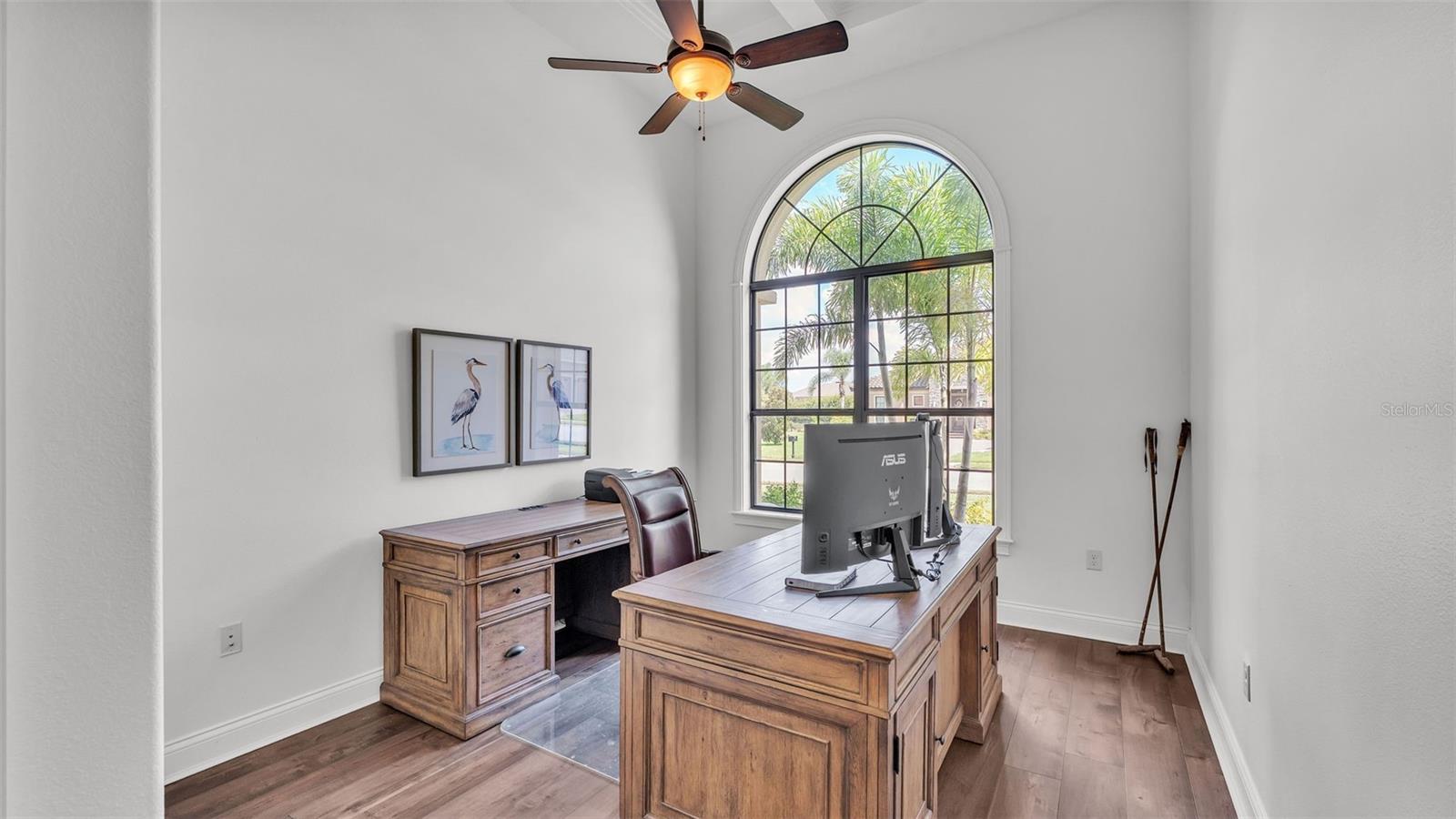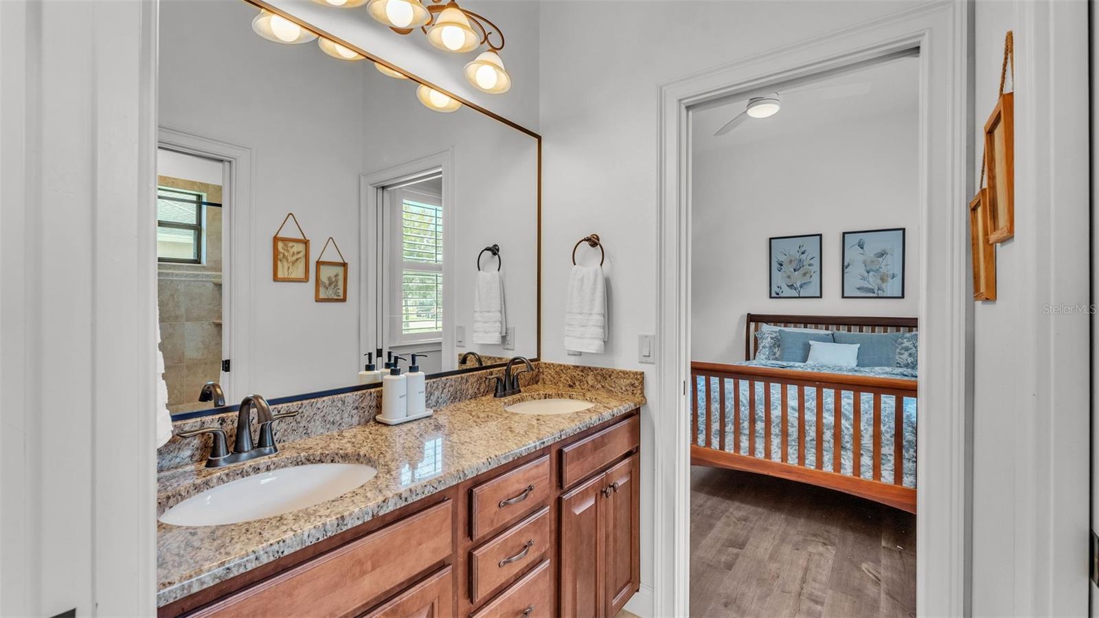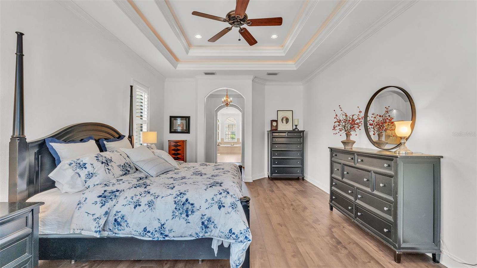 Welcome to 6572 Eagle View Loop, a stunning Mediterranean-style estate nestled in the heart of The Preserve at Eaglebrooke North, one of Lakeland's most sought after 24-hour guarded and gated Country Club communities. This impeccably maintained 5-bedroom, 3.5-bathroom custom home spans 3,546 square feet of refined single-level living and sits on an expansive 0.34-acre lot. Built by award-winning Hulbert Homes, this residence offers the perfect blend of elegance, comfort, and modern convenience. A grand barrel tile roof, paver driveway, and elegant eight-foot double front doors set the stage for the luxury found within. Step inside to discover a freshly repainted interior (August 2025) and rich hardwood flooring added in 2023, complemented by sleek tile throughout the wet and common areas. Every detail is carefully curated from the custom closets by Closets by Design to the classic Florida Plantation Shutters gracing the windows. The gourmet kitchen is the heart of the home, featuring custom wood cabinetry, granite countertops, stainless steel appliances, and a spacious island. A built-in double oven, gas cooktop with decorative hood, and microwave make culinary endeavors a delight, while the breakfast bar comfortably seats four. The adjacent wet bar with a built-in icemaker is perfect for entertaining guests. The living room is anchored by a stunning stone-accented gas fireplace, offering a warm and inviting space to gather. This home also includes a private study and a versatile bonus/theatre room, designed to fit your lifestyle needs. The primary suite is a true retreat, showcasing a spacious bedroom with custom closets and an opulent en-suite bathroom featuring granite counters, abundant cabinetry, a walk-in shower, and eye-catching decorative mirrors. Step into your outdoor paradise with an expansive screen-enclosed lanai with paver flooring, recently refreshed in 2024 with new screening, tie-downs, and three new outdoor fans in 2025. Enjoy Florida's year-round sunshine by the beach entry pool, a resort-style feature with a gradual, walk-in slope that mimics the shoreline of a tropical beach. This luxurious pool is enhanced with a sun shelf, soothing fountains, and two built-in seating areas for ultimate relaxation. A tranquil waterfall completes this private backyard oasis. Notable upgrades include a full-home Generac 26kW generator (2024), water softener and reverse osmosis system (2023), and a Bosch 800 dishwasher (2023). The pool pump, salt system, and valves were also updated in 2023, ensuring peak performance. Two brand-new AC systems were installed in August 2025 for optimal climate control year-round. Additional features include a beautifully landscaped Zoysia lawn with upgraded outdoor lighting (2024), and a new ice machine added in 2025 for everyday convenience. The oversized three-car garage offers plenty of space for vehicles and storage, while the meticulously serviced irrigation system keeps the grounds lush and vibrant. Residents of Eaglebrooke enjoy access to a 4 1/2-Star Championship Golf Course, Junior Olympic swimming pool, tennis, pickleball courts, and a clubhouse with formal dining, sports bar, event space, and a fully stocked pro shop, all with available membership options. Luxury, comfort, and resort-style living await you at 6572 Eagle View Loop where every detail has been thoughtfully crafted for the most discerning homeowner.