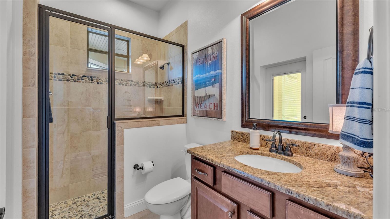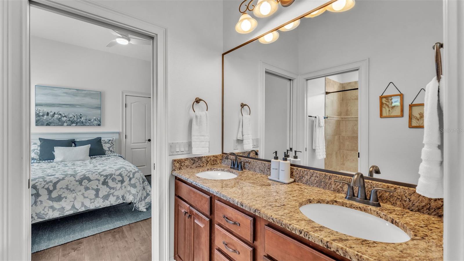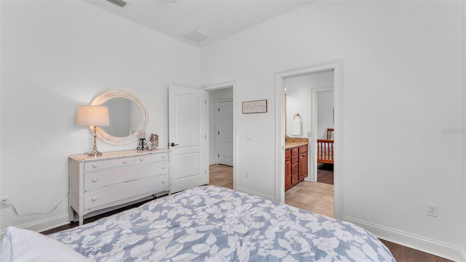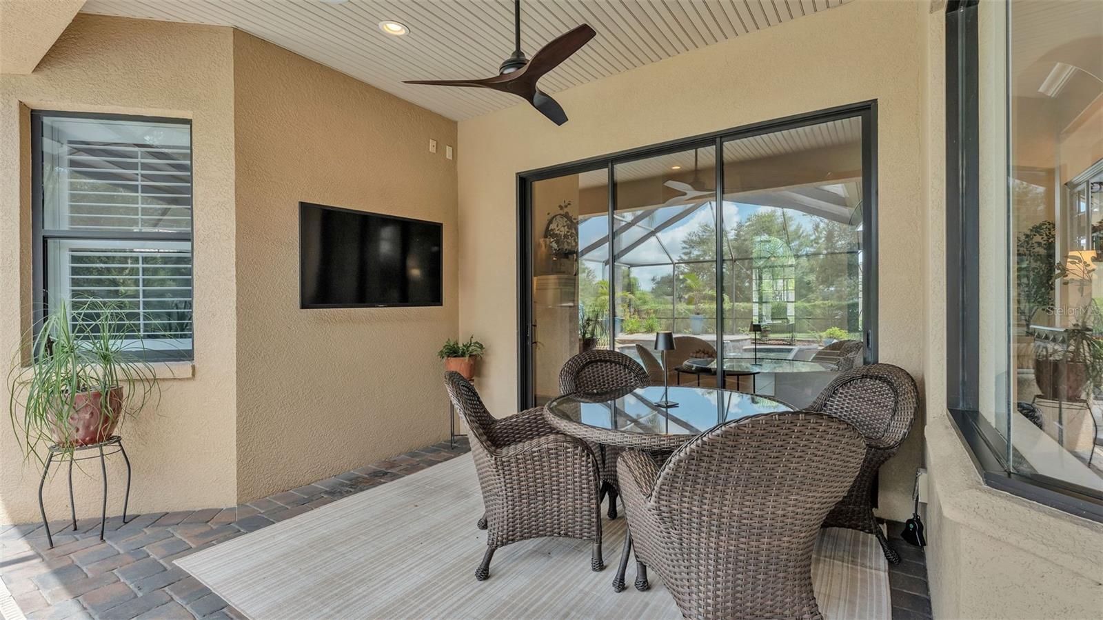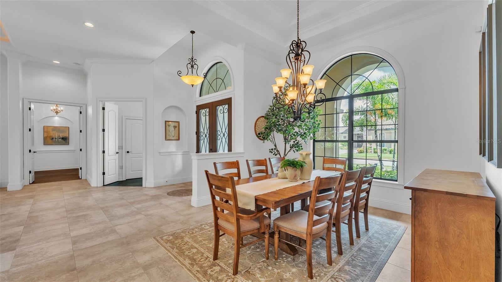 Welcome to 6572 Eagle View Loop, a stunning Mediterranean-style estate nestled in the heart of The Preserve at Eaglebrooke North, one of Lakeland's most sought after 24-hour guarded and gated Country Club communities. This impeccably maintained 5-bedroom, 3.5-bathroom custom home spans 3,546 square feet of refined single-level living and sits on an expansive 0.34-acre lot. Built by award-winning Hulbert Homes, this residence offers the perfect blend of elegance, comfort, and modern convenience. A grand barrel tile roof, paver driveway, and elegant eight-foot double front doors set the stage for the luxury found within. Step inside to discover a freshly repainted interior (August 2025) and rich hardwood flooring added in 2023, complemented by sleek tile throughout the wet and common areas. Every detail is carefully curated from the custom closets by Closets by Design to the classic Florida Plantation Shutters gracing the windows. The gourmet kitchen is the heart of the home, featuring custom wood cabinetry, granite countertops, stainless steel appliances, and a spacious island. A built-in double oven, gas cooktop with decorative hood, and microwave make culinary endeavors a delight, while the breakfast bar comfortably seats four. The adjacent wet bar with a built-in icemaker is perfect for entertaining guests. The living room is anchored by a stunning stone-accented gas fireplace, offering a warm and inviting space to gather. This home also includes a private study and a versatile bonus/theatre room, designed to fit your lifestyle needs. The primary suite is a true retreat, showcasing a spacious bedroom with custom closets and an opulent en-suite bathroom featuring granite counters, abundant cabinetry, a walk-in shower, and eye-catching decorative mirrors. Step into your outdoor paradise with an expansive screen-enclosed lanai with paver flooring, recently refreshed in 2024 with new screening, tie-downs, and three new outdoor fans in 2025. Enjoy Florida's year-round sunshine by the beach entry pool, a resort-style feature with a gradual, walk-in slope that mimics the shoreline of a tropical beach. This luxurious pool is enhanced with a sun shelf, soothing fountains, and two built-in seating areas for ultimate relaxation. A tranquil waterfall completes this private backyard oasis. Notable upgrades include a full-home Generac 26kW generator (2024), water softener and reverse osmosis system (2023), and a Bosch 800 dishwasher (2023). The pool pump, salt system, and valves were also updated in 2023, ensuring peak performance. Two brand-new AC systems were installed in August 2025 for optimal climate control year-round. Additional features include a beautifully landscaped Zoysia lawn with upgraded outdoor lighting (2024), and a new ice machine added in 2025 for everyday convenience. The oversized three-car garage offers plenty of space for vehicles and storage, while the meticulously serviced irrigation system keeps the grounds lush and vibrant. Residents of Eaglebrooke enjoy access to a 4 1/2-Star Championship Golf Course, Junior Olympic swimming pool, tennis, pickleball courts, and a clubhouse with formal dining, sports bar, event space, and a fully stocked pro shop, all with available membership options. Luxury, comfort, and resort-style living await you at 6572 Eagle View Loop where every detail has been thoughtfully crafted for the most discerning homeowner.