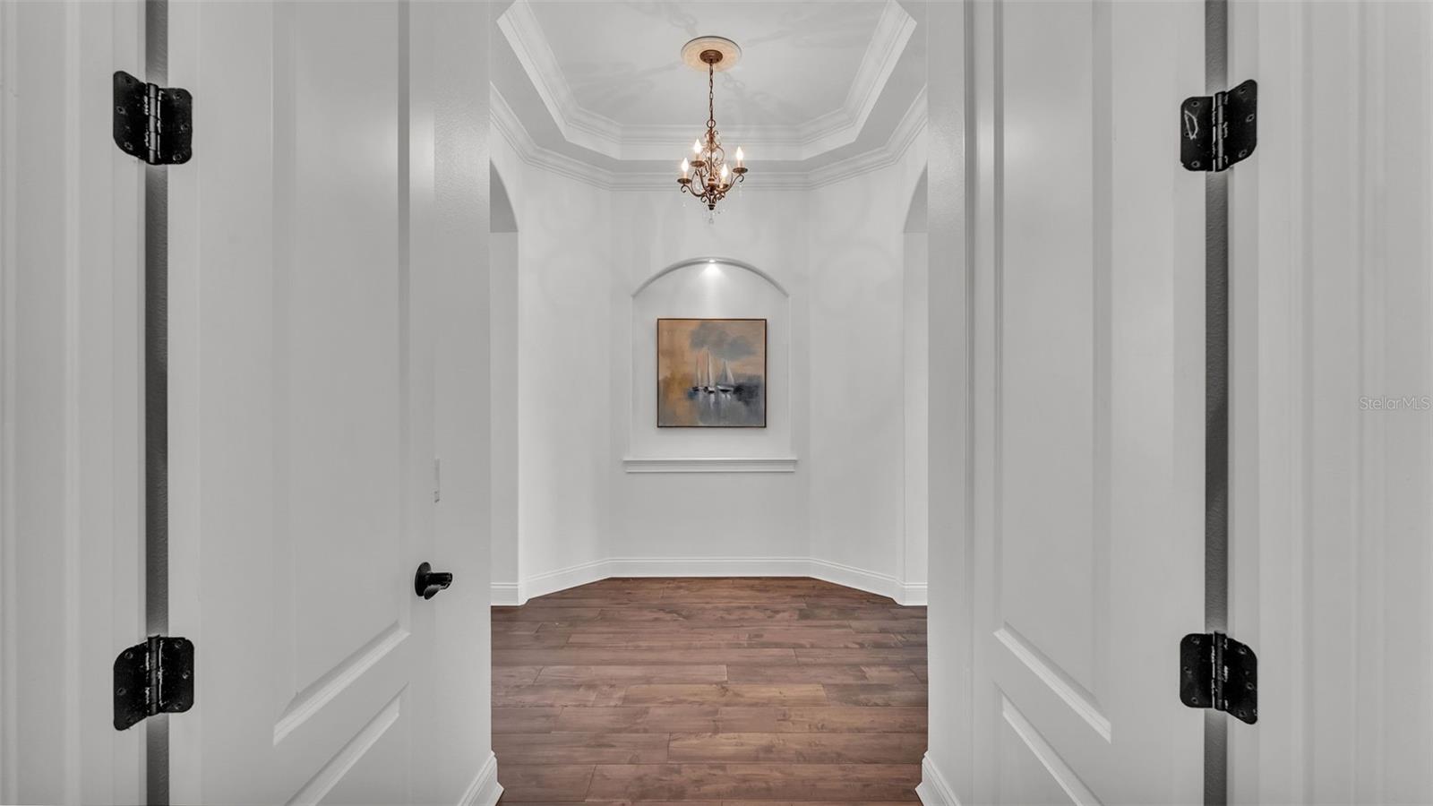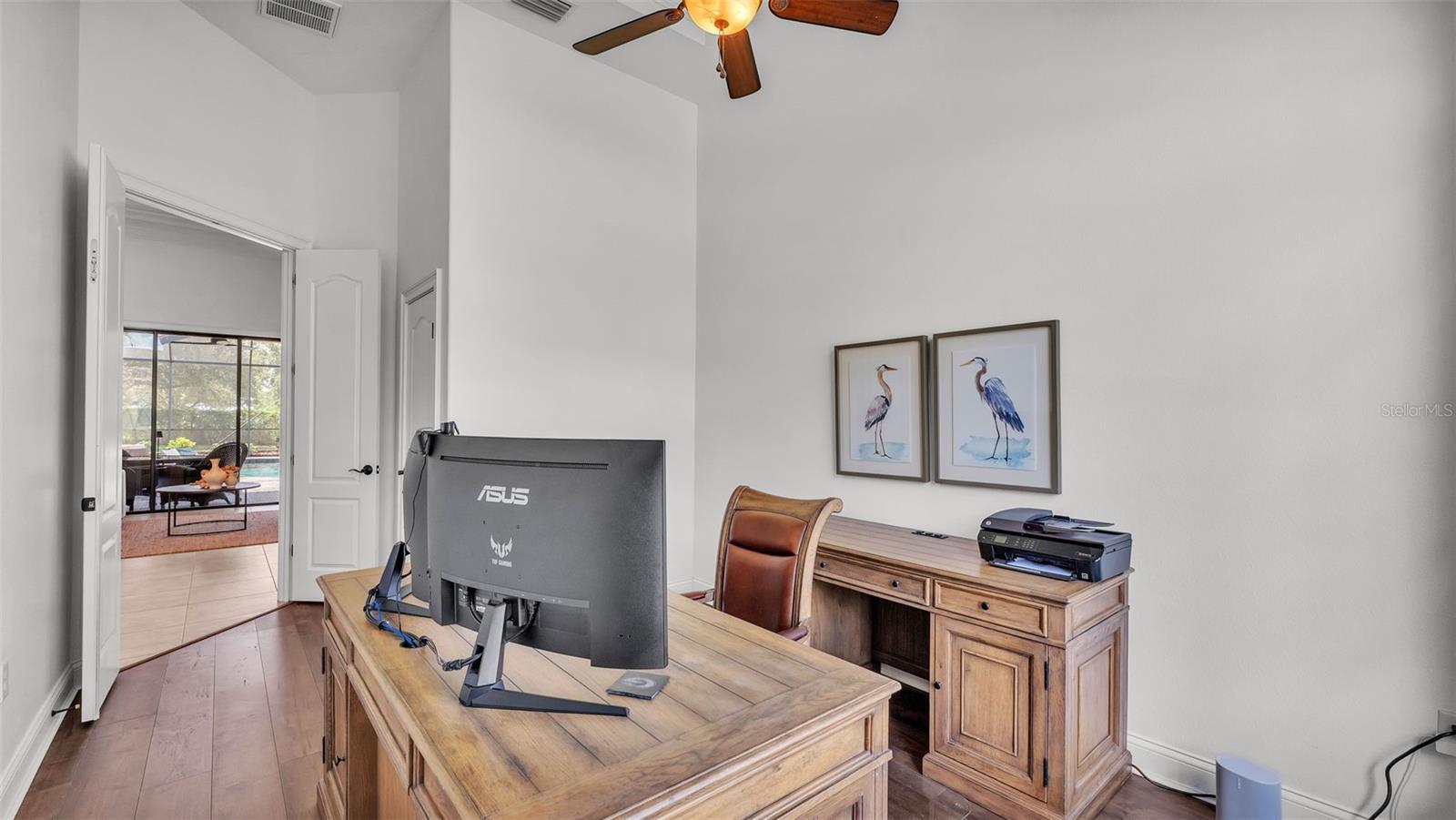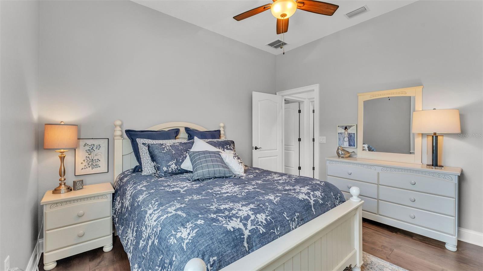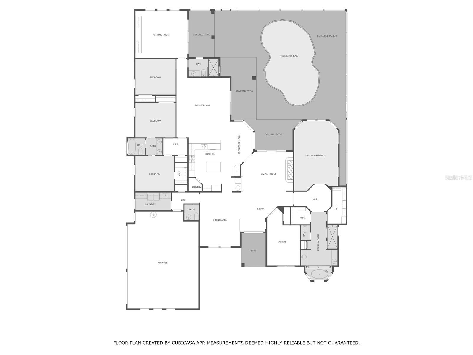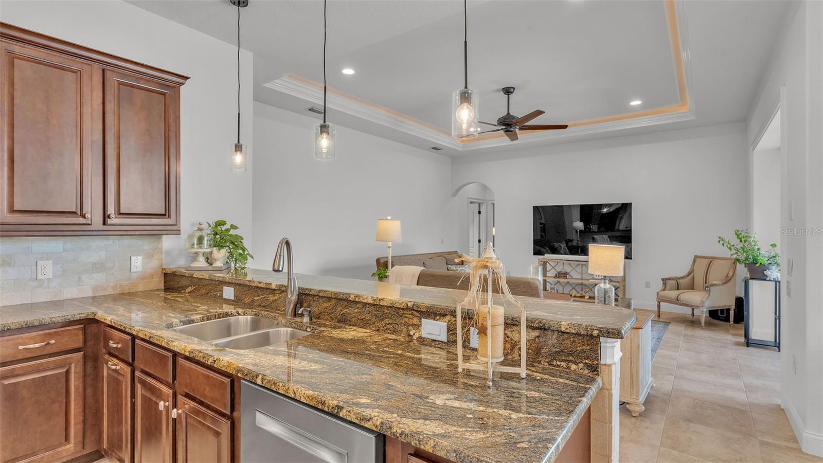 Welcome to 6572 Eagle View Loop, a stunning Mediterranean-style estate nestled in the heart of The Preserve at Eaglebrooke North, one of Lakeland's most sought after 24-hour guarded and gated Country Club communities. This impeccably maintained 5-bedroom, 3.5-bathroom custom home spans 3,546 square feet of refined single-level living and sits on an expansive 0.34-acre lot. Built by award-winning Hulbert Homes, this residence offers the perfect blend of elegance, comfort, and modern convenience. A grand barrel tile roof, paver driveway, and elegant eight-foot double front doors set the stage for the luxury found within. Step inside to discover a freshly repainted interior (August 2025) and rich hardwood flooring added in 2023, complemented by sleek tile throughout the wet and common areas. Every detail is carefully curated from the custom closets by Closets by Design to the classic Florida Plantation Shutters gracing the windows. The gourmet kitchen is the heart of the home, featuring custom wood cabinetry, granite countertops, stainless steel appliances, and a spacious island. A built-in double oven, gas cooktop with decorative hood, and microwave make culinary endeavors a delight, while the breakfast bar comfortably seats four. The adjacent wet bar with a built-in icemaker is perfect for entertaining guests. The living room is anchored by a stunning stone-accented gas fireplace, offering a warm and inviting space to gather. This home also includes a private study and a versatile bonus/theatre room, designed to fit your lifestyle needs. The primary suite is a true retreat, showcasing a spacious bedroom with custom closets and an opulent en-suite bathroom featuring granite counters, abundant cabinetry, a walk-in shower, and eye-catching decorative mirrors. Step into your outdoor paradise with an expansive screen-enclosed lanai with paver flooring, recently refreshed in 2024 with new screening, tie-downs, and three new outdoor fans in 2025. Enjoy Florida's year-round sunshine by the beach entry pool, a resort-style feature with a gradual, walk-in slope that mimics the shoreline of a tropical beach. This luxurious pool is enhanced with a sun shelf, soothing fountains, and two built-in seating areas for ultimate relaxation. A tranquil waterfall completes this private backyard oasis. Notable upgrades include a full-home Generac 26kW generator (2024), water softener and reverse osmosis system (2023), and a Bosch 800 dishwasher (2023). The pool pump, salt system, and valves were also updated in 2023, ensuring peak performance. Two brand-new AC systems were installed in August 2025 for optimal climate control year-round. Additional features include a beautifully landscaped Zoysia lawn with upgraded outdoor lighting (2024), and a new ice machine added in 2025 for everyday convenience. The oversized three-car garage offers plenty of space for vehicles and storage, while the meticulously serviced irrigation system keeps the grounds lush and vibrant. Residents of Eaglebrooke enjoy access to a 4 1/2-Star Championship Golf Course, Junior Olympic swimming pool, tennis, pickleball courts, and a clubhouse with formal dining, sports bar, event space, and a fully stocked pro shop, all with available membership options. Luxury, comfort, and resort-style living await you at 6572 Eagle View Loop where every detail has been thoughtfully crafted for the most discerning homeowner.