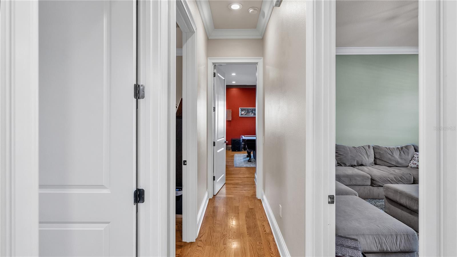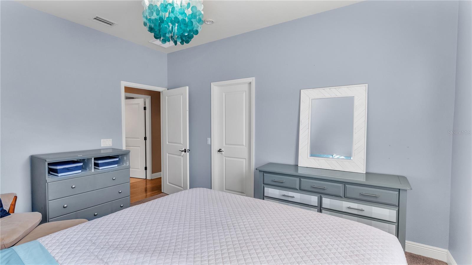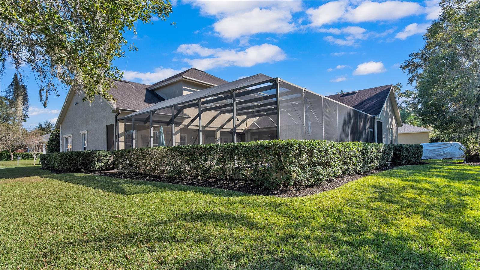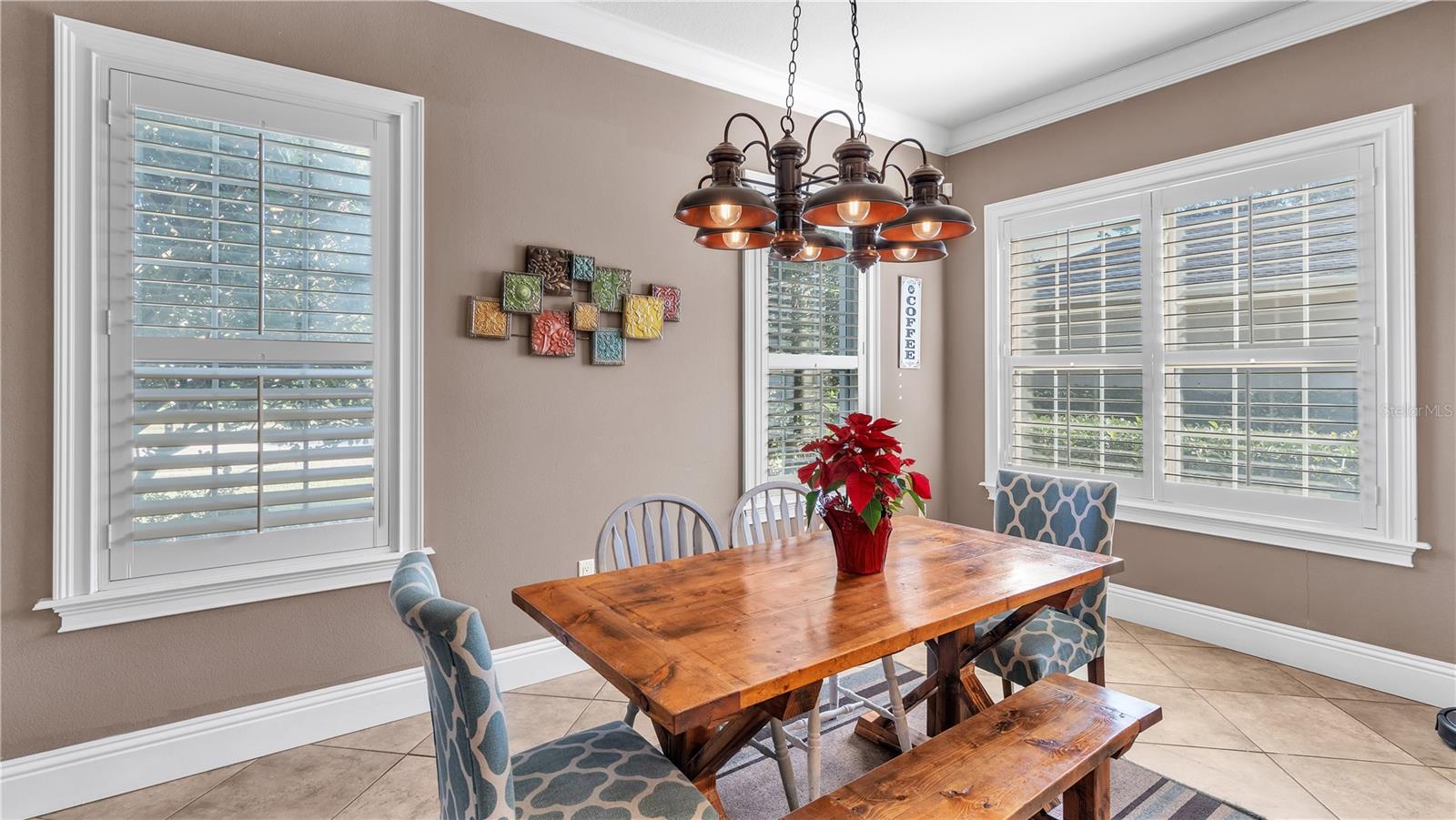 In the charming community of Crescent Woods, this inviting home boasts a thoughtful layout, effortlessly distributing bedrooms between upper and lower levels. As you step inside, a casual elegance embraces the space, creating an atmosphere perfect for envisioning gatherings and crafting cherished moments. The interconnected formal rooms showcase tasteful trim work, setting the scene for relaxed social occasions. The kitchen, a practical dream, features granite countertops, stainless steel appliances, custom cabinets, a walk-in pantry, and a delightful breakfast bar, all bathed in natural light. Additional spaces, including a billiards room with a wet bar, a den, and an office, provide versatile options for daily living. The family room becomes a comfortable hub, featuring built-ins, ample natural light, and a gas fireplace that adds warmth and charm. Flowing seamlessly to the screened pool area, this outdoor retreat includes a covered lanai, an outdoor kitchen, and a heated pool, creating an ideal setting for laid-back entertaining. The spacious Master Suite, positioned on the second floor, boasts a California Closet walk-in dressing room, a well-appointed bath with dual sinks, a garden tub, and an indulgent walk-in shower. Upstairs, three bedrooms each enjoy walk-in California closets and access to two additional bathrooms. With over 4,500 sqft, this residence provides ample space for comfortable living. The 3-car garage, with its generous dimensions, is thoughtfully organized with California Closets and conveniently connects to a mudroom and a roomy laundry area. Nestled in a friendly South Lakeland gated neighborhood, this home falls within a sought-after school zone. Throughout the home, the inclusion of tasteful plantation shutters, upgraded lighting fixtures, and graceful chandeliers adds a touch of refinement to the comfortable living space. French doors from the living area extend to the back lanai, completing the harmonious indoor-outdoor experience and infusing the home with an enduring sense of timeless elegance.