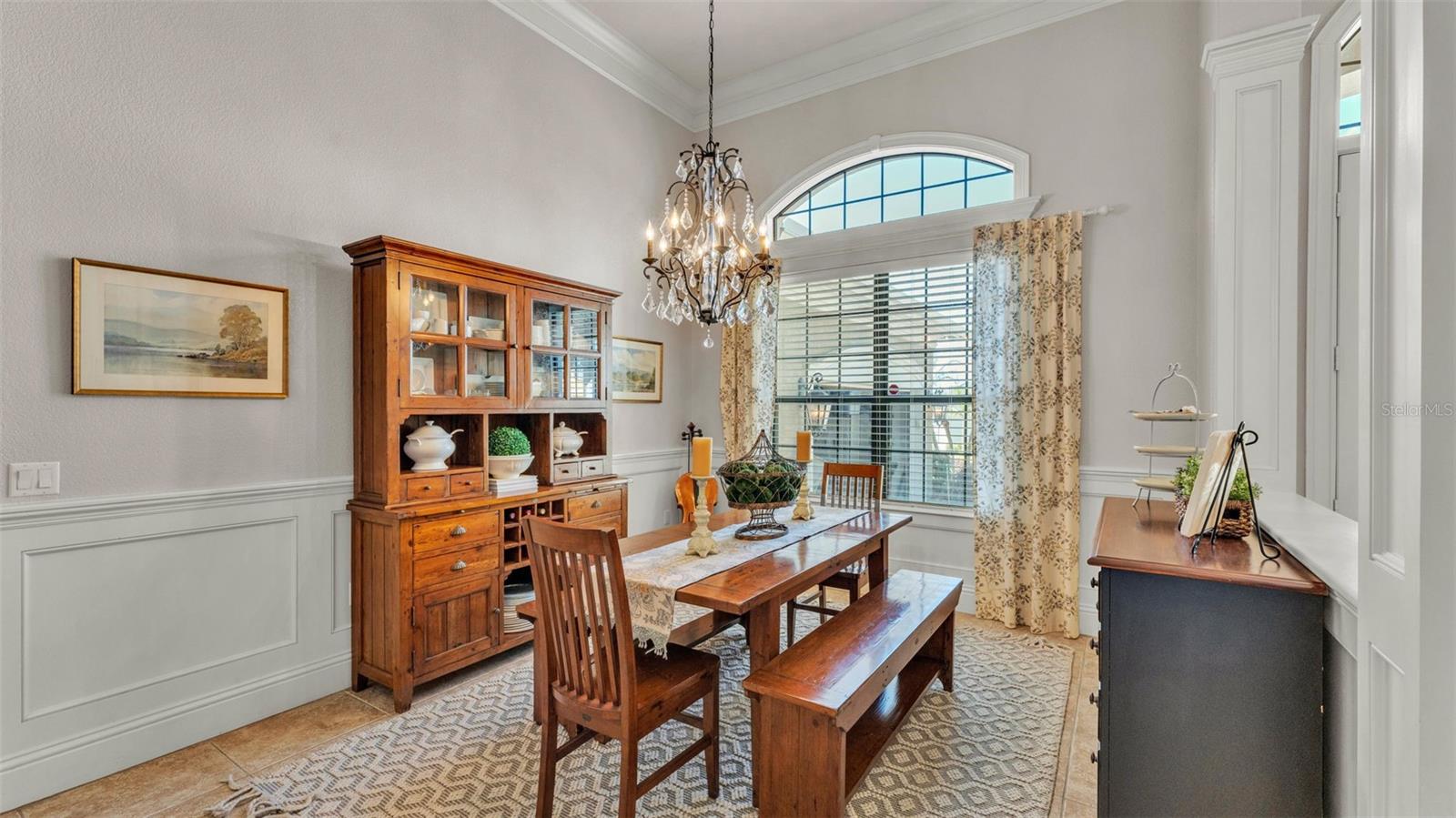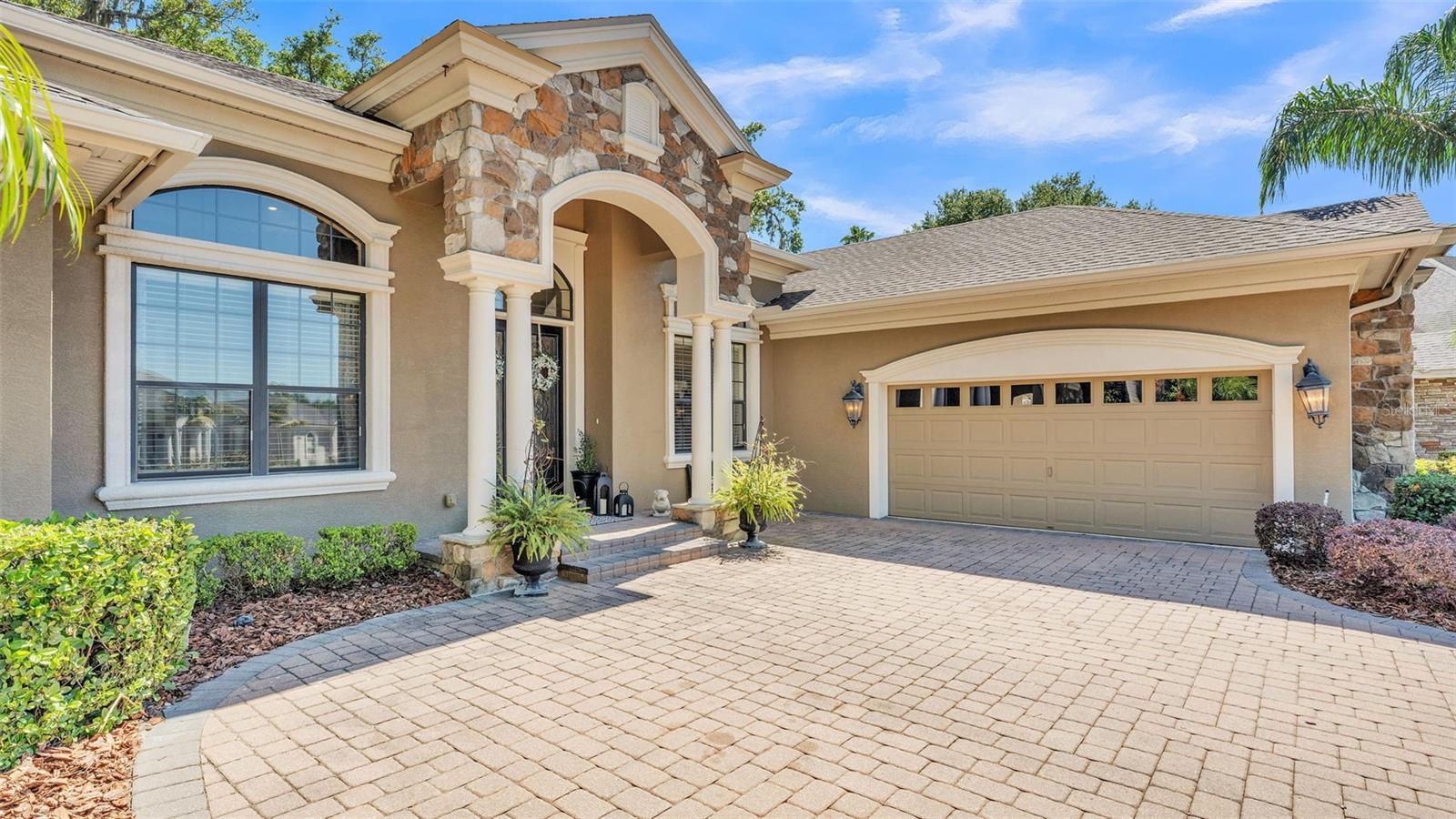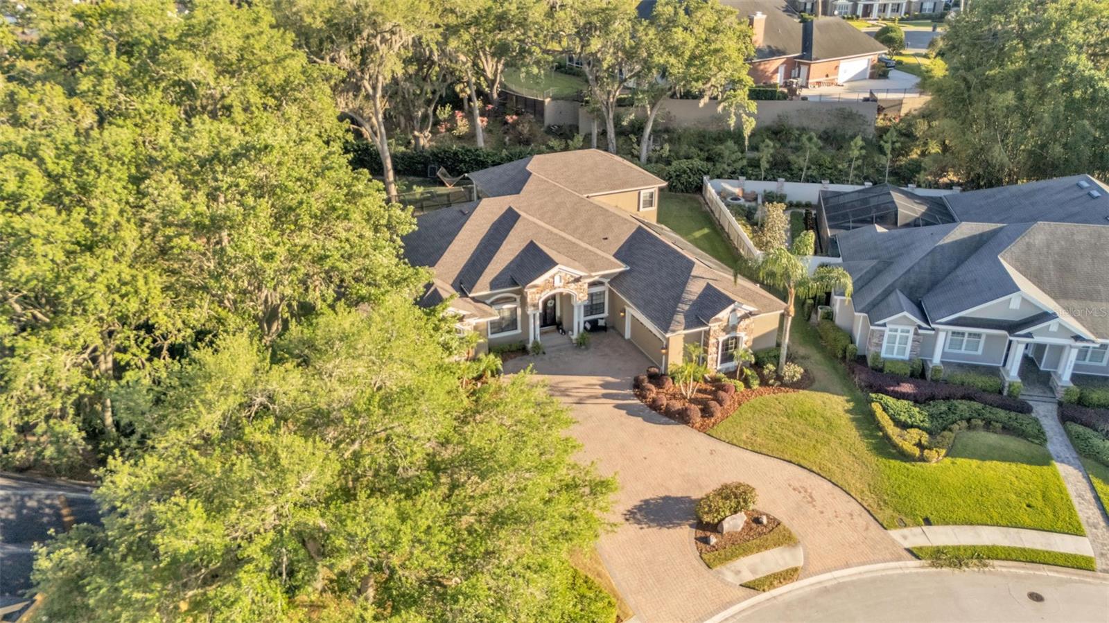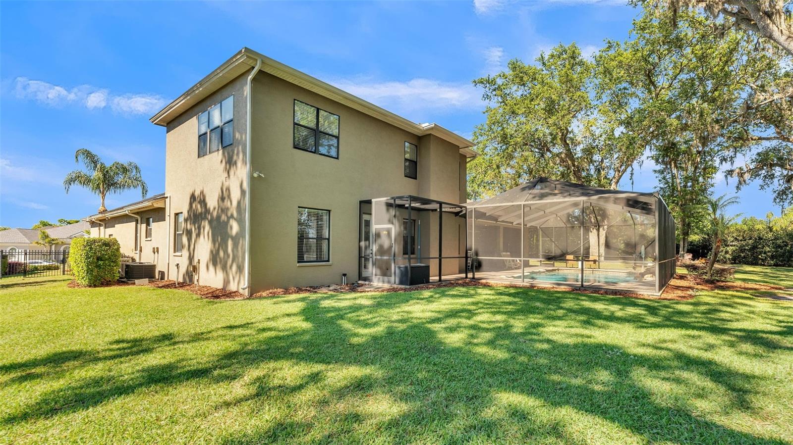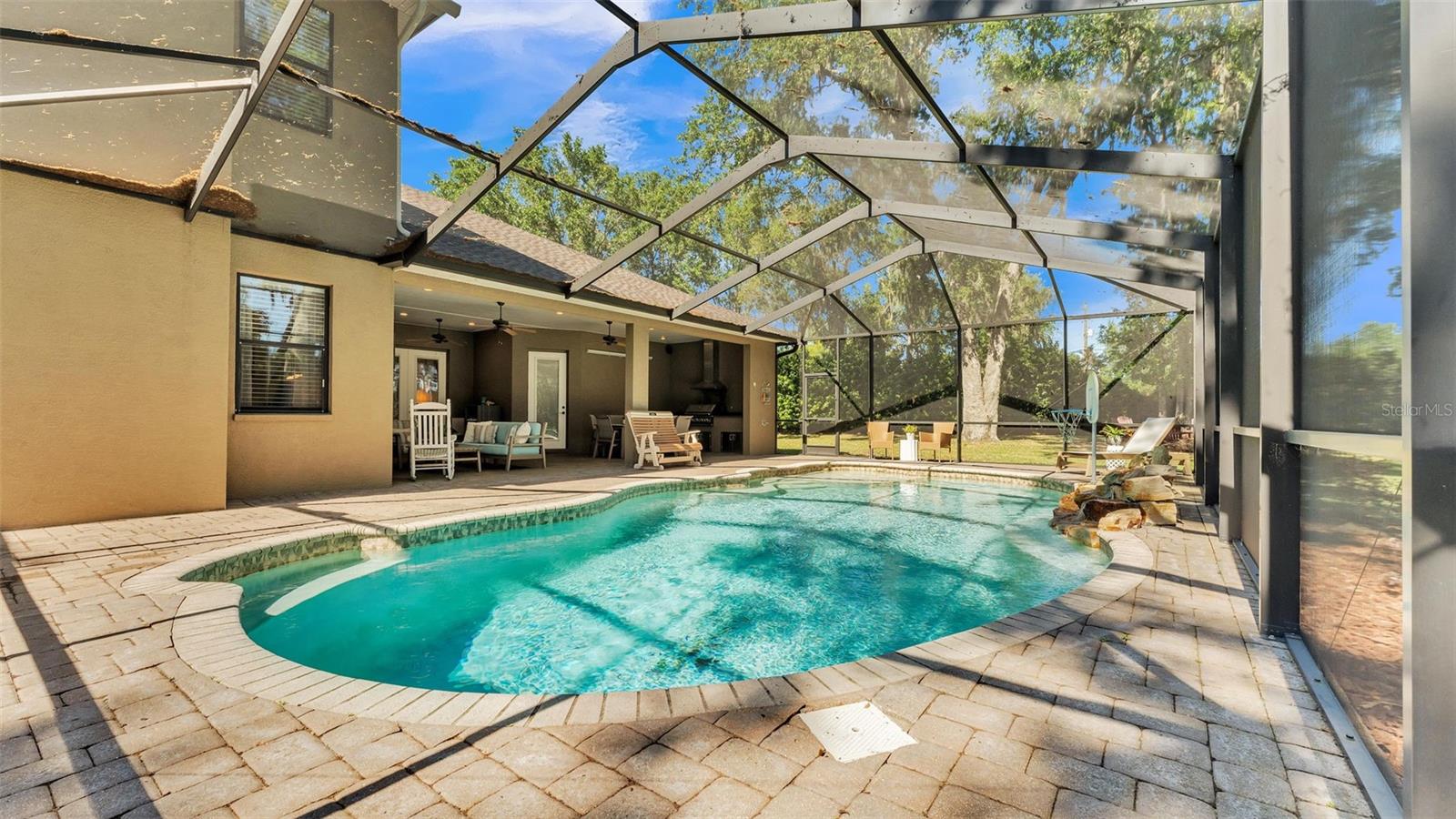 Welcome to 6774 Crescent Woods Circle, a stunning estate located in the exclusive, gated community of Crescent Woods in South Lakeland. This coveted neighborhood, consisting of only 48 homes, offers a rare level of privacy and luxury. Situated on a spacious .60-acre lot, this expansive residence spans over 6,000 square feet under roof and features five bedrooms, four bathrooms, and a dedicated office with French doors that open to the grand great room, allowing an abundance of natural light to flood the space. Built in 2008 by the renowned Strawbridge Homes, known for their exceptional craftsmanship, this home exudes elegance at every turn. Upon entering, you are greeted by soaring 15-foot ceilings and a series of custom-built features that elevate its stunning appeal. The open floor plan is complemented by crown molding throughout, double-pane windows, and foam-insulated exterior walls that ensure both comfort and energy efficiency. The gourmet kitchen, a true centerpiece of the home, overlooks the living area and features built-in cabinetry, high-end appliances, and large windows offering breathtaking views of the private, screened-in solar-heated pool. The luxurious primary suite provides a tranquil retreat, complete with direct access to the lanai, a tray ceiling, and ample space for relaxation. The en-suite bathroom is an oasis in itself, featuring dual vanities, a seated vanity area, a tiled step-in shower, and two spacious walk-in closets. Upstairs, a charming living area awaits, complete with its own full-size bathroom, walk-in closet, and custom-built storage, offering the perfect space for guests or additional family members. The resort-style backyard is truly an entertainer's paradise, with mature landscaping and an expansive circular paver driveway leading to a two-car garage on the right and a single-vehicle garage on the left. The fenced-in backyard offers complete privacy and serenity, surrounded by towering trees that create a peaceful retreat. The solar-heated, screen-enclosed pool, with a waterfall feature and 8-foot depth, provides the ultimate place to unwind or host guests, complemented by a large pavered patio and a fully-equipped custom outdoor kitchen. This exceptional home is perfectly situated on a corner lot, offering both space and an ideal location near excellent schools such as Scott Lake Elementary, Valleyview Elementary, and Highlands Grove Elementary, as well as Lakeland Highlands Middle School and George Jenkins High School. The best of South Lakeland's shopping, dining, and amenities are just minutes away. With a roof replacement completed in December 2024, a new pool pump in 2024 and a tankless hot water heater installed in 2024, this home is ready for years of enjoyment. Don't miss the opportunity to experience this exquisite residence. Schedule your tour today and discover the perfect blend of luxury, comfort, and style.