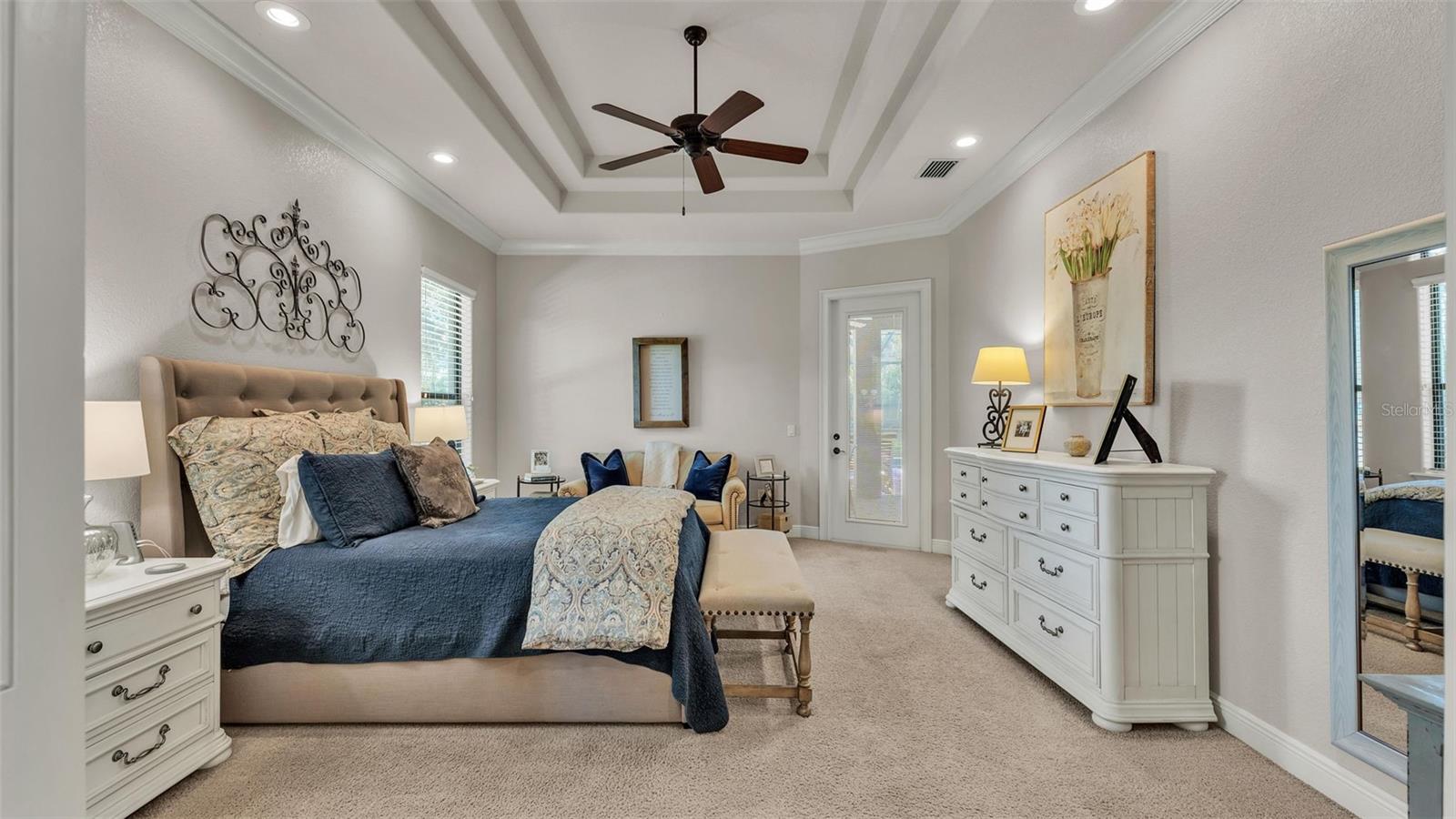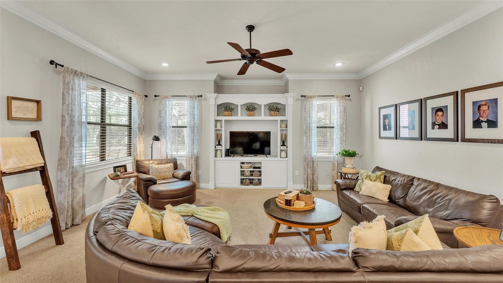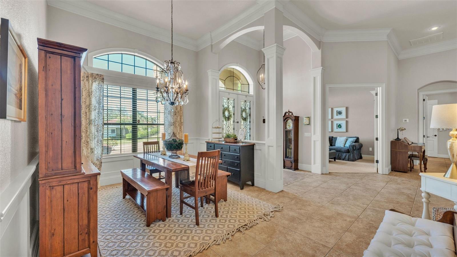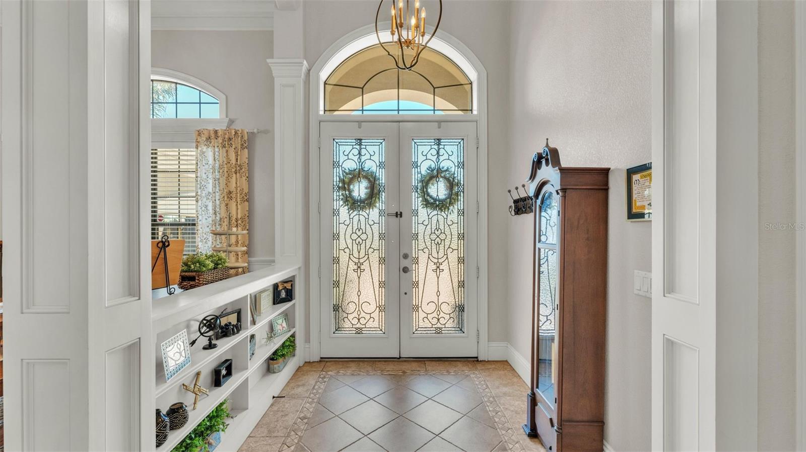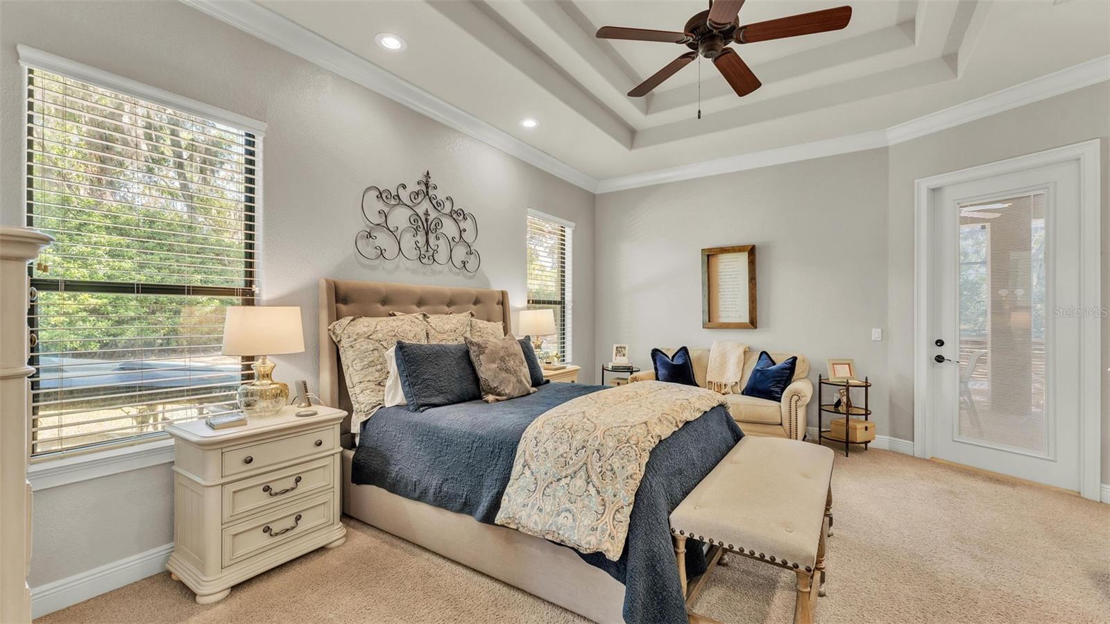 Welcome to 6774 Crescent Woods Circle, a stunning estate located in the exclusive, gated community of Crescent Woods in South Lakeland. This coveted neighborhood, consisting of only 48 homes, offers a rare level of privacy and luxury. Situated on a spacious .60-acre lot, this expansive residence spans over 6,000 square feet under roof and features five bedrooms, four bathrooms, and a dedicated office with French doors that open to the grand great room, allowing an abundance of natural light to flood the space. Built in 2008 by the renowned Strawbridge Homes, known for their exceptional craftsmanship, this home exudes elegance at every turn. Upon entering, you are greeted by soaring 15-foot ceilings and a series of custom-built features that elevate its stunning appeal. The open floor plan is complemented by crown molding throughout, double-pane windows, and foam-insulated exterior walls that ensure both comfort and energy efficiency. The gourmet kitchen, a true centerpiece of the home, overlooks the living area and features built-in cabinetry, high-end appliances, and large windows offering breathtaking views of the private, screened-in solar-heated pool. The luxurious primary suite provides a tranquil retreat, complete with direct access to the lanai, a tray ceiling, and ample space for relaxation. The en-suite bathroom is an oasis in itself, featuring dual vanities, a seated vanity area, a tiled step-in shower, and two spacious walk-in closets. Upstairs, a charming living area awaits, complete with its own full-size bathroom, walk-in closet, and custom-built storage, offering the perfect space for guests or additional family members. The resort-style backyard is truly an entertainer's paradise, with mature landscaping and an expansive circular paver driveway leading to a two-car garage on the right and a single-vehicle garage on the left. The fenced-in backyard offers complete privacy and serenity, surrounded by towering trees that create a peaceful retreat. The solar-heated, screen-enclosed pool, with a waterfall feature and 8-foot depth, provides the ultimate place to unwind or host guests, complemented by a large pavered patio and a fully-equipped custom outdoor kitchen. This exceptional home is perfectly situated on a corner lot, offering both space and an ideal location near excellent schools such as Scott Lake Elementary, Valleyview Elementary, and Highlands Grove Elementary, as well as Lakeland Highlands Middle School and George Jenkins High School. The best of South Lakeland's shopping, dining, and amenities are just minutes away. With a roof replacement completed in December 2024, a new pool pump in 2024 and a tankless hot water heater installed in 2024, this home is ready for years of enjoyment. Don't miss the opportunity to experience this exquisite residence. Schedule your tour today and discover the perfect blend of luxury, comfort, and style.