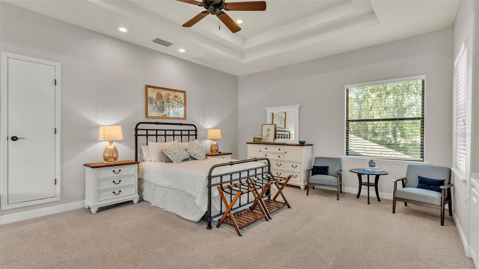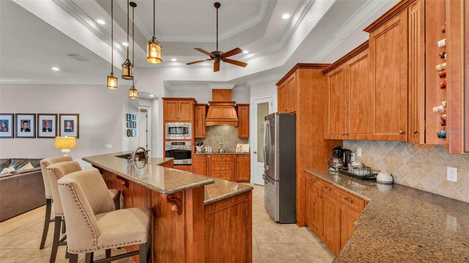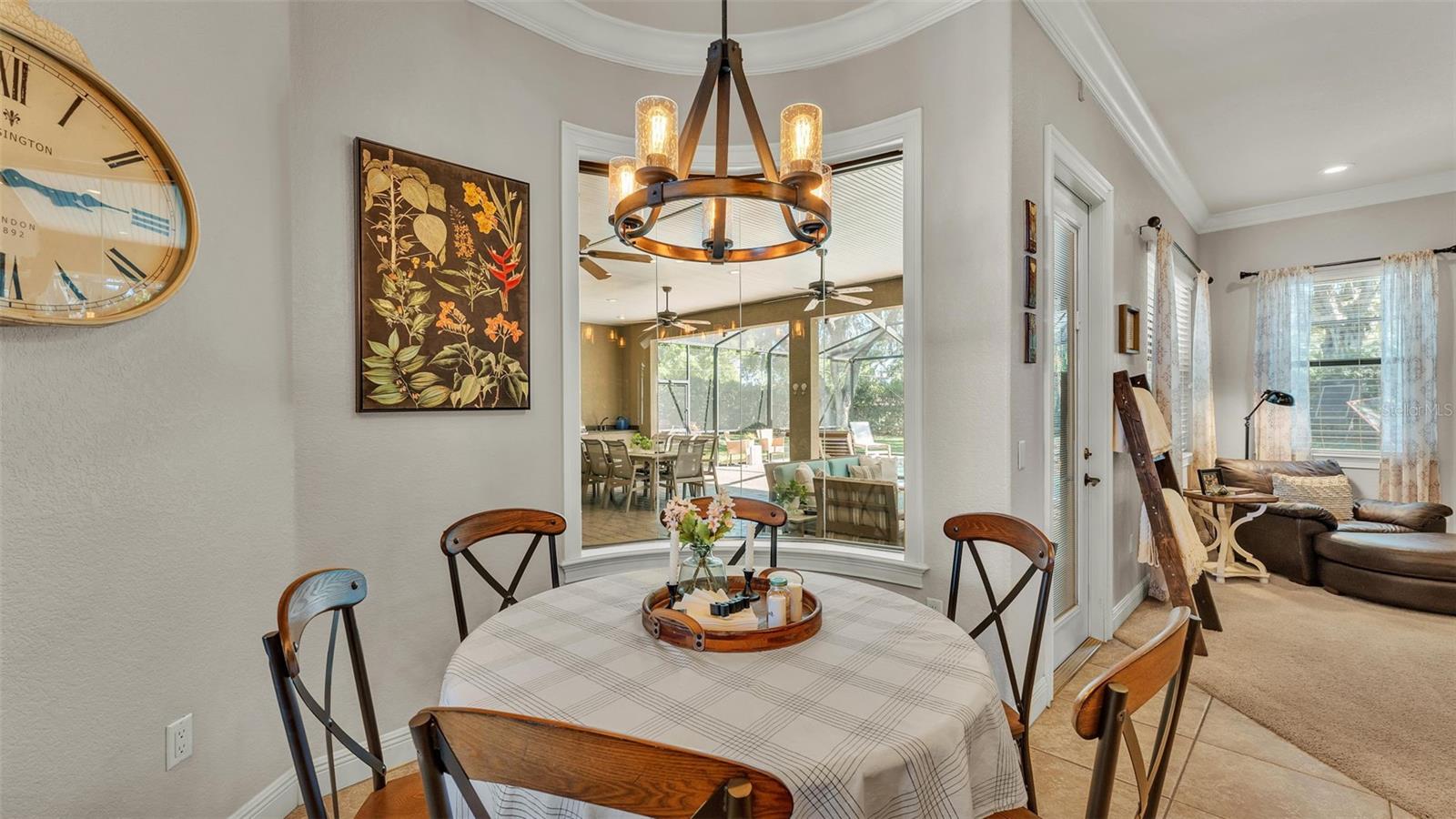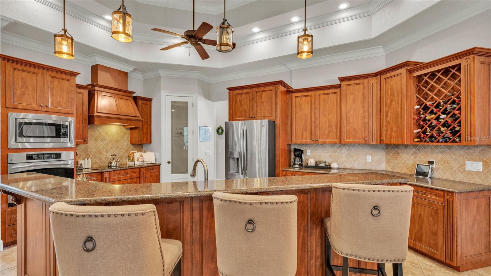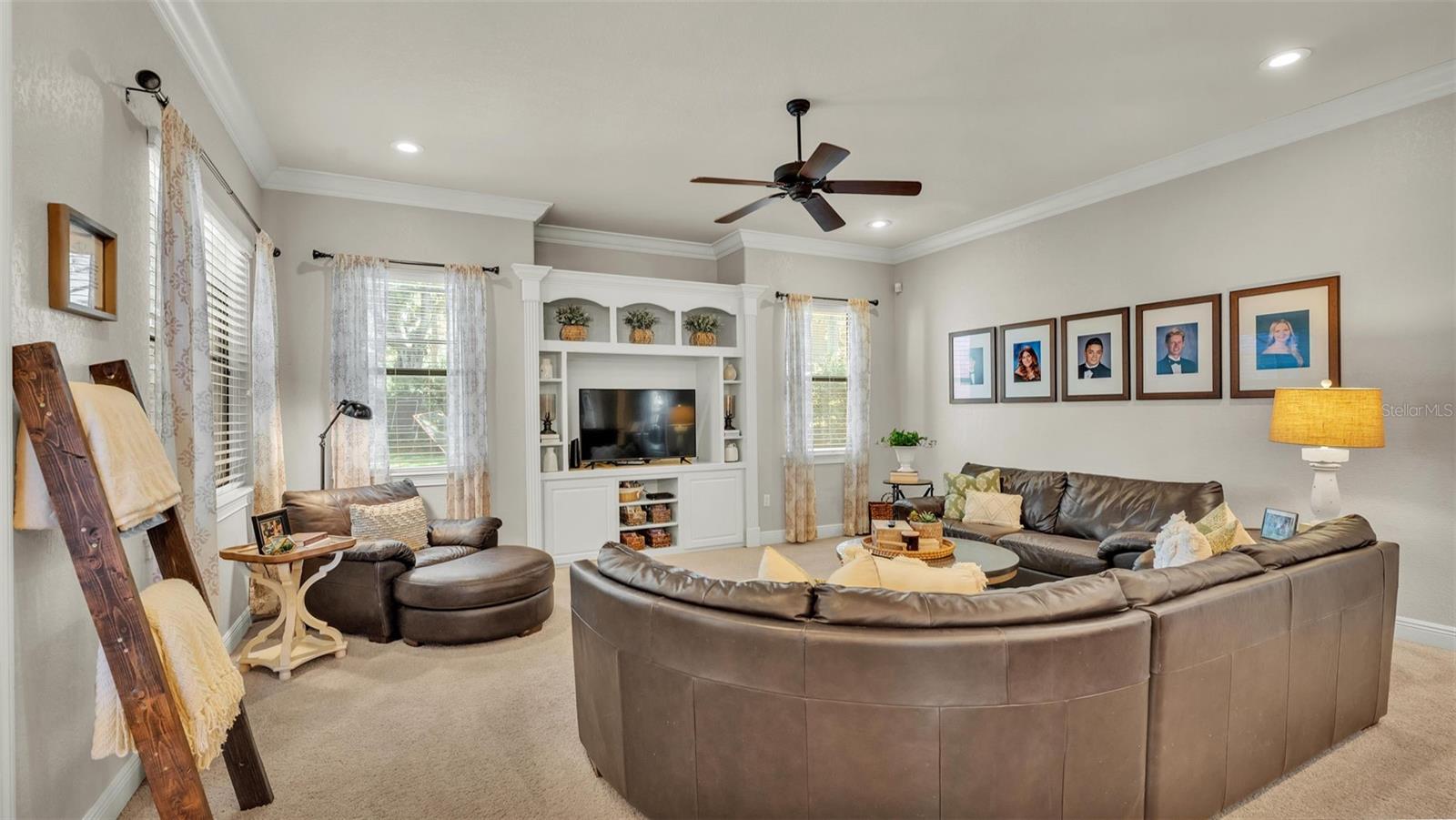 Welcome to 6774 Crescent Woods Circle, a stunning estate located in the exclusive, gated community of Crescent Woods in South Lakeland. This coveted neighborhood, consisting of only 48 homes, offers a rare level of privacy and luxury. Situated on a spacious .60-acre lot, this expansive residence spans over 6,000 square feet under roof and features five bedrooms, four bathrooms, and a dedicated office with French doors that open to the grand great room, allowing an abundance of natural light to flood the space. Built in 2008 by the renowned Strawbridge Homes, known for their exceptional craftsmanship, this home exudes elegance at every turn. Upon entering, you are greeted by soaring 15-foot ceilings and a series of custom-built features that elevate its stunning appeal. The open floor plan is complemented by crown molding throughout, double-pane windows, and foam-insulated exterior walls that ensure both comfort and energy efficiency. The gourmet kitchen, a true centerpiece of the home, overlooks the living area and features built-in cabinetry, high-end appliances, and large windows offering breathtaking views of the private, screened-in solar-heated pool. The luxurious primary suite provides a tranquil retreat, complete with direct access to the lanai, a tray ceiling, and ample space for relaxation. The en-suite bathroom is an oasis in itself, featuring dual vanities, a seated vanity area, a tiled step-in shower, and two spacious walk-in closets. Upstairs, a charming living area awaits, complete with its own full-size bathroom, walk-in closet, and custom-built storage, offering the perfect space for guests or additional family members. The resort-style backyard is truly an entertainer's paradise, with mature landscaping and an expansive circular paver driveway leading to a two-car garage on the right and a single-vehicle garage on the left. The fenced-in backyard offers complete privacy and serenity, surrounded by towering trees that create a peaceful retreat. The solar-heated, screen-enclosed pool, with a waterfall feature and 8-foot depth, provides the ultimate place to unwind or host guests, complemented by a large pavered patio and a fully-equipped custom outdoor kitchen. This exceptional home is perfectly situated on a corner lot, offering both space and an ideal location near excellent schools such as Scott Lake Elementary, Valleyview Elementary, and Highlands Grove Elementary, as well as Lakeland Highlands Middle School and George Jenkins High School. The best of South Lakeland's shopping, dining, and amenities are just minutes away. With a roof replacement completed in December 2024, a new pool pump in 2024 and a tankless hot water heater installed in 2024, this home is ready for years of enjoyment. Don't miss the opportunity to experience this exquisite residence. Schedule your tour today and discover the perfect blend of luxury, comfort, and style.
