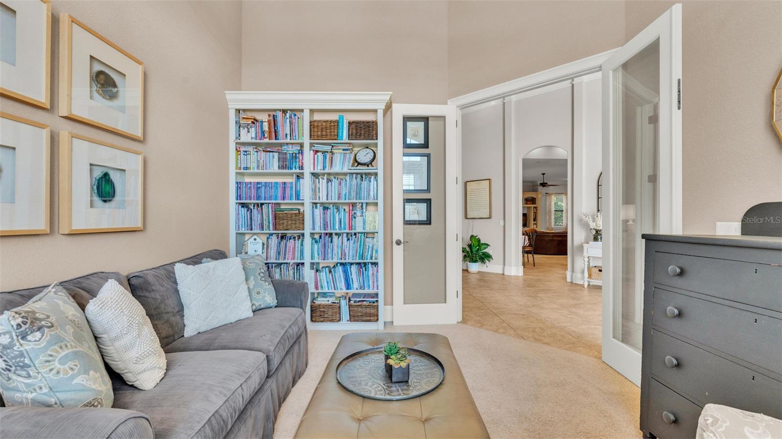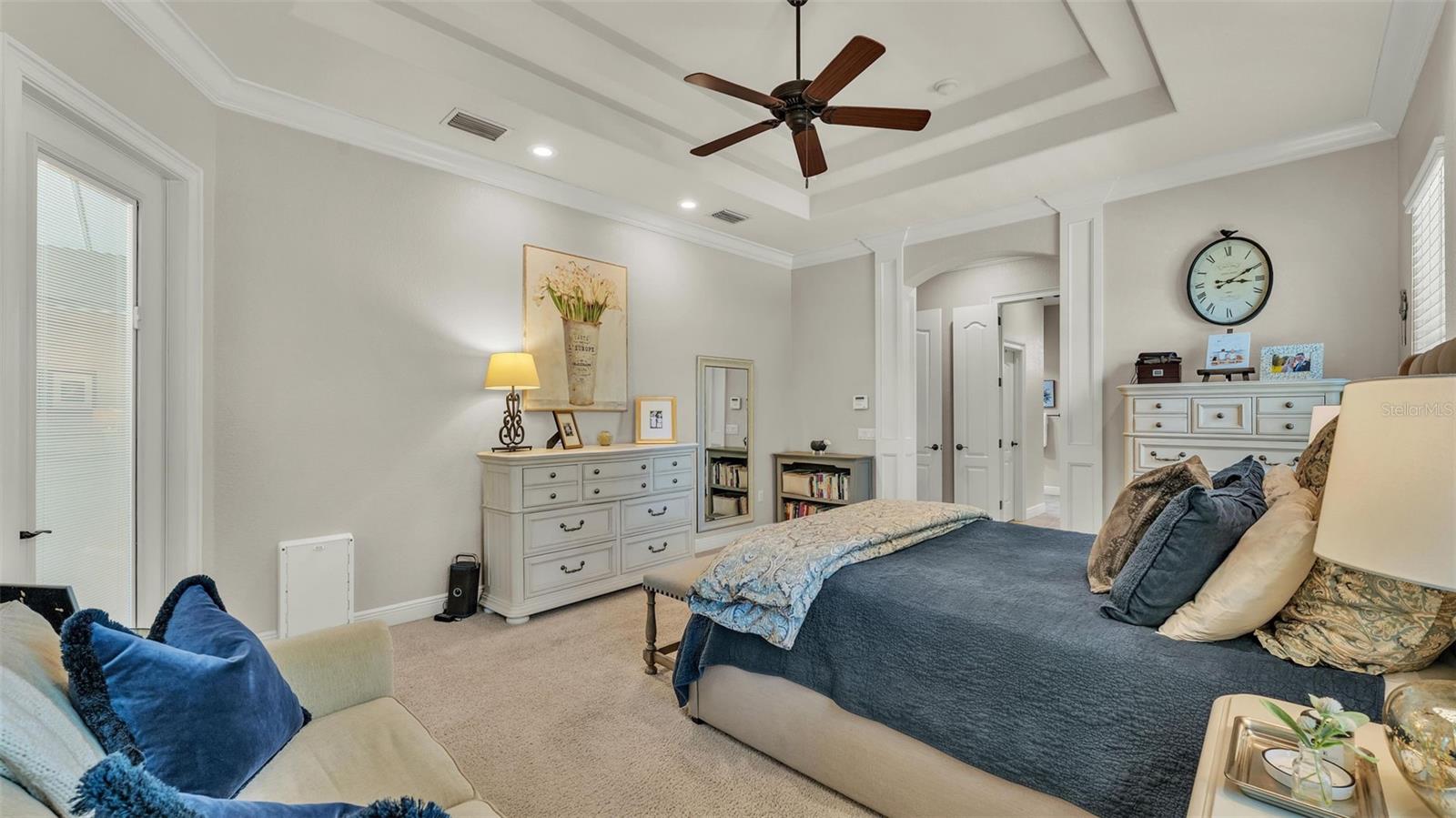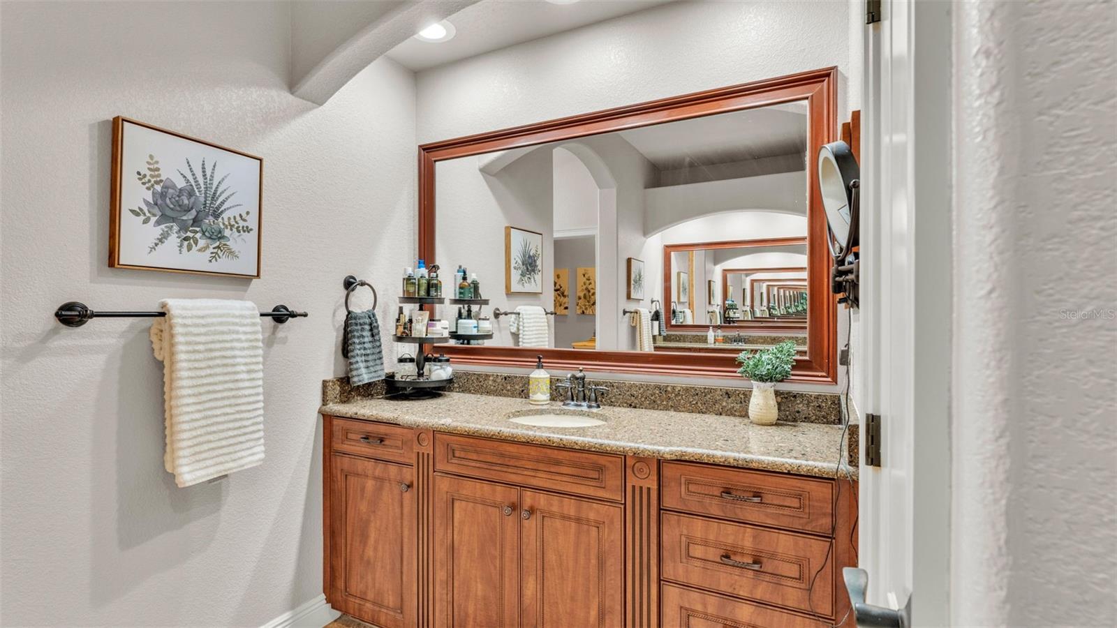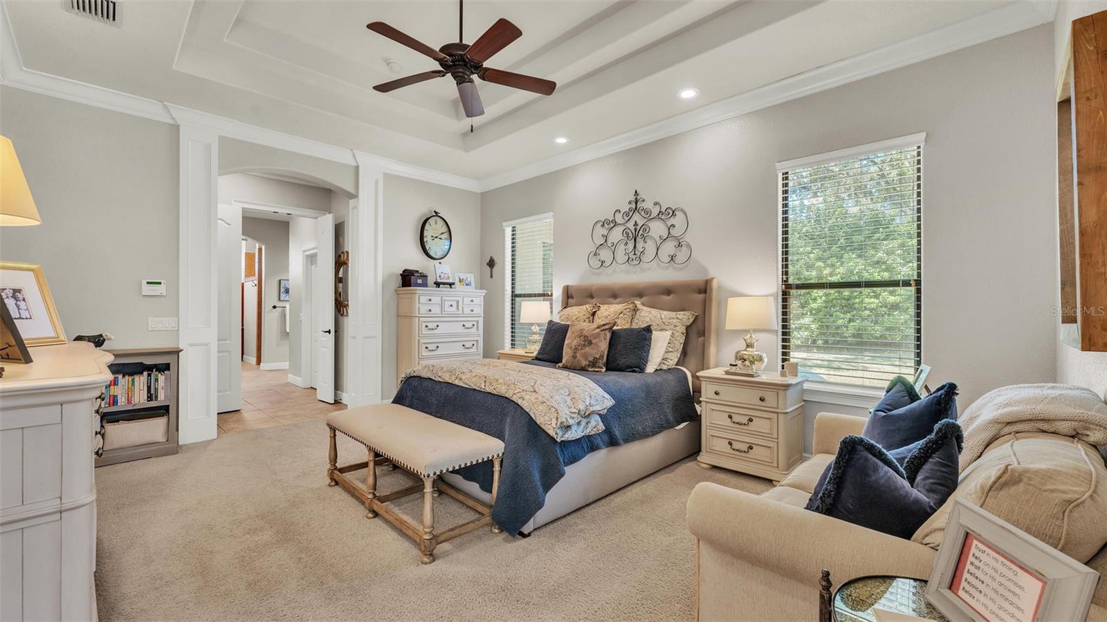 Welcome to 6774 Crescent Woods Circle, a stunning estate located in the exclusive, gated community of Crescent Woods in South Lakeland. This coveted neighborhood, consisting of only 48 homes, offers a rare level of privacy and luxury. Situated on a spacious .60-acre lot, this expansive residence spans over 6,000 square feet under roof and features five bedrooms, four bathrooms, and a dedicated office with French doors that open to the grand great room, allowing an abundance of natural light to flood the space. Built in 2008 by the renowned Strawbridge Homes, known for their exceptional craftsmanship, this home exudes elegance at every turn. Upon entering, you are greeted by soaring 15-foot ceilings and a series of custom-built features that elevate its stunning appeal. The open floor plan is complemented by crown molding throughout, double-pane windows, and foam-insulated exterior walls that ensure both comfort and energy efficiency. The gourmet kitchen, a true centerpiece of the home, overlooks the living area and features built-in cabinetry, high-end appliances, and large windows offering breathtaking views of the private, screened-in solar-heated pool. The luxurious primary suite provides a tranquil retreat, complete with direct access to the lanai, a tray ceiling, and ample space for relaxation. The en-suite bathroom is an oasis in itself, featuring dual vanities, a seated vanity area, a tiled step-in shower, and two spacious walk-in closets. Upstairs, a charming living area awaits, complete with its own full-size bathroom, walk-in closet, and custom-built storage, offering the perfect space for guests or additional family members. The resort-style backyard is truly an entertainer's paradise, with mature landscaping and an expansive circular paver driveway leading to a two-car garage on the right and a single-vehicle garage on the left. The fenced-in backyard offers complete privacy and serenity, surrounded by towering trees that create a peaceful retreat. The solar-heated, screen-enclosed pool, with a waterfall feature and 8-foot depth, provides the ultimate place to unwind or host guests, complemented by a large pavered patio and a fully-equipped custom outdoor kitchen. This exceptional home is perfectly situated on a corner lot, offering both space and an ideal location near excellent schools such as Scott Lake Elementary, Valleyview Elementary, and Highlands Grove Elementary, as well as Lakeland Highlands Middle School and George Jenkins High School. The best of South Lakeland's shopping, dining, and amenities are just minutes away. With a roof replacement completed in December 2024, a new pool pump in 2024 and a tankless hot water heater installed in 2024, this home is ready for years of enjoyment. Don't miss the opportunity to experience this exquisite residence. Schedule your tour today and discover the perfect blend of luxury, comfort, and style.