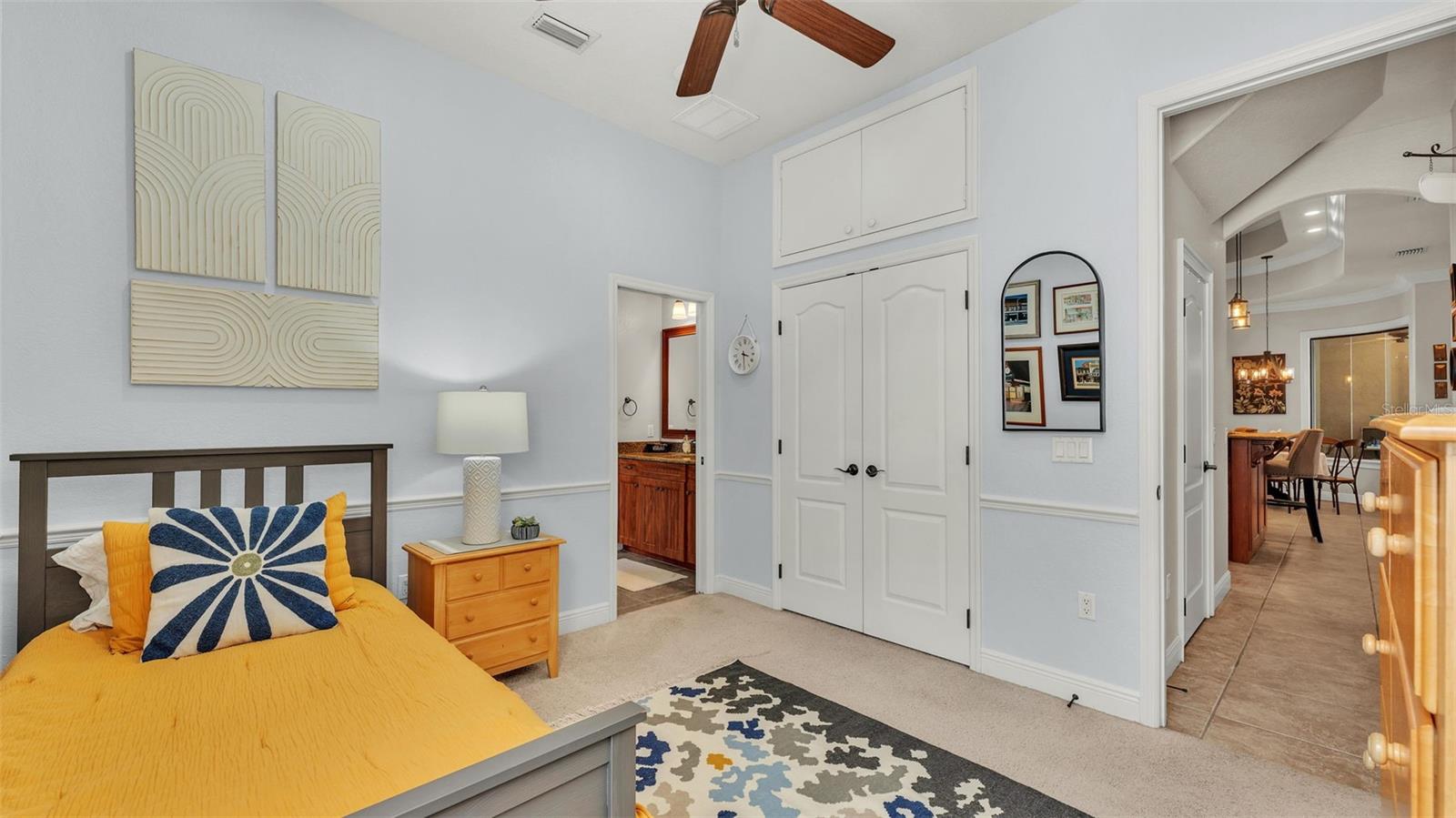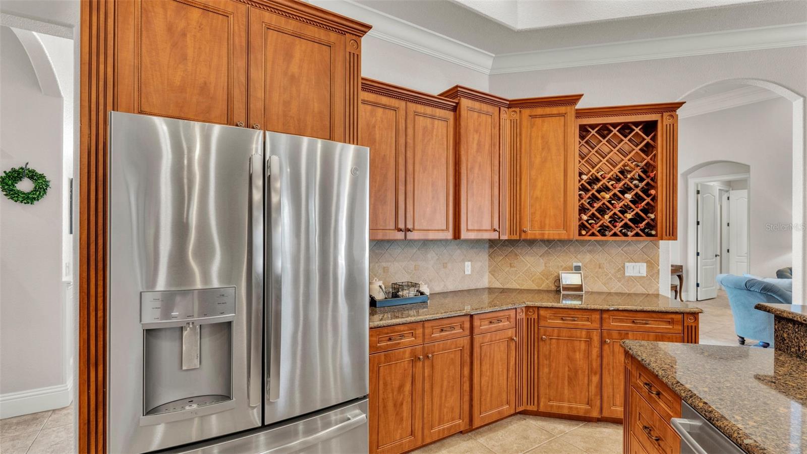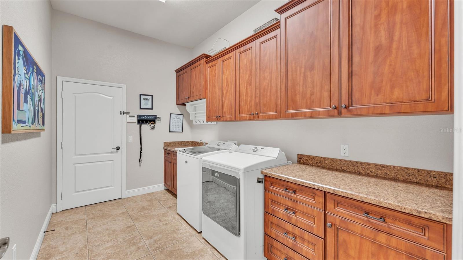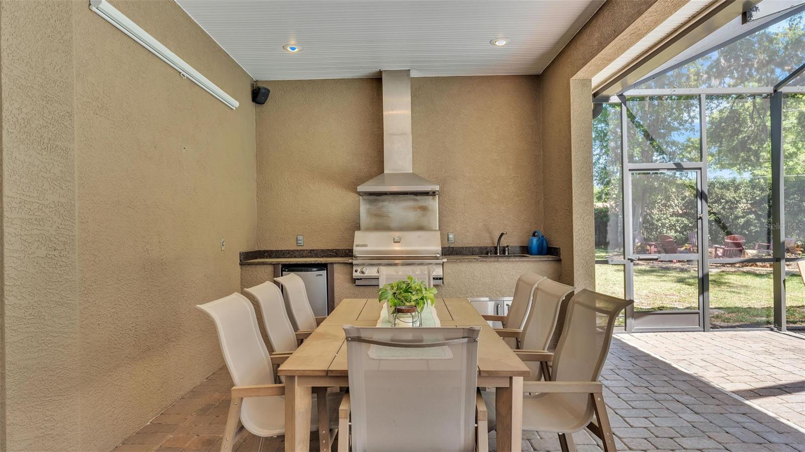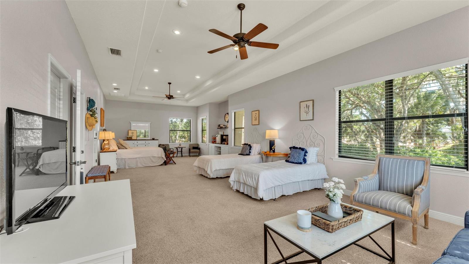 Welcome to 6774 Crescent Woods Circle, a stunning estate located in the exclusive, gated community of Crescent Woods in South Lakeland. This coveted neighborhood, consisting of only 48 homes, offers a rare level of privacy and luxury. Situated on a spacious .60-acre lot, this expansive residence spans over 6,000 square feet under roof and features five bedrooms, four bathrooms, and a dedicated office with French doors that open to the grand great room, allowing an abundance of natural light to flood the space. Built in 2008 by the renowned Strawbridge Homes, known for their exceptional craftsmanship, this home exudes elegance at every turn. Upon entering, you are greeted by soaring 15-foot ceilings and a series of custom-built features that elevate its stunning appeal. The open floor plan is complemented by crown molding throughout, double-pane windows, and foam-insulated exterior walls that ensure both comfort and energy efficiency. The gourmet kitchen, a true centerpiece of the home, overlooks the living area and features built-in cabinetry, high-end appliances, and large windows offering breathtaking views of the private, screened-in solar-heated pool. The luxurious primary suite provides a tranquil retreat, complete with direct access to the lanai, a tray ceiling, and ample space for relaxation. The en-suite bathroom is an oasis in itself, featuring dual vanities, a seated vanity area, a tiled step-in shower, and two spacious walk-in closets. Upstairs, a charming living area awaits, complete with its own full-size bathroom, walk-in closet, and custom-built storage, offering the perfect space for guests or additional family members. The resort-style backyard is truly an entertainer's paradise, with mature landscaping and an expansive circular paver driveway leading to a two-car garage on the right and a single-vehicle garage on the left. The fenced-in backyard offers complete privacy and serenity, surrounded by towering trees that create a peaceful retreat. The solar-heated, screen-enclosed pool, with a waterfall feature and 8-foot depth, provides the ultimate place to unwind or host guests, complemented by a large pavered patio and a fully-equipped custom outdoor kitchen. This exceptional home is perfectly situated on a corner lot, offering both space and an ideal location near excellent schools such as Scott Lake Elementary, Valleyview Elementary, and Highlands Grove Elementary, as well as Lakeland Highlands Middle School and George Jenkins High School. The best of South Lakeland's shopping, dining, and amenities are just minutes away. With a roof replacement completed in December 2024, a new pool pump in 2024 and a tankless hot water heater installed in 2024, this home is ready for years of enjoyment. Don't miss the opportunity to experience this exquisite residence. Schedule your tour today and discover the perfect blend of luxury, comfort, and style.