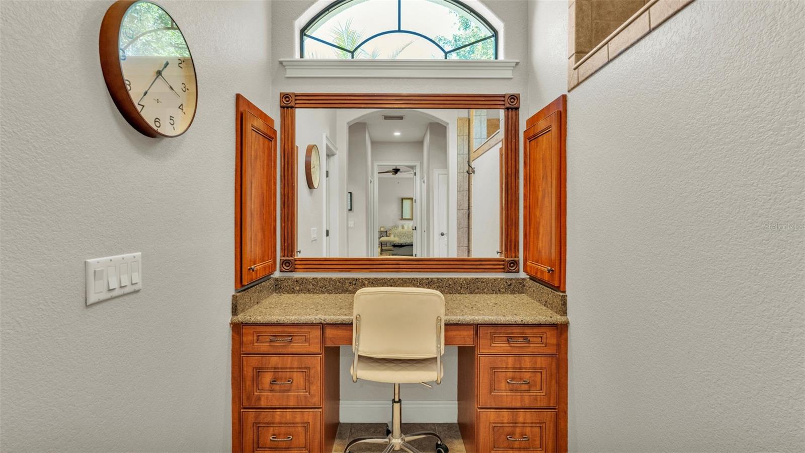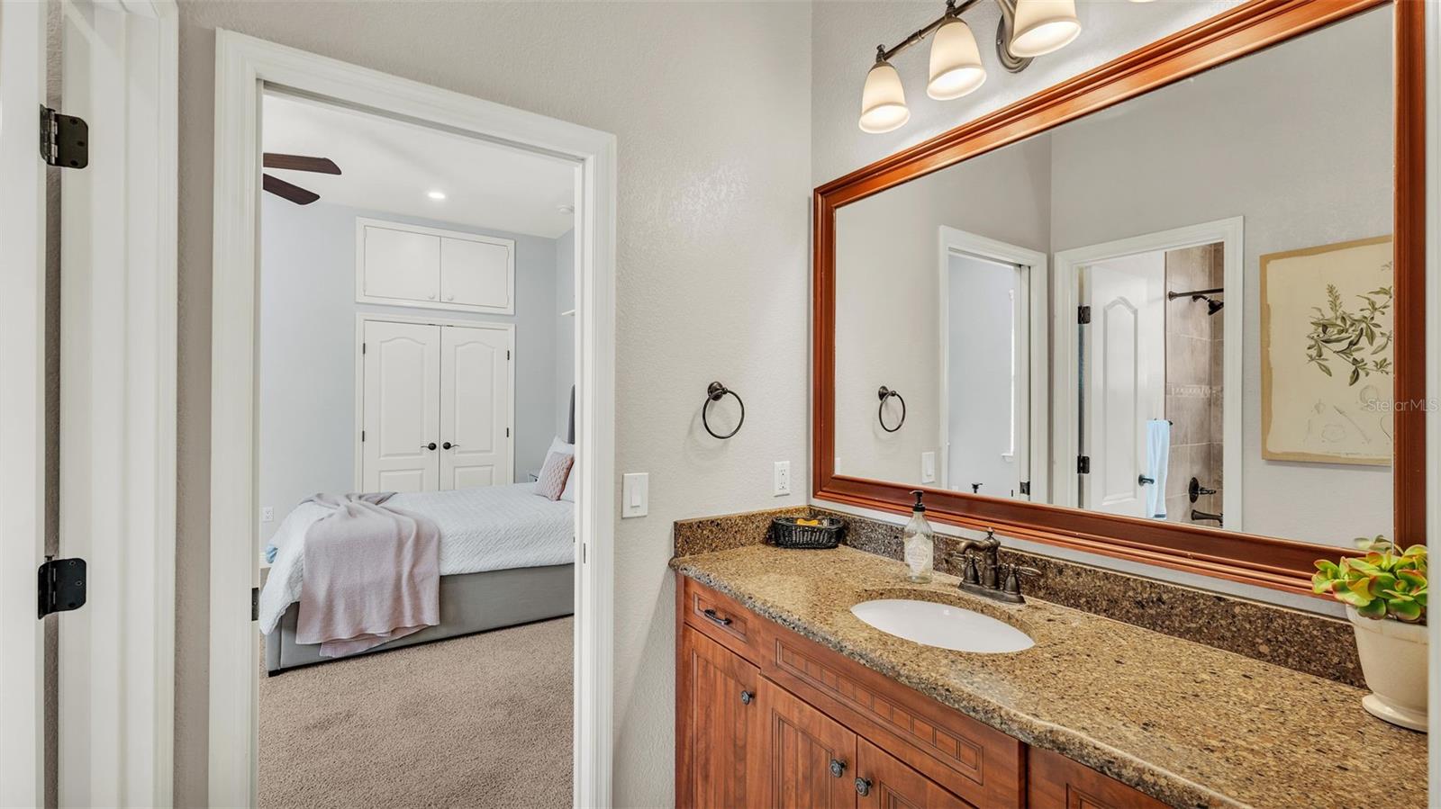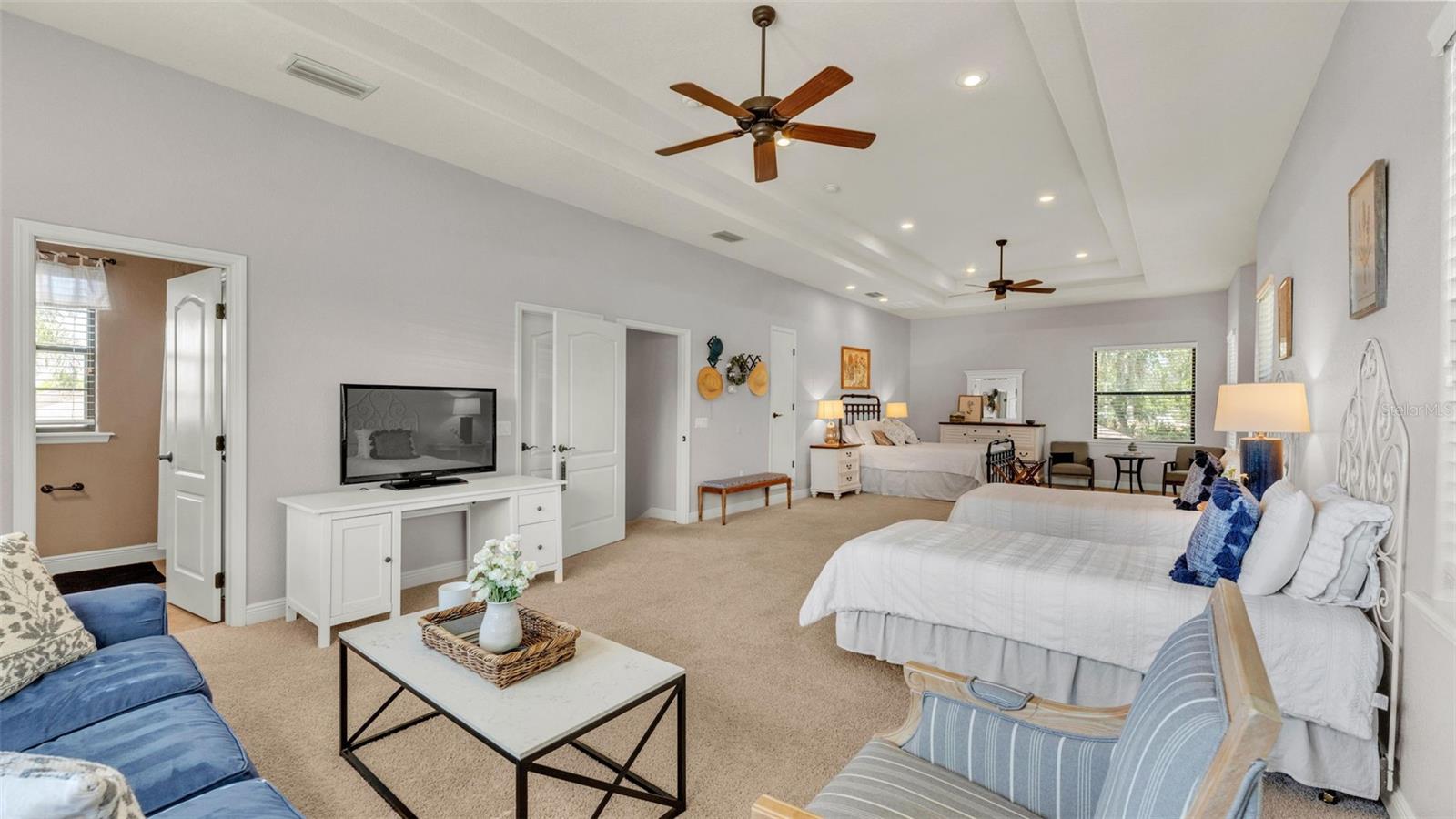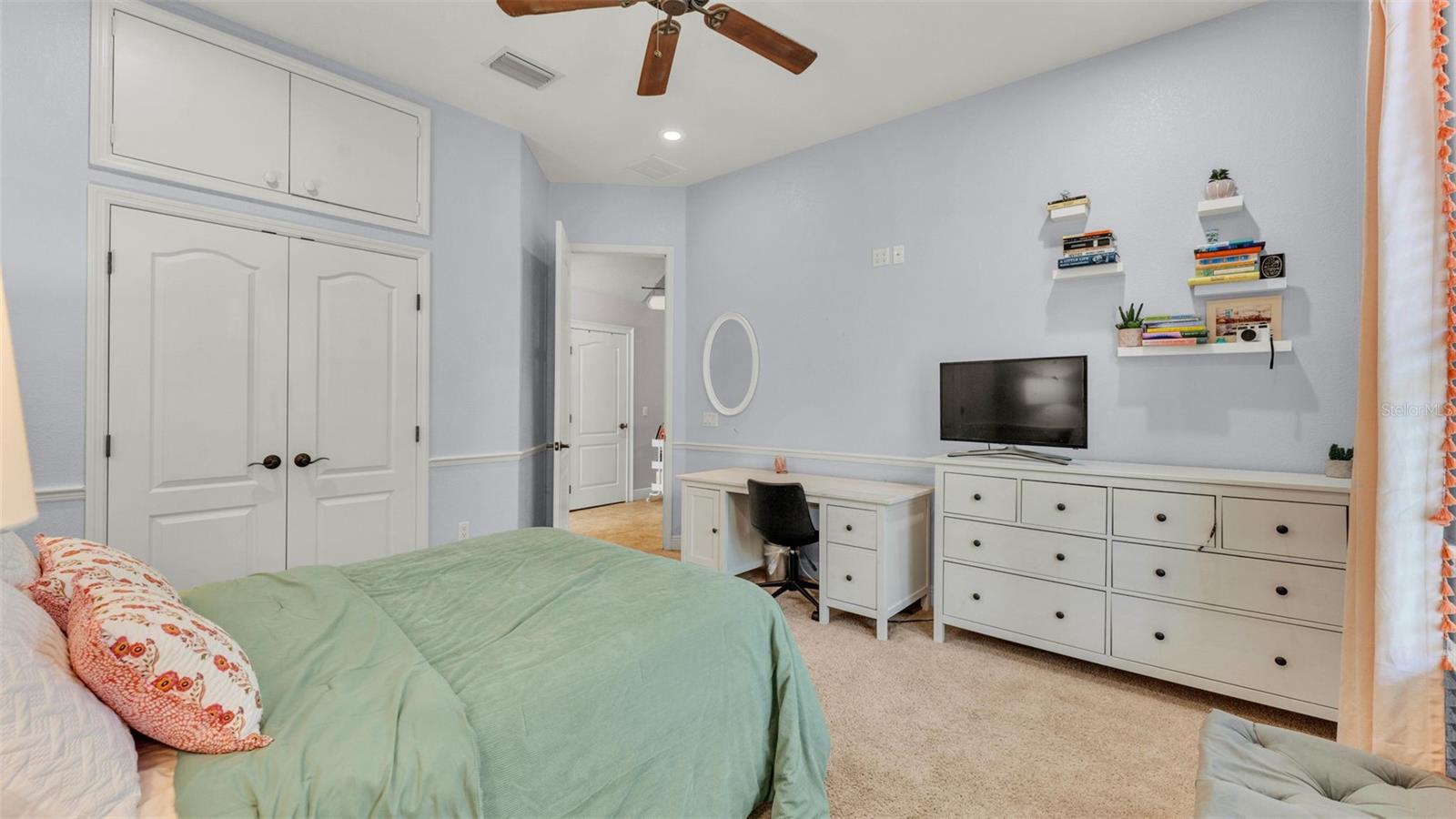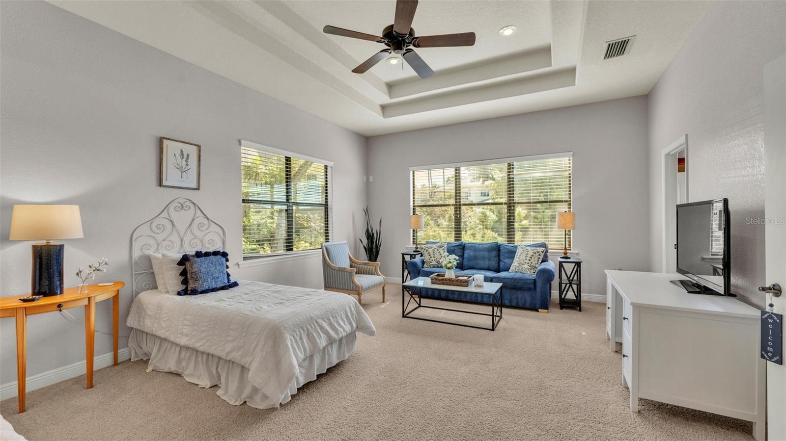 Welcome to 6774 Crescent Woods Circle, a stunning estate located in the exclusive, gated community of Crescent Woods in South Lakeland. This coveted neighborhood, consisting of only 48 homes, offers a rare level of privacy and luxury. Situated on a spacious .60-acre lot, this expansive residence spans over 6,000 square feet under roof and features five bedrooms, four bathrooms, and a dedicated office with French doors that open to the grand great room, allowing an abundance of natural light to flood the space. Built in 2008 by the renowned Strawbridge Homes, known for their exceptional craftsmanship, this home exudes elegance at every turn. Upon entering, you are greeted by soaring 15-foot ceilings and a series of custom-built features that elevate its stunning appeal. The open floor plan is complemented by crown molding throughout, double-pane windows, and foam-insulated exterior walls that ensure both comfort and energy efficiency. The gourmet kitchen, a true centerpiece of the home, overlooks the living area and features built-in cabinetry, high-end appliances, and large windows offering breathtaking views of the private, screened-in solar-heated pool. The luxurious primary suite provides a tranquil retreat, complete with direct access to the lanai, a tray ceiling, and ample space for relaxation. The en-suite bathroom is an oasis in itself, featuring dual vanities, a seated vanity area, a tiled step-in shower, and two spacious walk-in closets. Upstairs, a charming living area awaits, complete with its own full-size bathroom, walk-in closet, and custom-built storage, offering the perfect space for guests or additional family members. The resort-style backyard is truly an entertainer's paradise, with mature landscaping and an expansive circular paver driveway leading to a two-car garage on the right and a single-vehicle garage on the left. The fenced-in backyard offers complete privacy and serenity, surrounded by towering trees that create a peaceful retreat. The solar-heated, screen-enclosed pool, with a waterfall feature and 8-foot depth, provides the ultimate place to unwind or host guests, complemented by a large pavered patio and a fully-equipped custom outdoor kitchen. This exceptional home is perfectly situated on a corner lot, offering both space and an ideal location near excellent schools such as Scott Lake Elementary, Valleyview Elementary, and Highlands Grove Elementary, as well as Lakeland Highlands Middle School and George Jenkins High School. The best of South Lakeland's shopping, dining, and amenities are just minutes away. With a roof replacement completed in December 2024, a new pool pump in 2024 and a tankless hot water heater installed in 2024, this home is ready for years of enjoyment. Don't miss the opportunity to experience this exquisite residence. Schedule your tour today and discover the perfect blend of luxury, comfort, and style.
