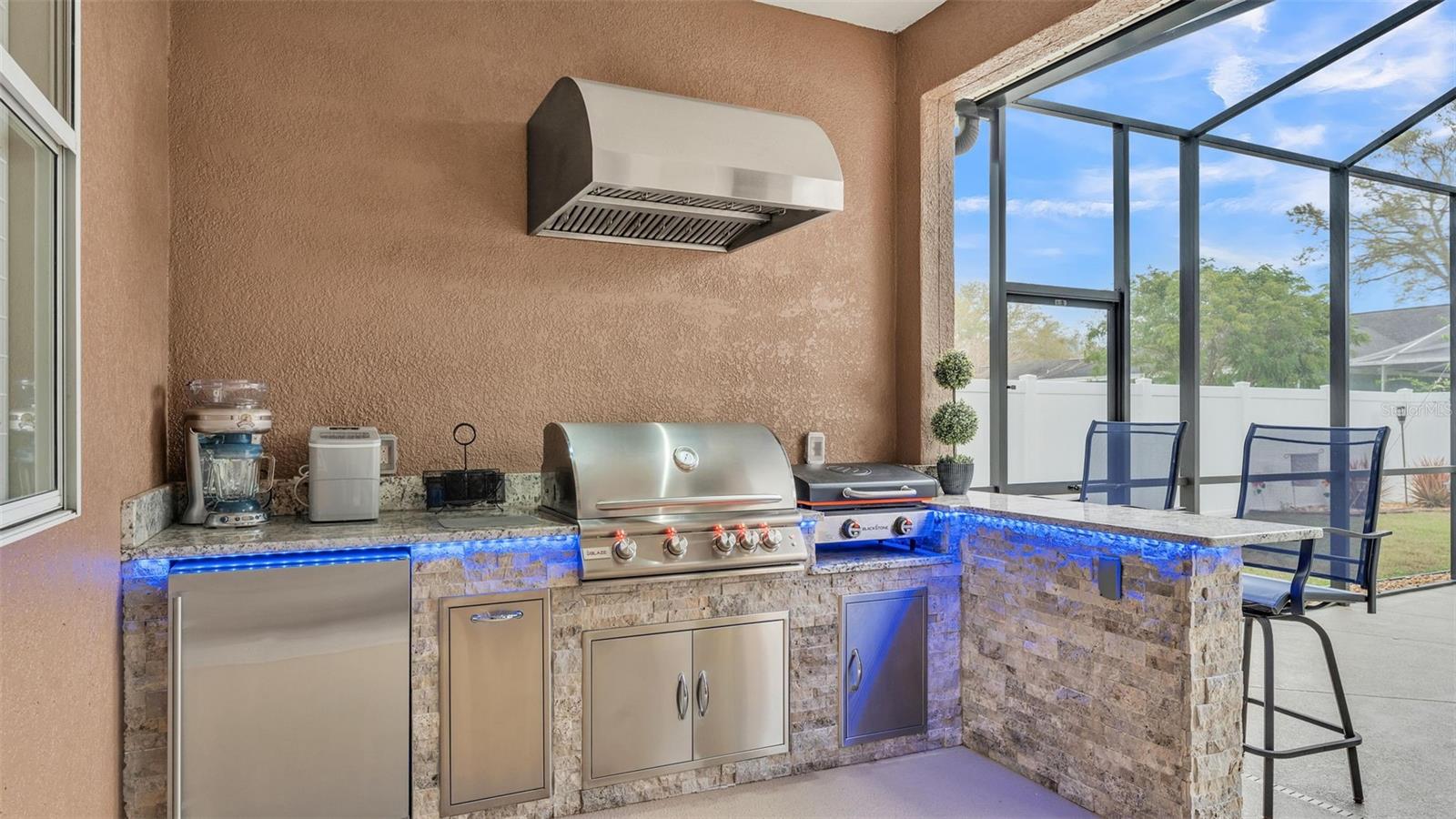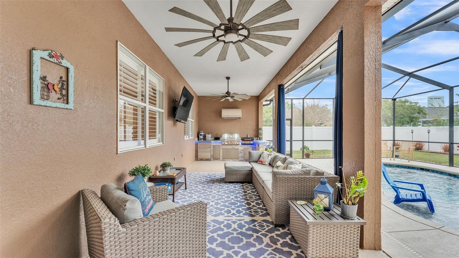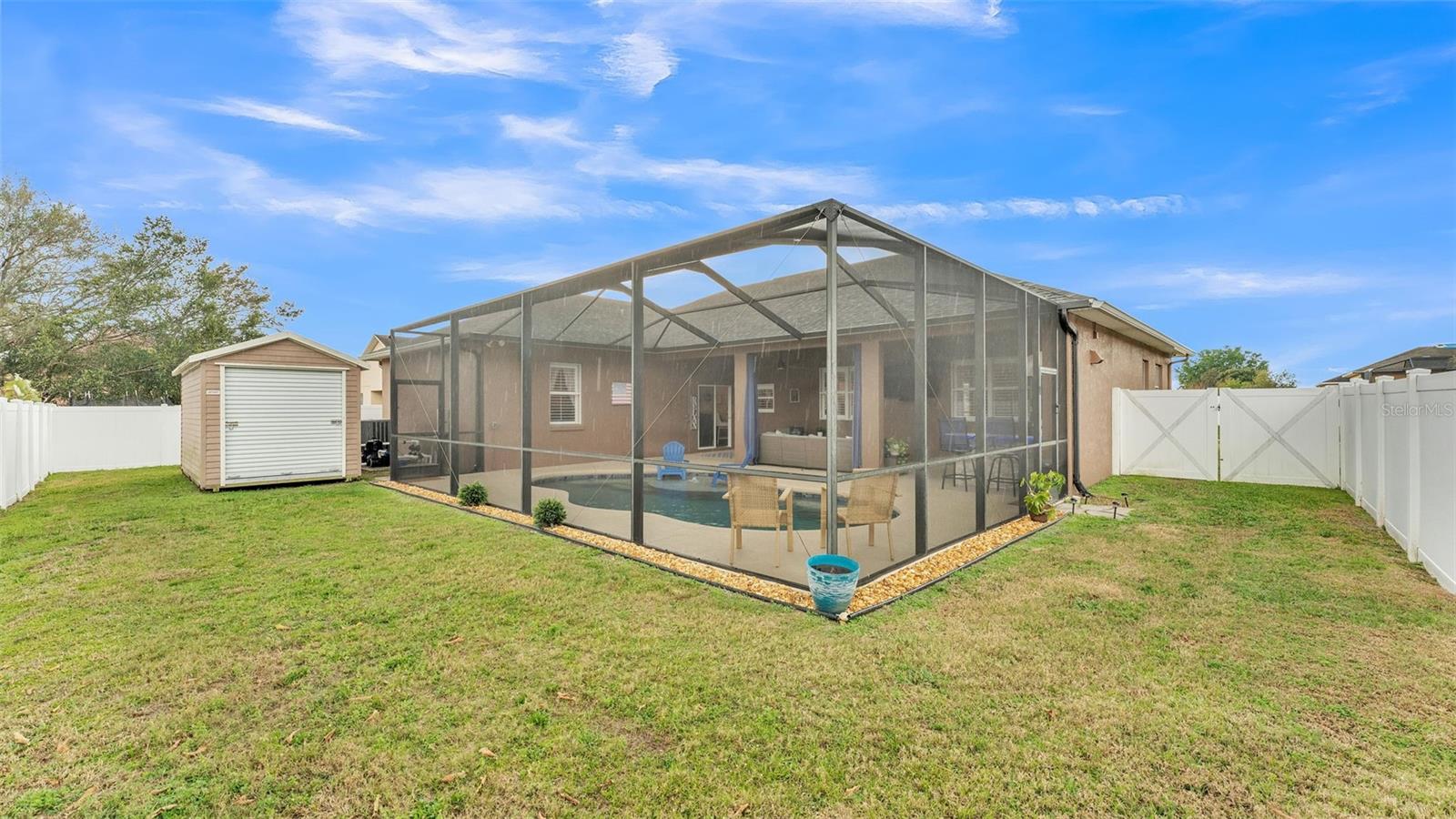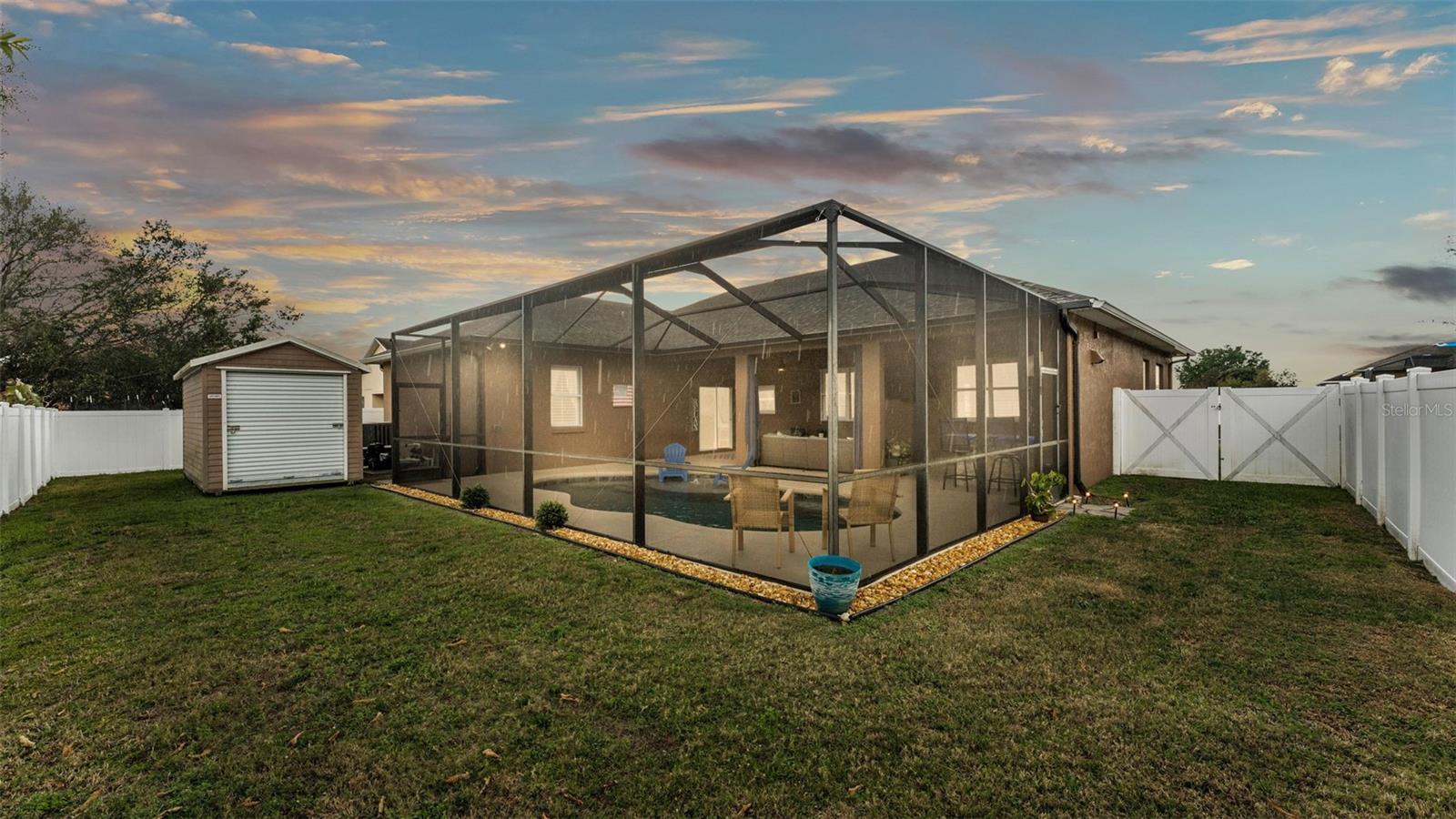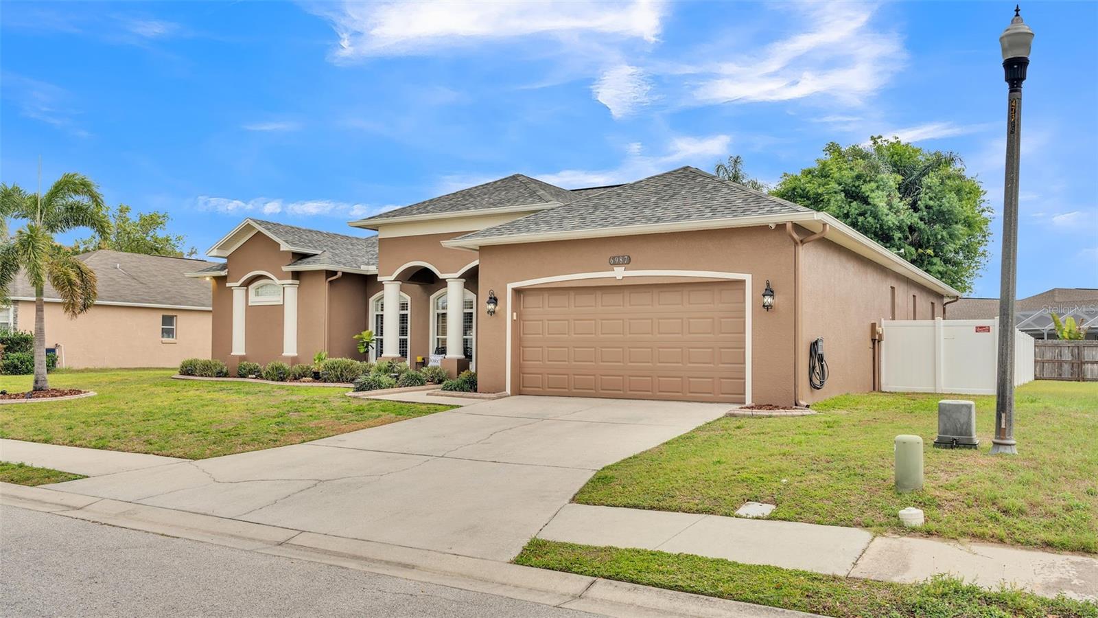 Welcome to 6987 Heatherbrook Dr, located in the gated North Lakeland community of Hunter's Crossing. This meticulously maintained 3-bedroom, 2-bathroom, heated saltwater pool home offers a well-designed split floor plan, two spacious living areas, and an array of modern updates throughout. As you approach the home, you'll immediately notice the attractive curb appeal, with curbed concrete edging, well-maintained landscaping, and elegant outdoor lighting. A smart front door keypad ensures easy and secure access. Step inside, where you are greeted by high ceilings with a stunning 10 foot floor-to-ceiling height. The foyer features a tray ceiling and a decorative column, setting the tone for this beautifully appointed home. The great room, located at the front of the home adjacent to the primary bedroom suite, boasts two arched windows that flood the space with natural light. Plantation shutters enhance the home's elegant style, with these shutters featured throughout the entire property. The spacious primary suite offers two more windows adorned with plantation shutters, a generous walk-in closet, and an en-suite bathroom designed for relaxation. This luxurious bathroom includes a garden tub with a window above, a dual-sink vanity with granite countertops, a step-in tiled shower, and a private water closet. The kitchen is a chef's dream, featuring granite countertops, Whirlpool stainless steel appliances, a GE refrigerator, and ample cabinet space. The kitchen island overlooks the living room, which is graced with a beautiful industrial-style ceiling fan. A window above the kitchen sink offers a lovely view of the lanai, while the adjacent dinette area has sliding glass doors that open to the outdoor living space. The two guest bedrooms, each with spacious walk-in closets, share a guest bathroom that also serves as the pool bathroom, providing convenient access to the lanai. This bathroom includes a granite vanity, a honey oak-framed mirror, a linen closet, and a shower-tub combo. The laundry room is a highlight of the home, with a mounted hanging rack and floating wood shelves, making it both practical and stylish. Outside, the home is a true entertainer's paradise. The custom outdoor kitchen is fully equipped with high-end Blaze appliances, all covered by a limited lifetime warranty, making it perfect for year-round outdoor dining and entertainment. The heated saltwater pool features a sun shelf for lounging and plenty of space on the lanai for furniture, ensuring you have a relaxing and enjoyable outdoor experience. The property is fully vinyl privacy fenced, adding to the seclusion and tranquility of the space. Additional features include a two-car garage with an epoxy-coated floor and attic access via drop-down stairs for extra storage, a Wi-Fi thermostat, and an alarm system for added peace of mind. The roof was replaced in 2022, the water heater just 2 months old, the AC 5 years old, and both the exterior and interior have been freshly repainted within the past year. All Pent Air pool equipment is fully operational with the salt cell replaced just last year, LED lights in the pool just replaced and the pool heater age 2019. With its impeccable condition, thoughtful updates, and incredible outdoor amenities, this home is truly move-in ready. This home is also close in proximity to Lake Gibson middle and high school and many shopping and dining options, while being minutes from convenient commuting access to I4.