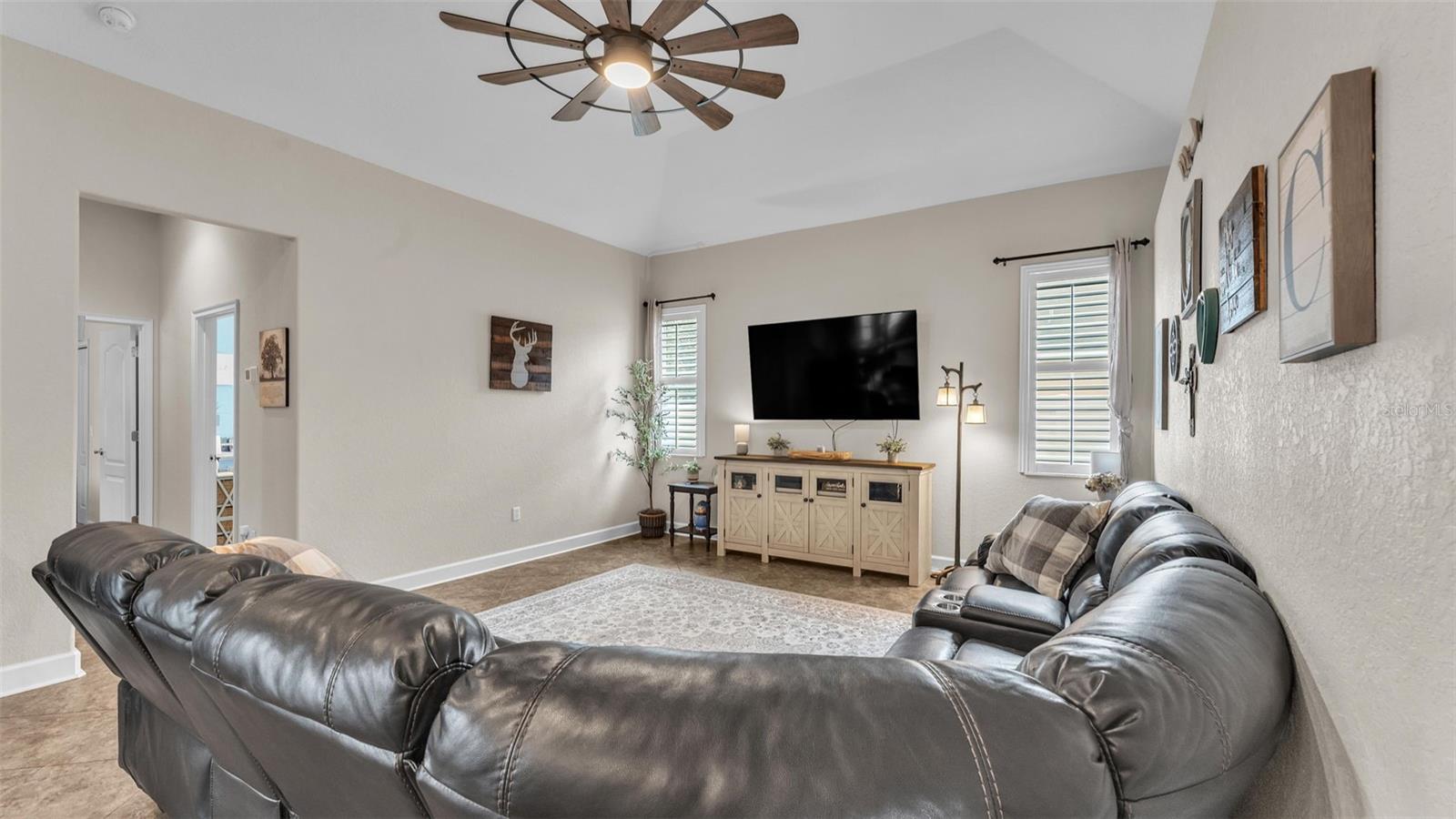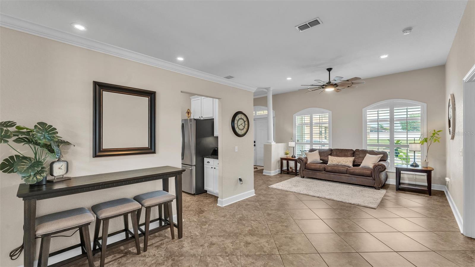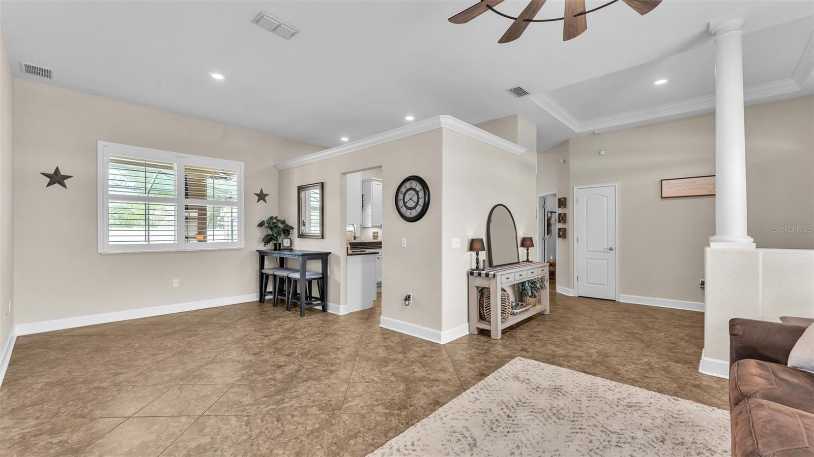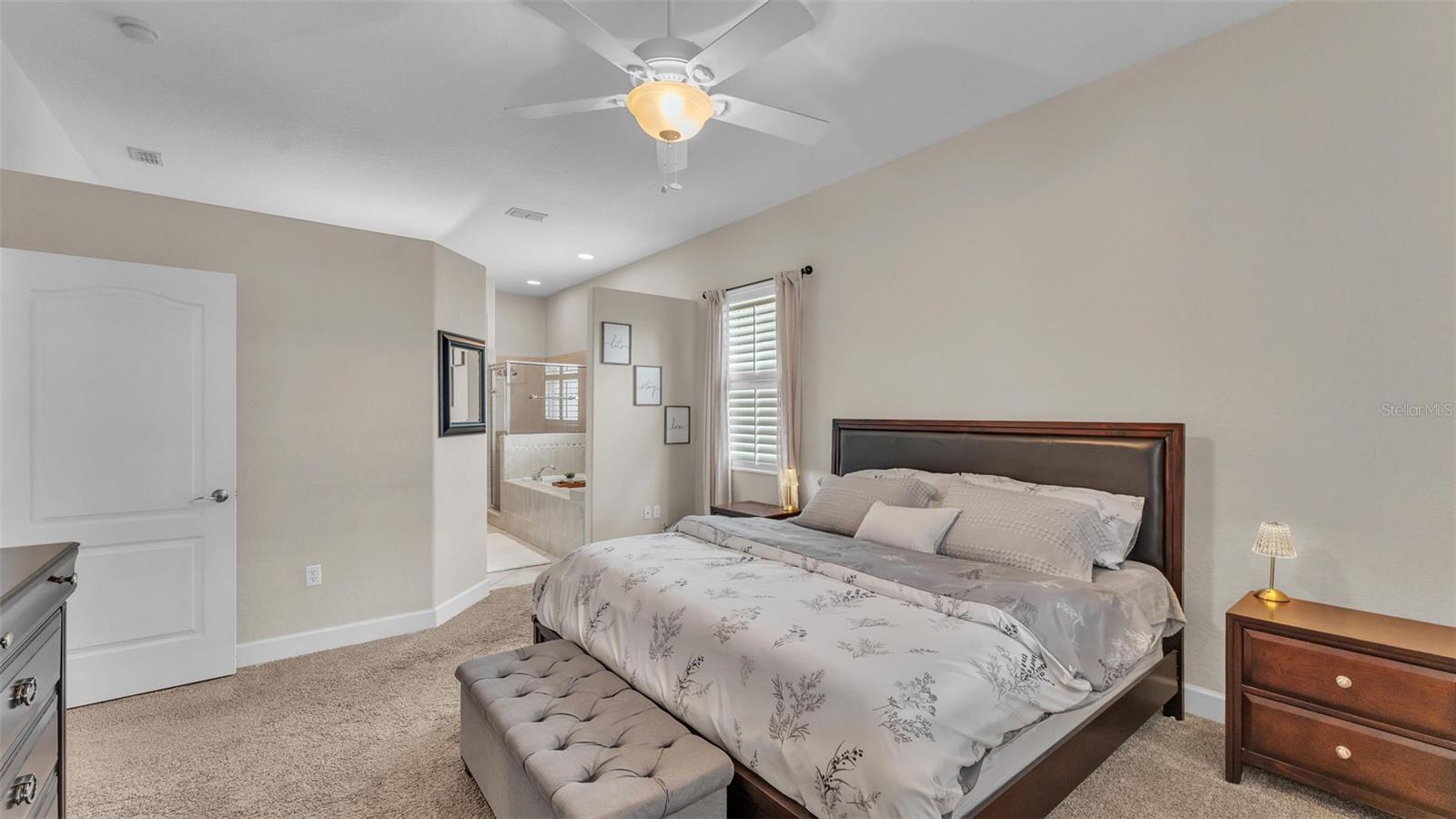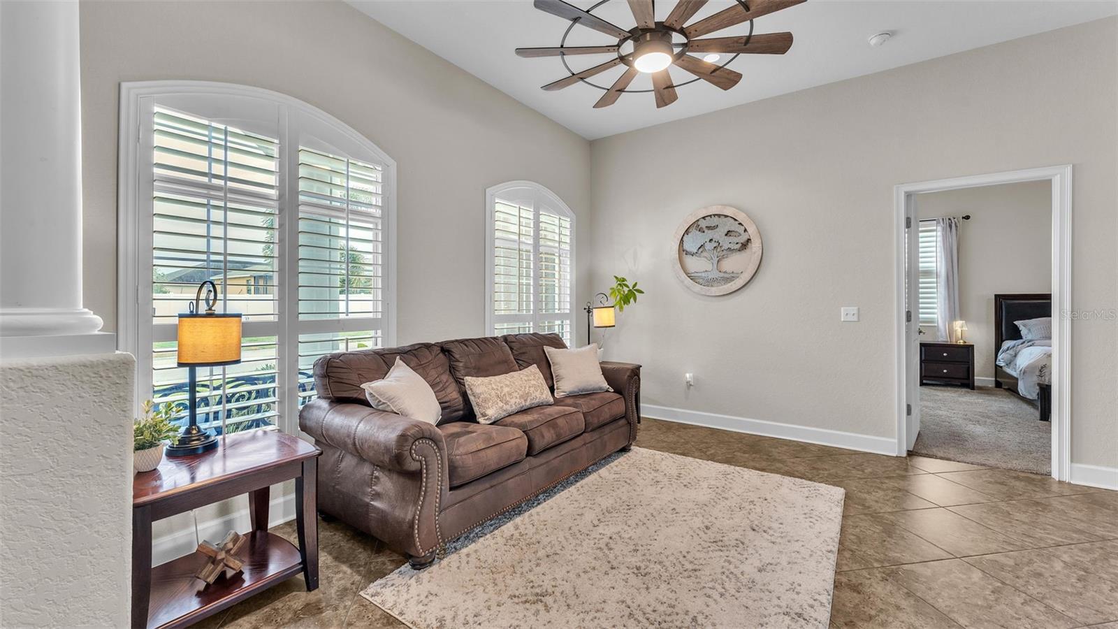 Welcome to 6987 Heatherbrook Dr, located in the gated North Lakeland community of Hunter's Crossing. This meticulously maintained 3-bedroom, 2-bathroom, heated saltwater pool home offers a well-designed split floor plan, two spacious living areas, and an array of modern updates throughout. As you approach the home, you'll immediately notice the attractive curb appeal, with curbed concrete edging, well-maintained landscaping, and elegant outdoor lighting. A smart front door keypad ensures easy and secure access. Step inside, where you are greeted by high ceilings with a stunning 10 foot floor-to-ceiling height. The foyer features a tray ceiling and a decorative column, setting the tone for this beautifully appointed home. The great room, located at the front of the home adjacent to the primary bedroom suite, boasts two arched windows that flood the space with natural light. Plantation shutters enhance the home's elegant style, with these shutters featured throughout the entire property. The spacious primary suite offers two more windows adorned with plantation shutters, a generous walk-in closet, and an en-suite bathroom designed for relaxation. This luxurious bathroom includes a garden tub with a window above, a dual-sink vanity with granite countertops, a step-in tiled shower, and a private water closet. The kitchen is a chef's dream, featuring granite countertops, Whirlpool stainless steel appliances, a GE refrigerator, and ample cabinet space. The kitchen island overlooks the living room, which is graced with a beautiful industrial-style ceiling fan. A window above the kitchen sink offers a lovely view of the lanai, while the adjacent dinette area has sliding glass doors that open to the outdoor living space. The two guest bedrooms, each with spacious walk-in closets, share a guest bathroom that also serves as the pool bathroom, providing convenient access to the lanai. This bathroom includes a granite vanity, a honey oak-framed mirror, a linen closet, and a shower-tub combo. The laundry room is a highlight of the home, with a mounted hanging rack and floating wood shelves, making it both practical and stylish. Outside, the home is a true entertainer's paradise. The custom outdoor kitchen is fully equipped with high-end Blaze appliances, all covered by a limited lifetime warranty, making it perfect for year-round outdoor dining and entertainment. The heated saltwater pool features a sun shelf for lounging and plenty of space on the lanai for furniture, ensuring you have a relaxing and enjoyable outdoor experience. The property is fully vinyl privacy fenced, adding to the seclusion and tranquility of the space. Additional features include a two-car garage with an epoxy-coated floor and attic access via drop-down stairs for extra storage, a Wi-Fi thermostat, and an alarm system for added peace of mind. The roof was replaced in 2022, the water heater just 2 months old, the AC 5 years old, and both the exterior and interior have been freshly repainted within the past year. All Pent Air pool equipment is fully operational with the salt cell replaced just last year, LED lights in the pool just replaced and the pool heater age 2019. With its impeccable condition, thoughtful updates, and incredible outdoor amenities, this home is truly move-in ready. This home is also close in proximity to Lake Gibson middle and high school and many shopping and dining options, while being minutes from convenient commuting access to I4.