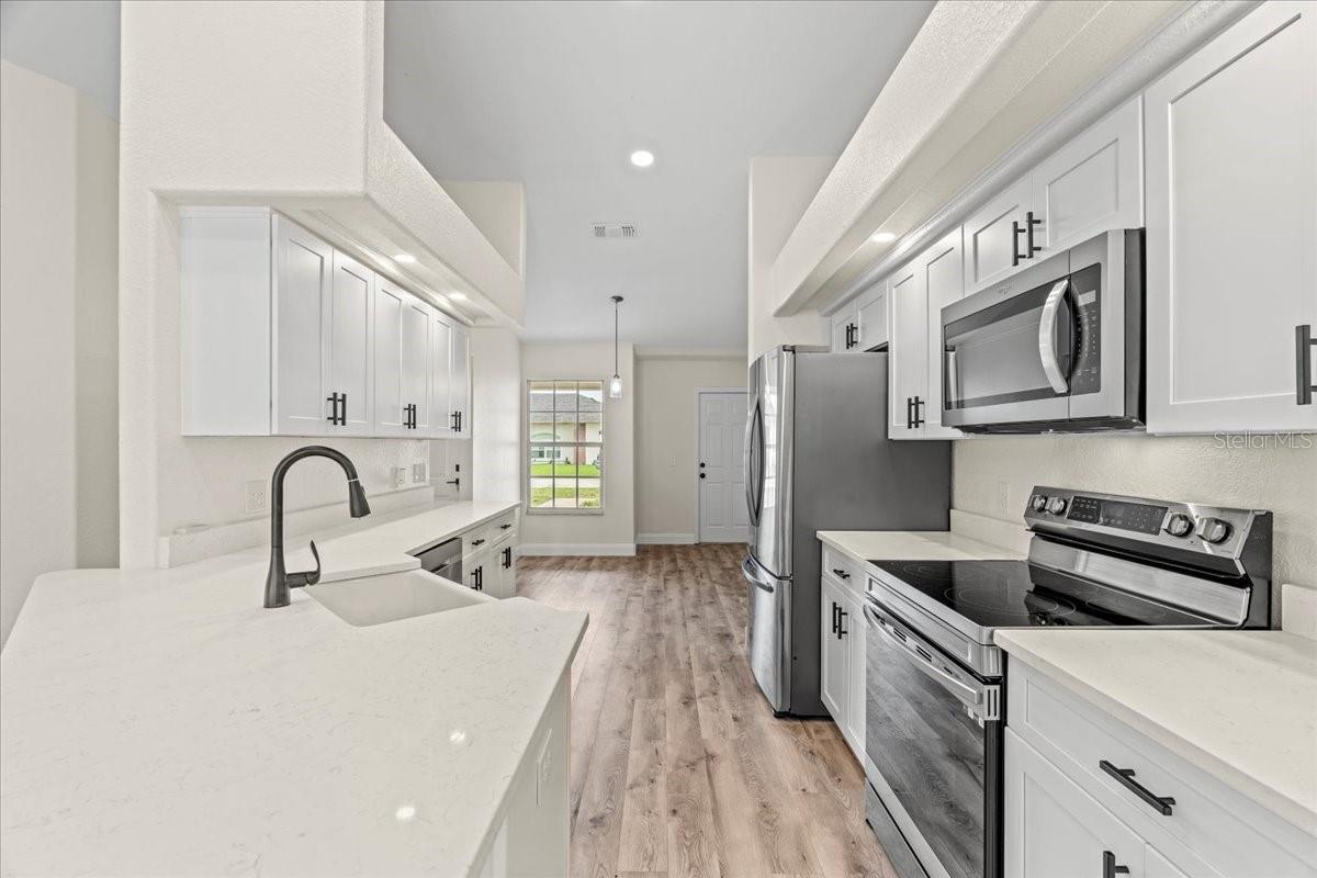 This completely renovated beautiful 4 bedroom, 2 bathroom home with an inground heated pool and additional detached efficiency suite is located in the highly sought-after Canterbury Subdivision. As you step into the home, you'll immediately notice the attention to detail that has been put into the renovation. The spacious living room features luxury vinyl flooring, upgraded baseboards, and stylish light fixtures that add to the overall elegance of the property. The kitchen is a chef's dream with quartz countertops, brand new cabinets, and Samsung stainless steel appliances. The farmhouse-style sink adds the perfect touch of charm to this contemporary space. The bedrooms are cozy and offer plenty of natural light. One of the highlights of this property is the beautiful inground heated pool that will provide endless hours of entertainment for you and your guests. The brand new pool heater ensures that the pool will always be at the perfect temperature for a refreshing dip. The landscape curbing further enhances the beauty of the pool area, creating the perfect oasis for relaxation. The outdoor efficiency suite is perfect for guests and offers a separate entrance for added privacy. This property is truly a must-see and is conveniently located just minutes away from shopping, dining, and entertainment. Don't miss your chance to own this stunning home in the Canterbury Subdivision!