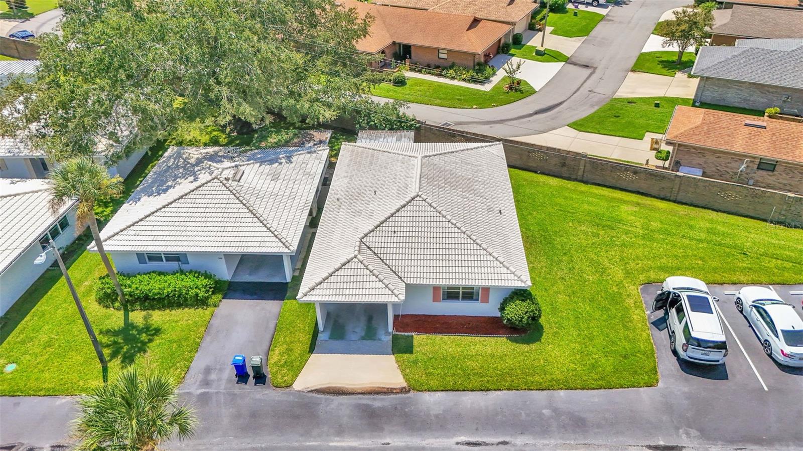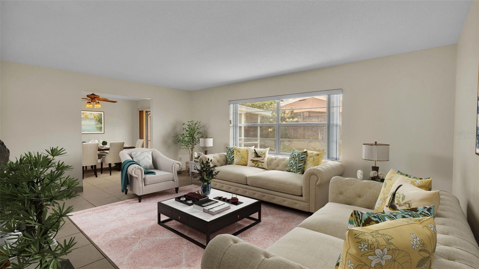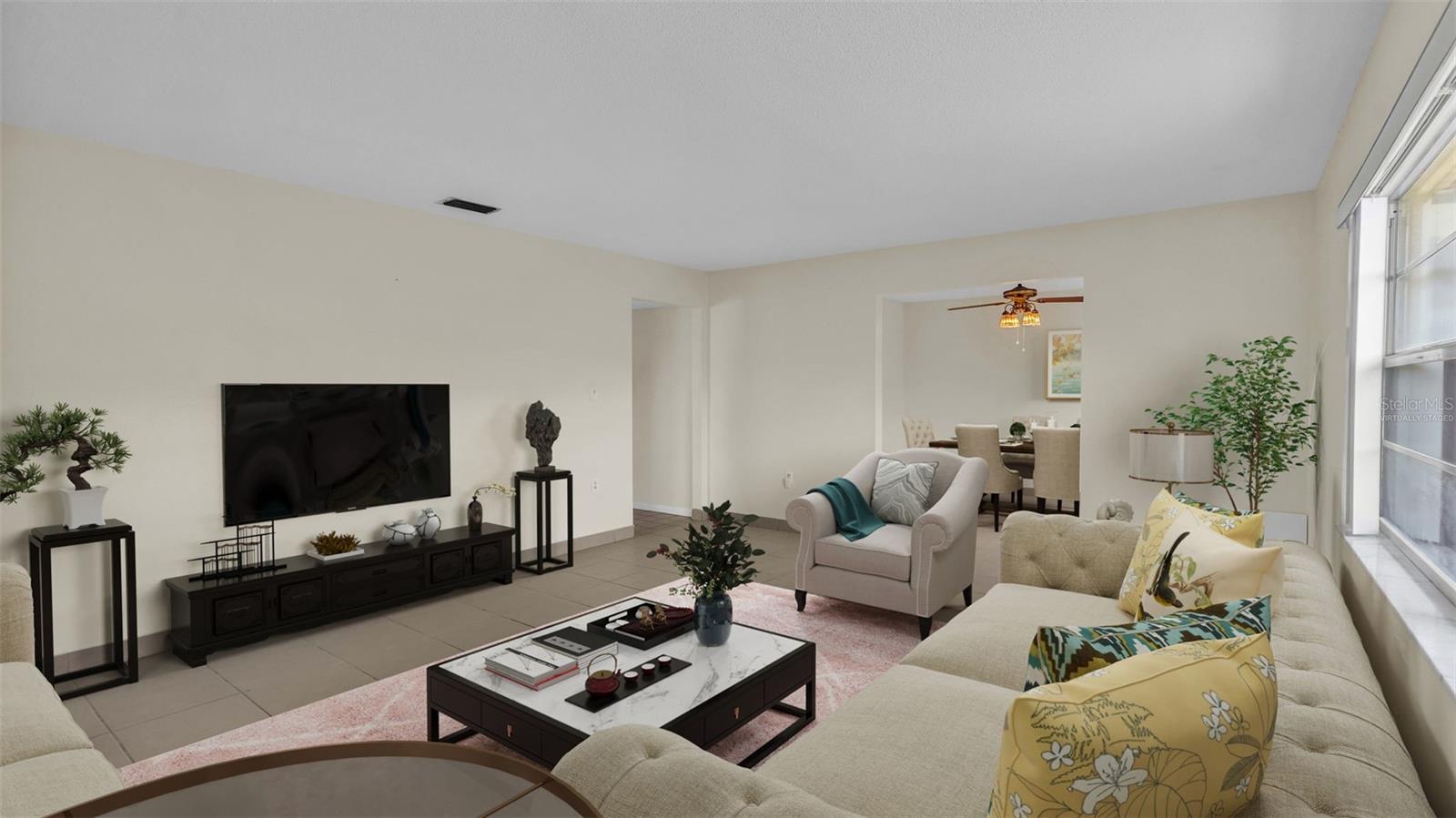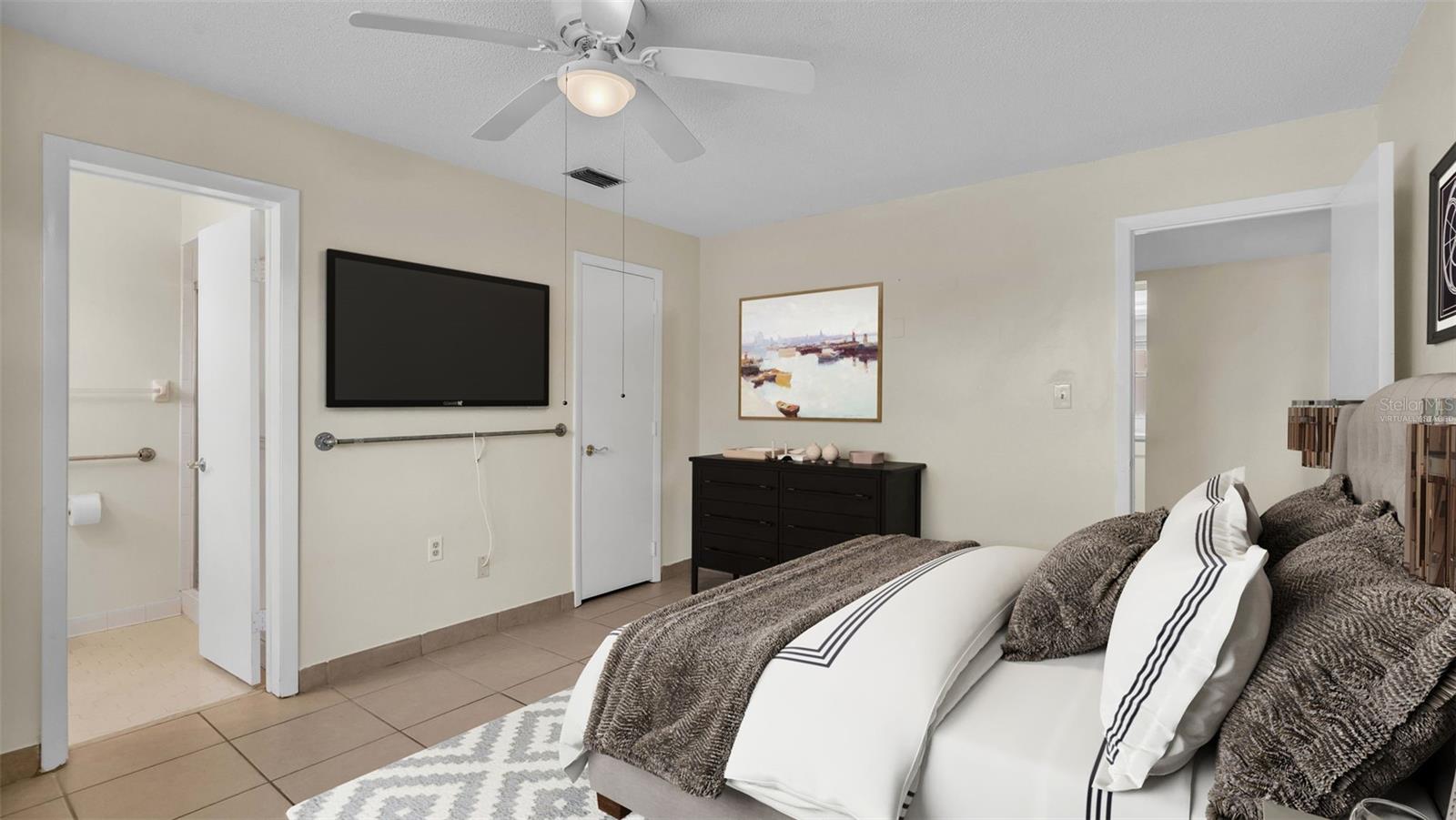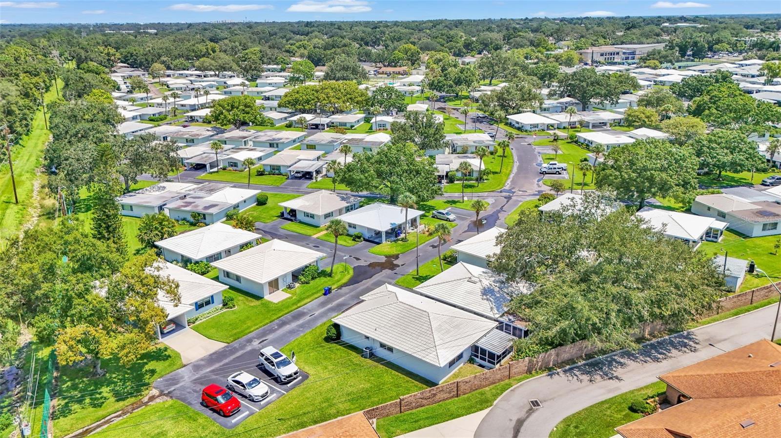 One or more photo(s) has been virtually staged. Welcome to this maintenance free home located in Lakeland, Florida with many included services provided within the HOA such as routine lawn care, cable and internet. Within the 55+ community of Imperial Southgate Villas, this 2 bed and 2 bath residence has a total of 1,380 square feet and is ready to accommodate any style of living. Upon first entering, you will find a hall with egress to the guest bathroom, secondary bedroom, and living room. Porcelain tile adorns the floor while sunset yellow walls provide an air of relaxed comfort. The guest bathroom, to the right of the entry, is equipped with a tub and sink vanity, as well as storage shelving above the toilet to ensure that the necessities are always within reach. The bedroom beyond is of generous size, and has a built in closet with accordion style doors to tuck away whatever you choose. Across from the bedroom lies a utility closet, including the water heater and sink basin, while awaiting the addition of a washing machine and dryer. Located in the main egress of the home, this space is accessible and convenient while providing plenty of wire shelving for tools and supplies of any kind. A few steps down the hall brings you to the primary bedroom to the right. Here is another large living area, equipped with a walk in closet and attached bathroom. The primary bathroom has a standing shower and sink within the privacy of your own quarters. At the end of the hall lies the dining room and attached kitchen. The kitchen itself presents abundant counter space and a double-basin sink, as well built in cutting board and a bar style countertop which overlooks the dining room and grants the option of additional seating. The dining room serves as the central location of the home, perfect for hosting gatherings of any sort, and leads to the enclosed lanai through its sliding glass door. An overhead fan and light provide day-round ambience while the patio door ensures plentiful natural light for whichever meal you're currently enjoying. A wide doorway to the side of the dining room gives way to the largest room yet, the living room. This wide area is ready to accommodate any taste of style or furniture, and has a long window to supply light throughout the day. Within a screened in lanai at the rear of the home, you'll discover the perfect place to enjoy the outdoors while retaining a sense of privacy via the beautiful red-brick wall that spans the rear property line. Equipped with a mail slot and wheelchair access ramp at the front door, as well as support railings throughout, this home provides thoughtful convenience no matter your needs. The surrounding community is operated by an HOA, and provides optional use of a clubhouse area, pool, tennis court and bocce ball. Tucked into its private neighborhood just off of South Florida Avenue, this location is perfect for anyone who wants easy access to the many stores and unique locales of Central Lakeland.