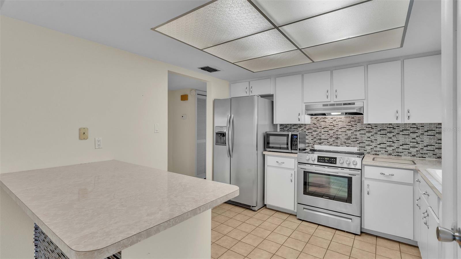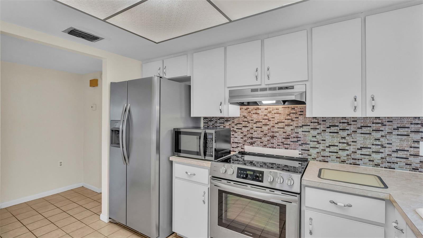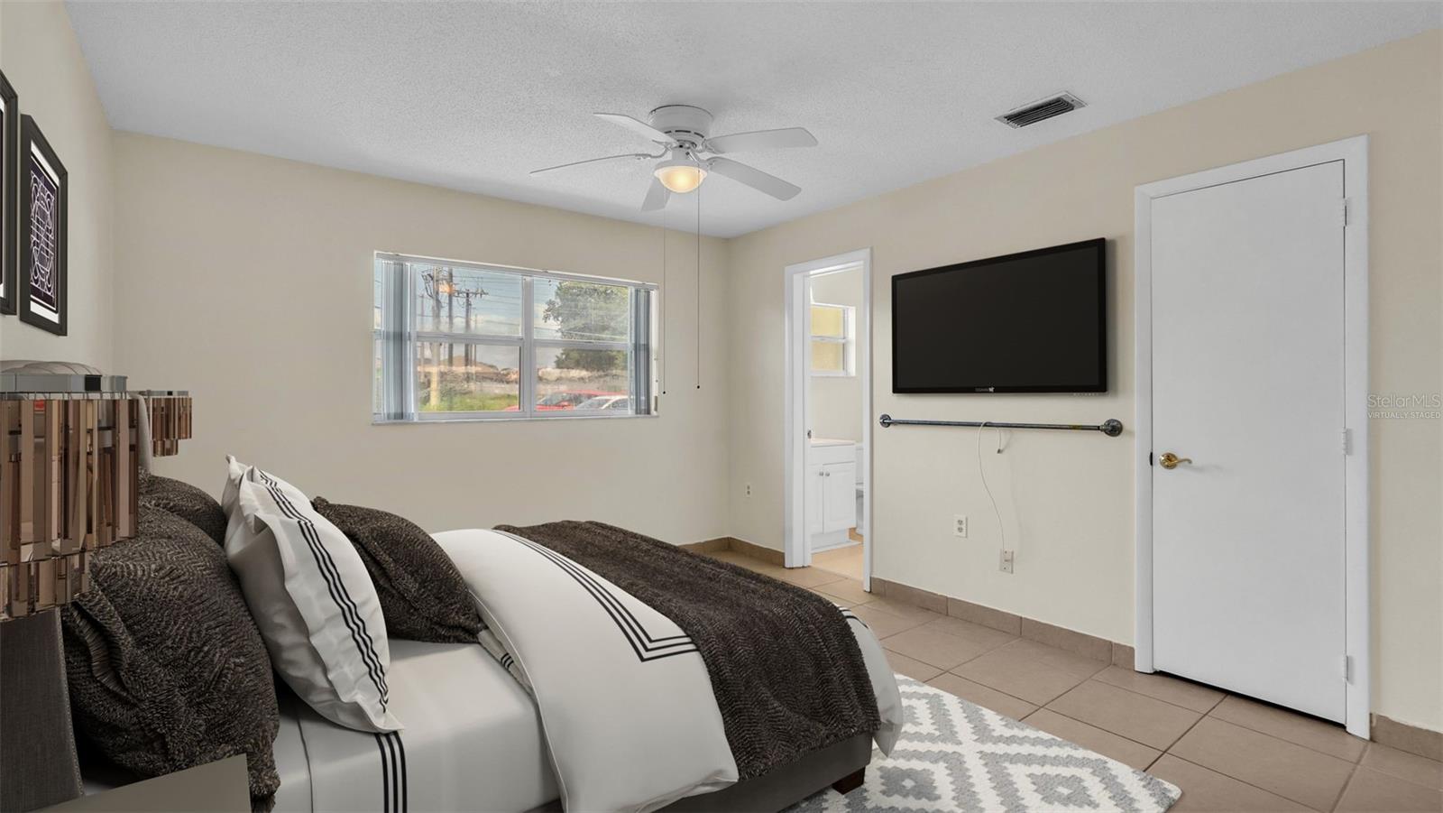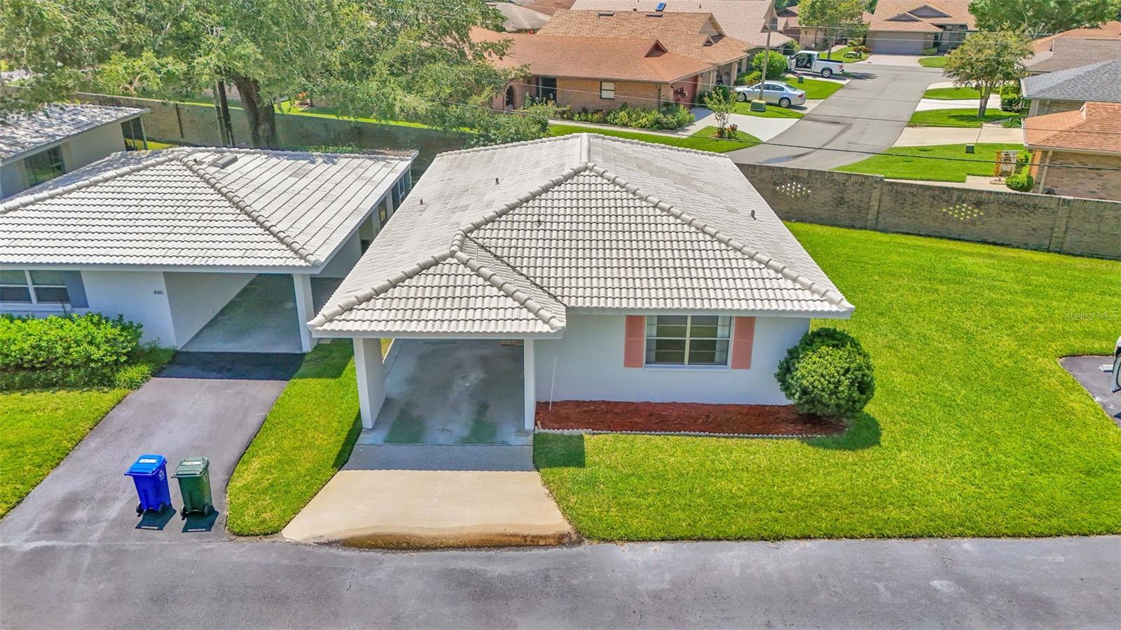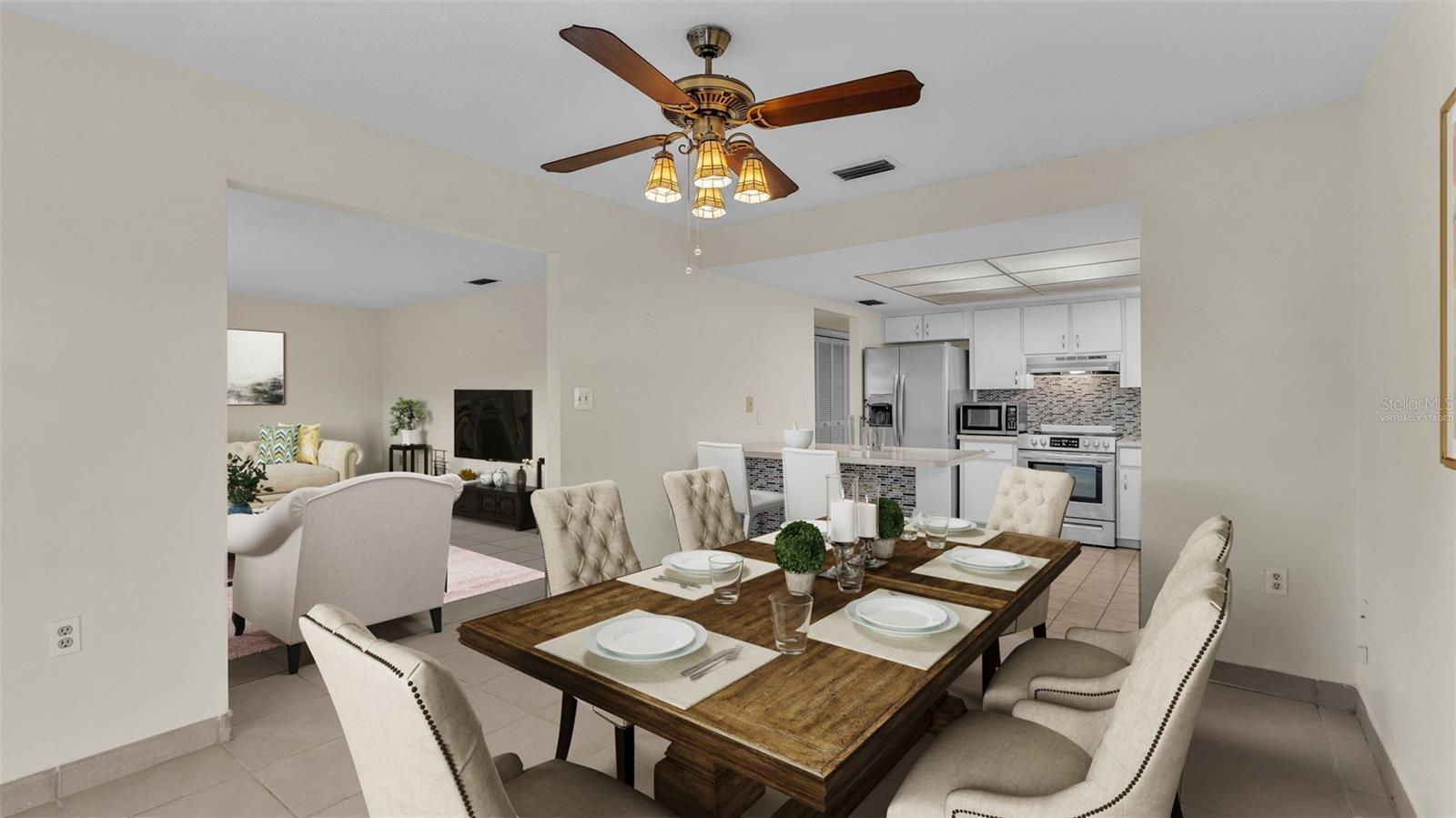 One or more photo(s) has been virtually staged. Welcome to this maintenance free home located in Lakeland, Florida with many included services provided within the HOA such as routine lawn care, cable and internet. Within the 55+ community of Imperial Southgate Villas, this 2 bed and 2 bath residence has a total of 1,380 square feet and is ready to accommodate any style of living. Upon first entering, you will find a hall with egress to the guest bathroom, secondary bedroom, and living room. Porcelain tile adorns the floor while sunset yellow walls provide an air of relaxed comfort. The guest bathroom, to the right of the entry, is equipped with a tub and sink vanity, as well as storage shelving above the toilet to ensure that the necessities are always within reach. The bedroom beyond is of generous size, and has a built in closet with accordion style doors to tuck away whatever you choose. Across from the bedroom lies a utility closet, including the water heater and sink basin, while awaiting the addition of a washing machine and dryer. Located in the main egress of the home, this space is accessible and convenient while providing plenty of wire shelving for tools and supplies of any kind. A few steps down the hall brings you to the primary bedroom to the right. Here is another large living area, equipped with a walk in closet and attached bathroom. The primary bathroom has a standing shower and sink within the privacy of your own quarters. At the end of the hall lies the dining room and attached kitchen. The kitchen itself presents abundant counter space and a double-basin sink, as well built in cutting board and a bar style countertop which overlooks the dining room and grants the option of additional seating. The dining room serves as the central location of the home, perfect for hosting gatherings of any sort, and leads to the enclosed lanai through its sliding glass door. An overhead fan and light provide day-round ambience while the patio door ensures plentiful natural light for whichever meal you're currently enjoying. A wide doorway to the side of the dining room gives way to the largest room yet, the living room. This wide area is ready to accommodate any taste of style or furniture, and has a long window to supply light throughout the day. Within a screened in lanai at the rear of the home, you'll discover the perfect place to enjoy the outdoors while retaining a sense of privacy via the beautiful red-brick wall that spans the rear property line. Equipped with a mail slot and wheelchair access ramp at the front door, as well as support railings throughout, this home provides thoughtful convenience no matter your needs. The surrounding community is operated by an HOA, and provides optional use of a clubhouse area, pool, tennis court and bocce ball. Tucked into its private neighborhood just off of South Florida Avenue, this location is perfect for anyone who wants easy access to the many stores and unique locales of Central Lakeland.