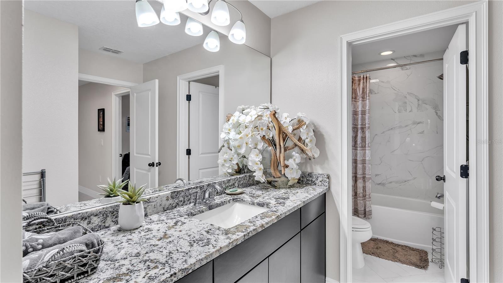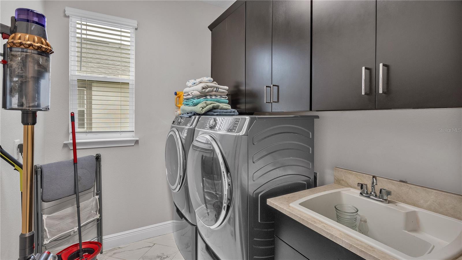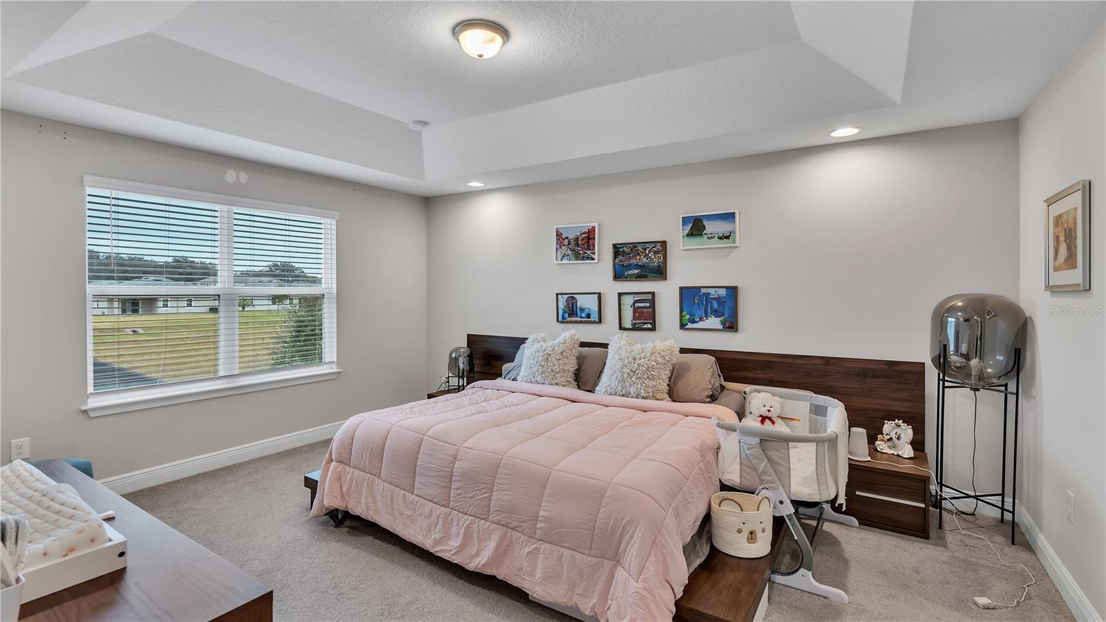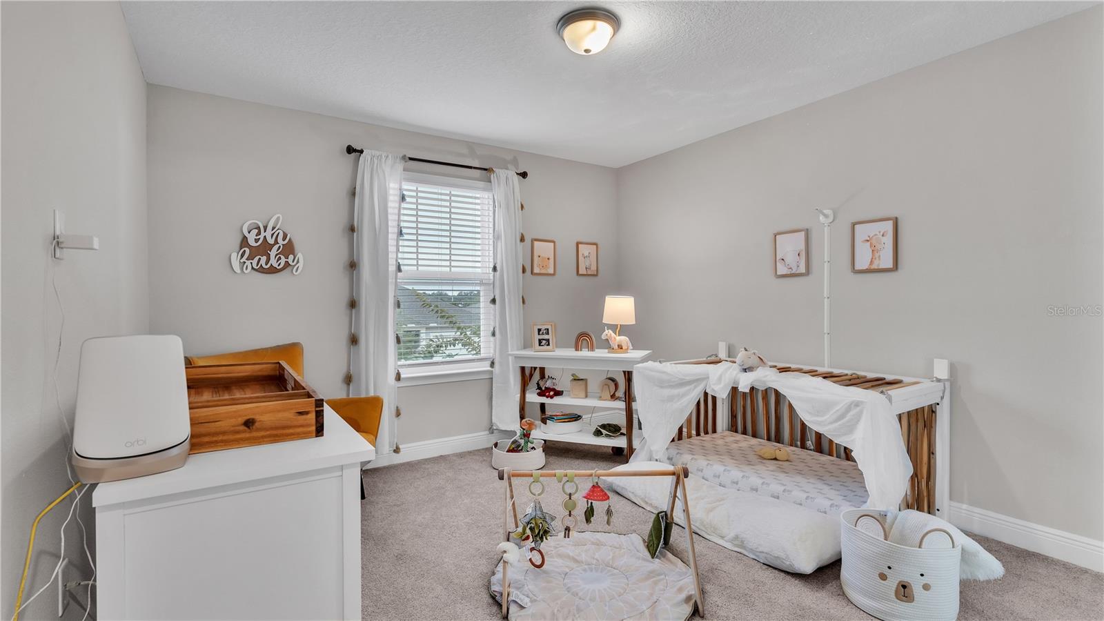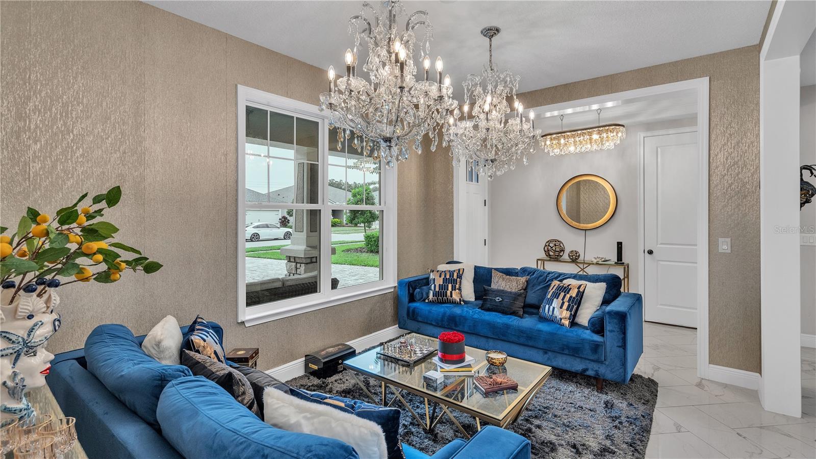 ***PRICE IMPROVEMENT*** Nestled within the community of Meadow Grove, this 2020 built luxurious residence offers the epitome of contemporary living. With four bedrooms, all conveniently located upstairs, and two and a half bathrooms, this meticulously crafted home boasts a three-car garage, artfully subdivided with a single-car garage on the front left and a double-car garage on the right side. The pavered driveway leads to a grand entrance adorned with lush landscaping and a welcoming front porch. Step inside to discover a living room featuring exquisite tiled flooring throughout, complemented by recessed lighting, built-in surround sound, and elegantly cased windows. The open floor plan seamlessly integrates the living space with a gourmet kitchen adorned with top-of-the-line stainless steel KitchenAid appliances, a double oven, and a built-in fridge. Quartzite countertops and a decorative backsplash add a touch of sophistication, while the induction cooktop and a complete island remodel with waterfall granite on both sides showcase meticulous attention to detail. All walls and window edges are framed with wood trim, creating an ambiance of timeless elegance. The dining area and guest room are adorned with three elegant chandeliers, while the guest room's walls are wrapped in golden Italian wall wrap for a touch of opulence. The entire property is equipped with pre-wired security camera installations for added peace of mind, with the living area featuring two 110v plugs on the floor and four pre-wired ceiling speakers. The flex room/office boasts fully renovated walls, paint, and wood trim, with most walls prewired for Ethernet. Practical amenities include a laundry room with a sink and ample cabinet space. The outdoor oasis features a pool with a, a travertine deck, and a pool enclosure with LED changing colors on the ceiling light. The solar system is designed to cover 115% of the house's average consumption, complemented by a water softener and two water hoses on both sides of the house. The lanai is equipped with prewired Sonans ceiling speakers and an 87" wall-mounted TV, creating an ideal space for outdoor entertainment. This residence seamlessly combines opulence, functionality, and technological sophistication, promising a lifestyle of unparalleled luxury. Scheduled your showing today!