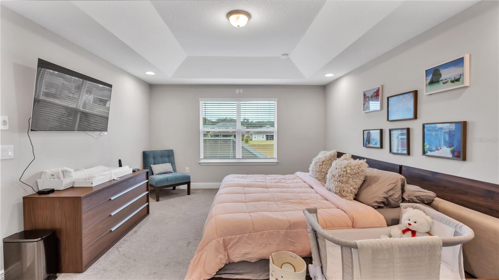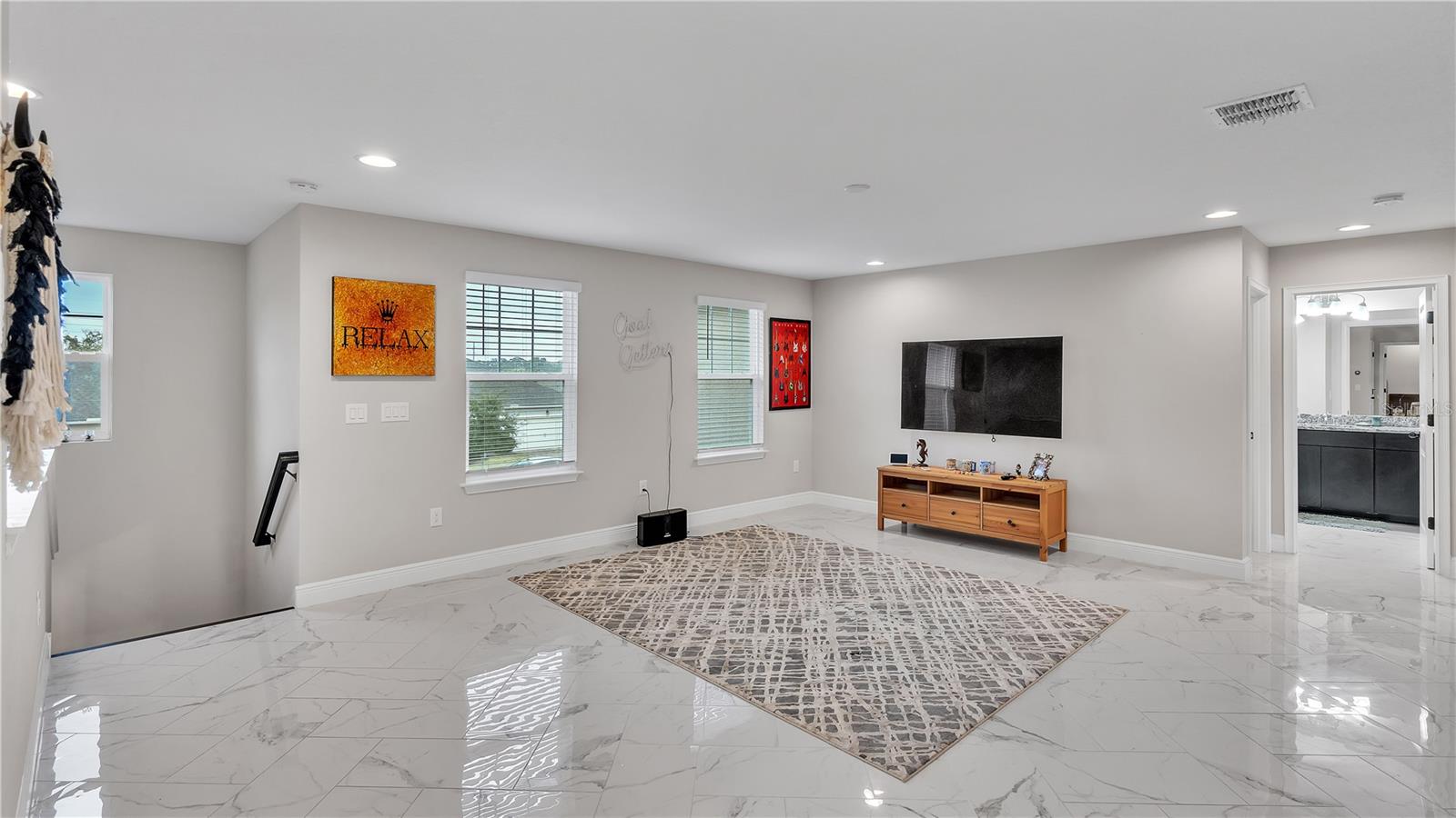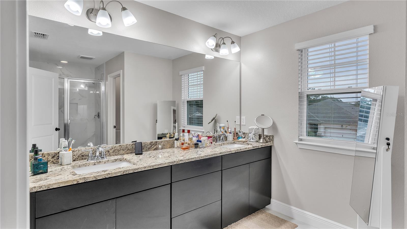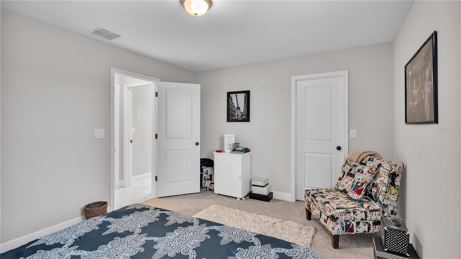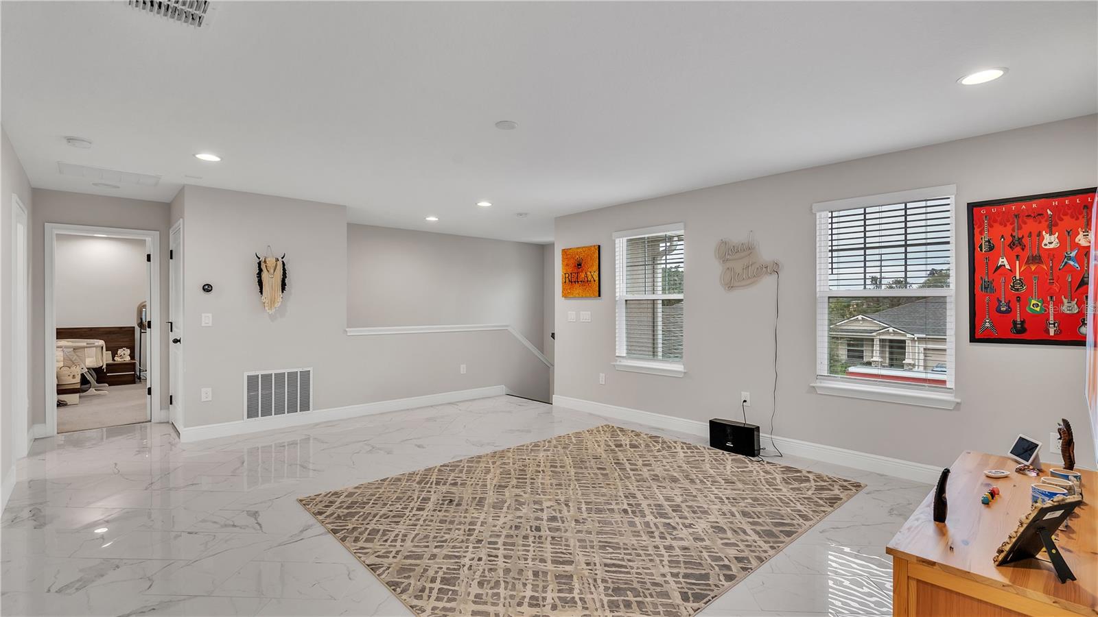 ***PRICE IMPROVEMENT*** Nestled within the community of Meadow Grove, this 2020 built luxurious residence offers the epitome of contemporary living. With four bedrooms, all conveniently located upstairs, and two and a half bathrooms, this meticulously crafted home boasts a three-car garage, artfully subdivided with a single-car garage on the front left and a double-car garage on the right side. The pavered driveway leads to a grand entrance adorned with lush landscaping and a welcoming front porch. Step inside to discover a living room featuring exquisite tiled flooring throughout, complemented by recessed lighting, built-in surround sound, and elegantly cased windows. The open floor plan seamlessly integrates the living space with a gourmet kitchen adorned with top-of-the-line stainless steel KitchenAid appliances, a double oven, and a built-in fridge. Quartzite countertops and a decorative backsplash add a touch of sophistication, while the induction cooktop and a complete island remodel with waterfall granite on both sides showcase meticulous attention to detail. All walls and window edges are framed with wood trim, creating an ambiance of timeless elegance. The dining area and guest room are adorned with three elegant chandeliers, while the guest room's walls are wrapped in golden Italian wall wrap for a touch of opulence. The entire property is equipped with pre-wired security camera installations for added peace of mind, with the living area featuring two 110v plugs on the floor and four pre-wired ceiling speakers. The flex room/office boasts fully renovated walls, paint, and wood trim, with most walls prewired for Ethernet. Practical amenities include a laundry room with a sink and ample cabinet space. The outdoor oasis features a pool with a, a travertine deck, and a pool enclosure with LED changing colors on the ceiling light. The solar system is designed to cover 115% of the house's average consumption, complemented by a water softener and two water hoses on both sides of the house. The lanai is equipped with prewired Sonans ceiling speakers and an 87" wall-mounted TV, creating an ideal space for outdoor entertainment. This residence seamlessly combines opulence, functionality, and technological sophistication, promising a lifestyle of unparalleled luxury. Scheduled your showing today!