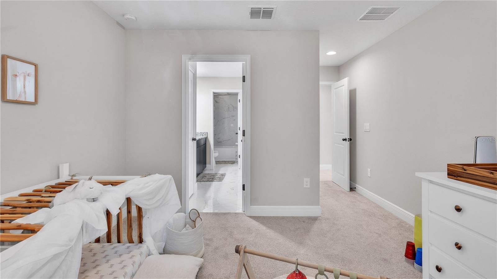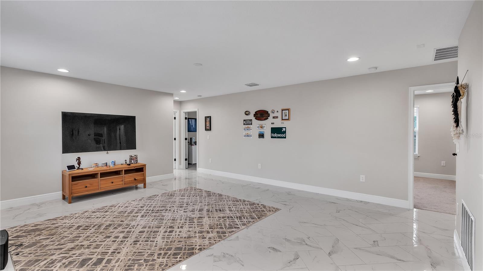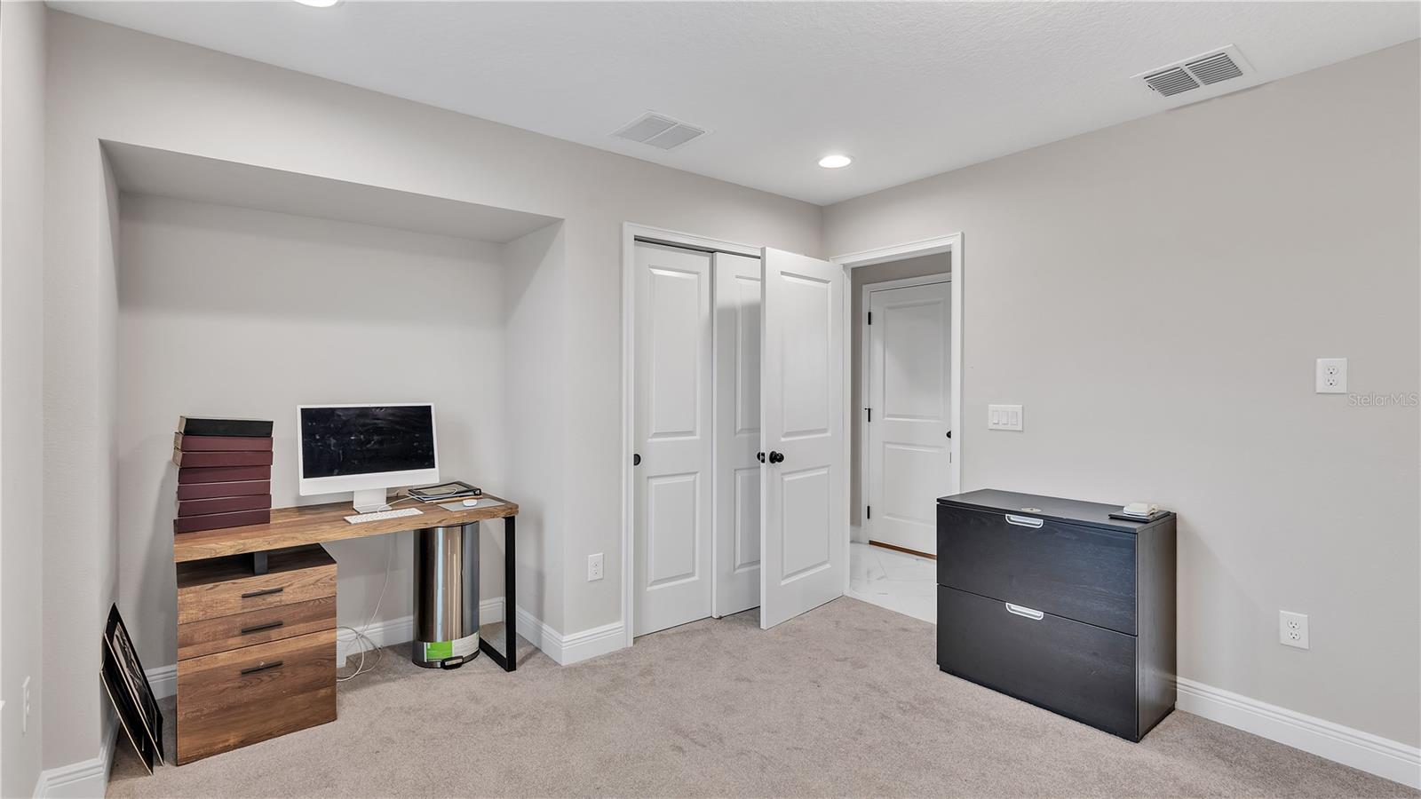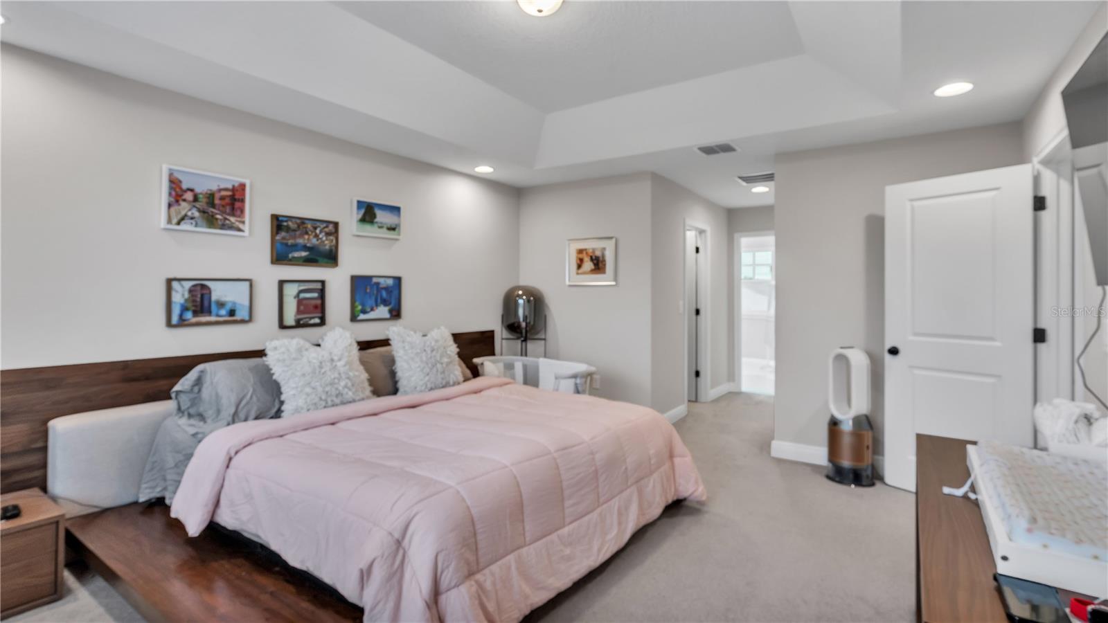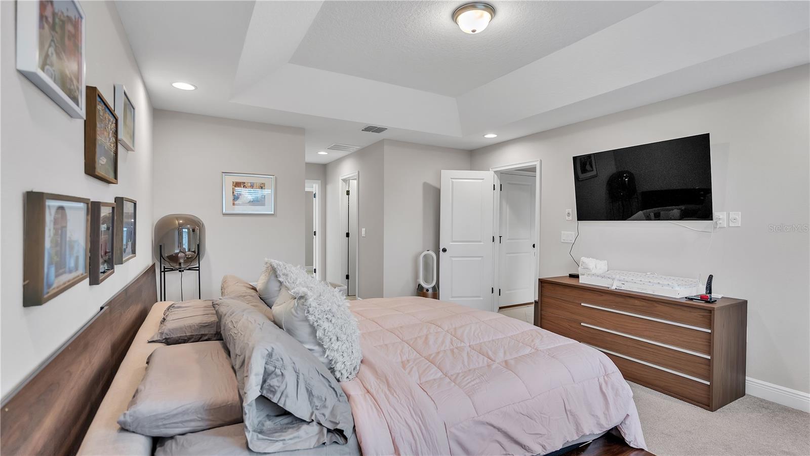 ***PRICE IMPROVEMENT*** Nestled within the community of Meadow Grove, this 2020 built luxurious residence offers the epitome of contemporary living. With four bedrooms, all conveniently located upstairs, and two and a half bathrooms, this meticulously crafted home boasts a three-car garage, artfully subdivided with a single-car garage on the front left and a double-car garage on the right side. The pavered driveway leads to a grand entrance adorned with lush landscaping and a welcoming front porch. Step inside to discover a living room featuring exquisite tiled flooring throughout, complemented by recessed lighting, built-in surround sound, and elegantly cased windows. The open floor plan seamlessly integrates the living space with a gourmet kitchen adorned with top-of-the-line stainless steel KitchenAid appliances, a double oven, and a built-in fridge. Quartzite countertops and a decorative backsplash add a touch of sophistication, while the induction cooktop and a complete island remodel with waterfall granite on both sides showcase meticulous attention to detail. All walls and window edges are framed with wood trim, creating an ambiance of timeless elegance. The dining area and guest room are adorned with three elegant chandeliers, while the guest room's walls are wrapped in golden Italian wall wrap for a touch of opulence. The entire property is equipped with pre-wired security camera installations for added peace of mind, with the living area featuring two 110v plugs on the floor and four pre-wired ceiling speakers. The flex room/office boasts fully renovated walls, paint, and wood trim, with most walls prewired for Ethernet. Practical amenities include a laundry room with a sink and ample cabinet space. The outdoor oasis features a pool with a, a travertine deck, and a pool enclosure with LED changing colors on the ceiling light. The solar system is designed to cover 115% of the house's average consumption, complemented by a water softener and two water hoses on both sides of the house. The lanai is equipped with prewired Sonans ceiling speakers and an 87" wall-mounted TV, creating an ideal space for outdoor entertainment. This residence seamlessly combines opulence, functionality, and technological sophistication, promising a lifestyle of unparalleled luxury. Scheduled your showing today!